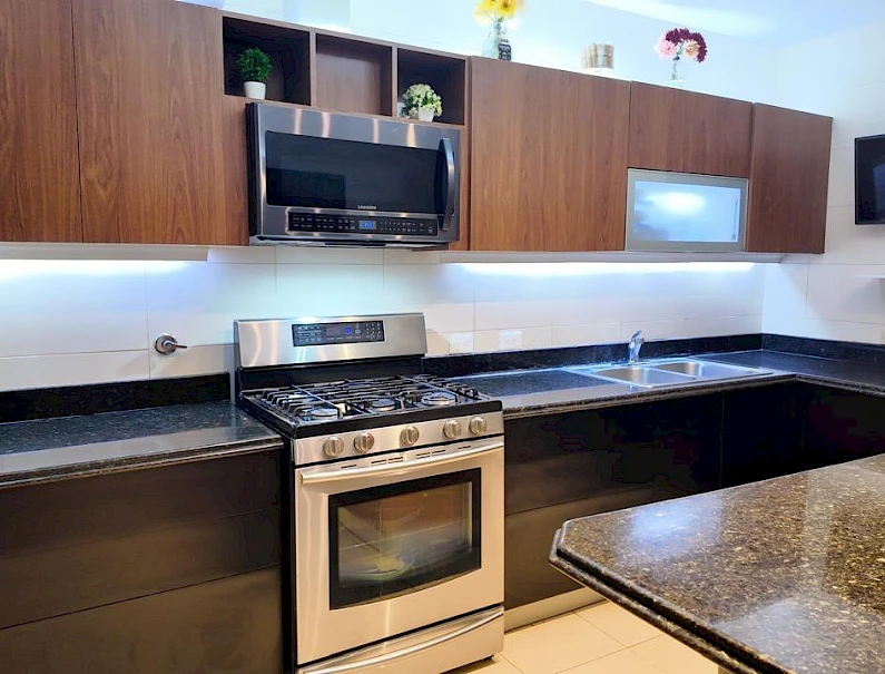 - La cuota mensual incluye: Agua, Conserje, Mantenimiento de áreas comunes, Gas, Seguridad