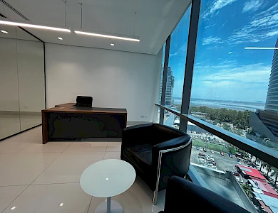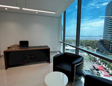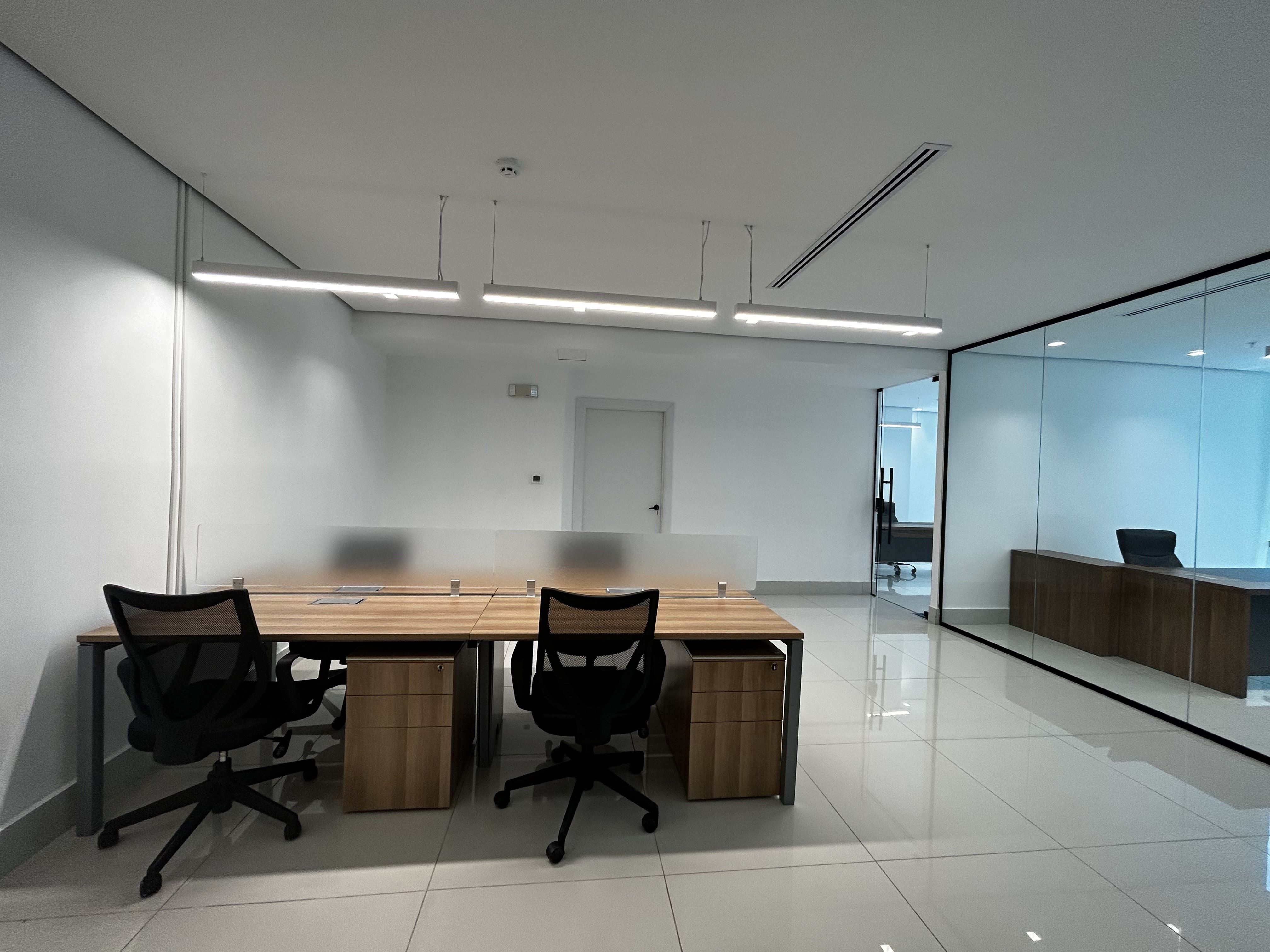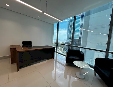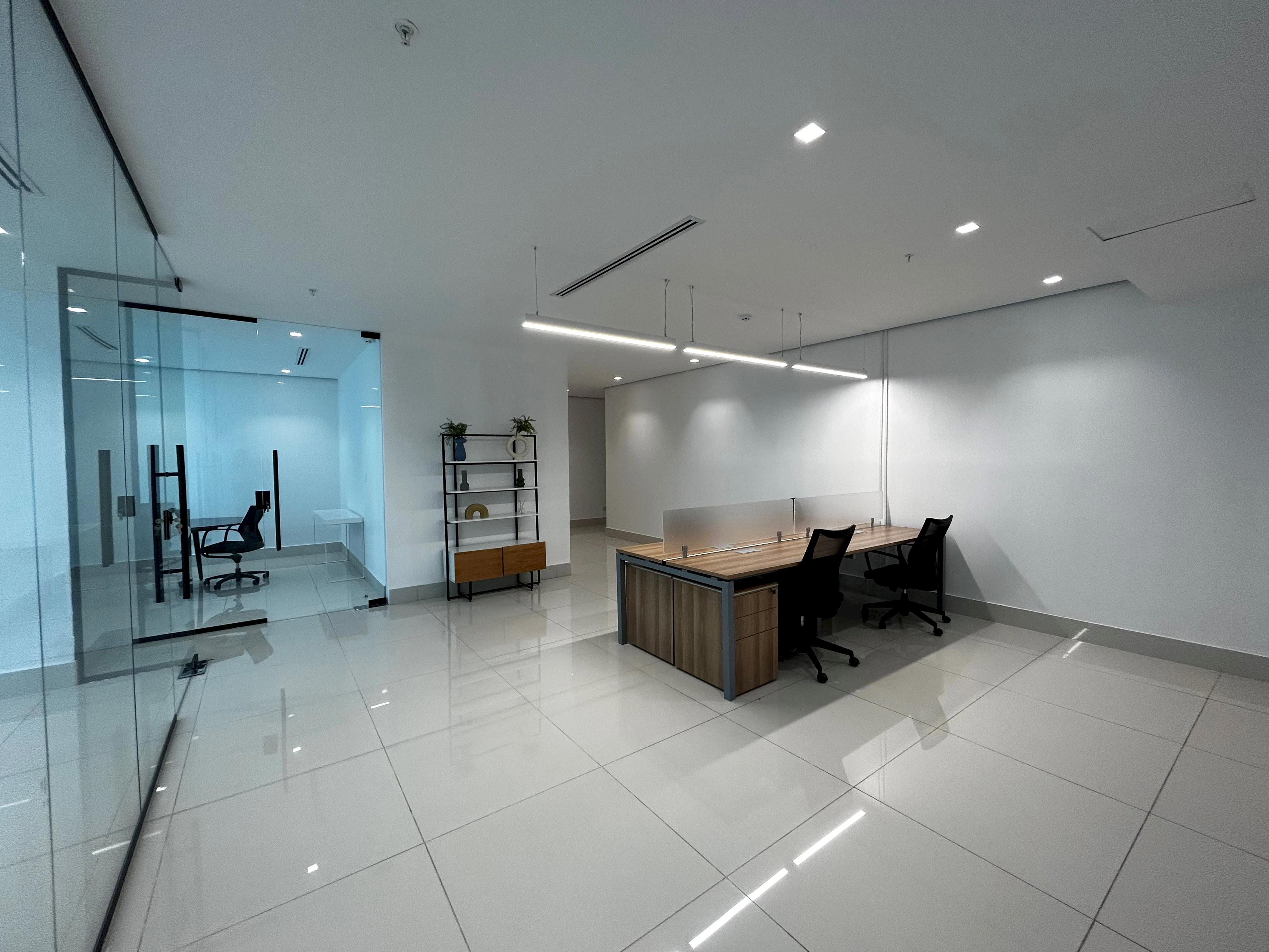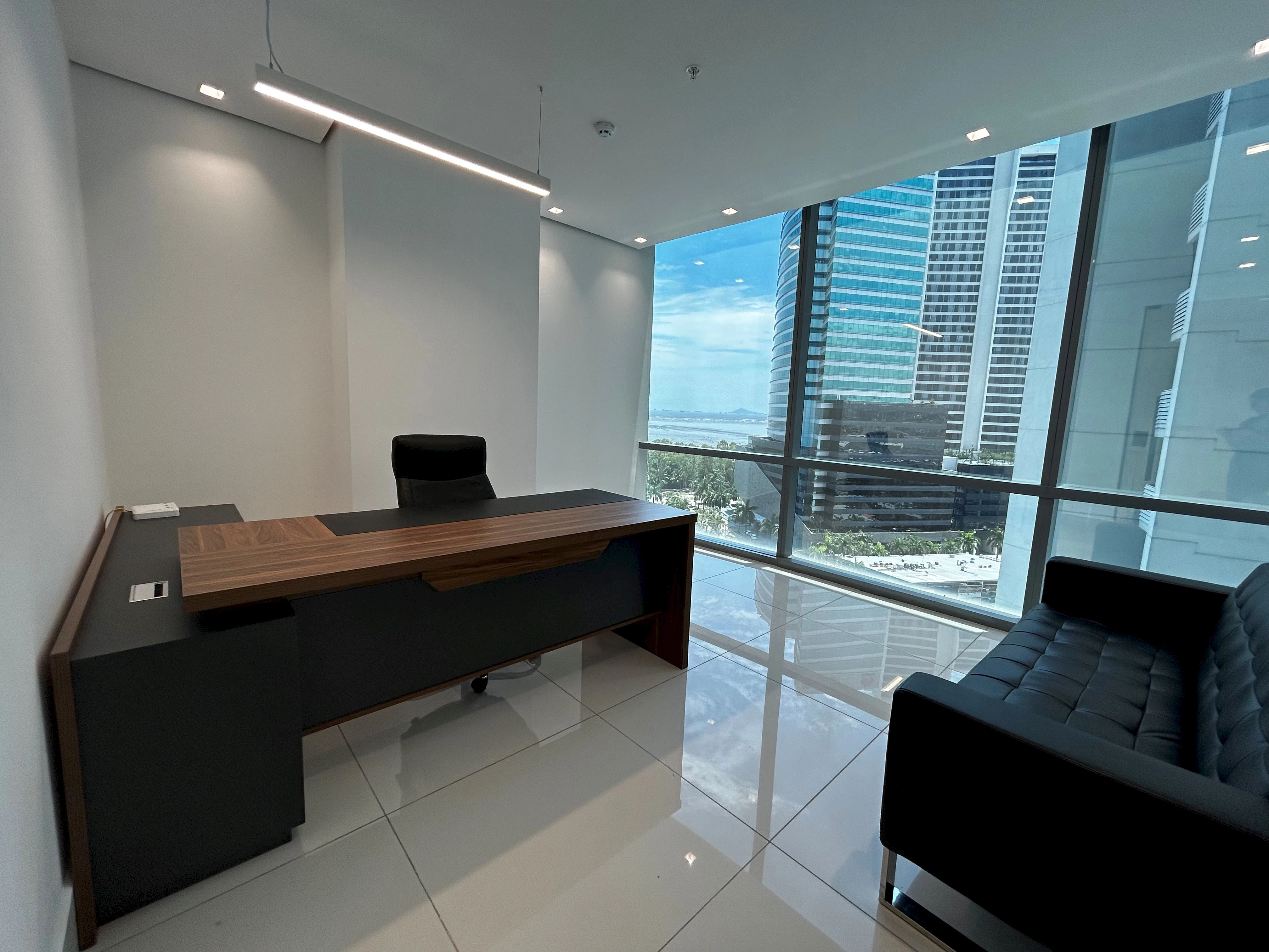 Se alquila oficina de lujo ubicada en PH Financial Park Tower totalmente amoblada, la propiedad cuenta con140 m2 , 2 puestos de estacionamientos, 1 baños, cocina, sala de reuniones, espacio de trabajo abierto y espacios privados, recepción, vista panorámicas, iluminación natural aire acondicionado lista para ocupar. Torre comercial completa con amenidades en lobby, servicio Valet Parking, ascensores de alta velocidad, ingreso Face ID, elegante e imponente lobby, seguridad en torre, estacionamientos de visitas y mucho más. Incluye Mantenimiento.Características