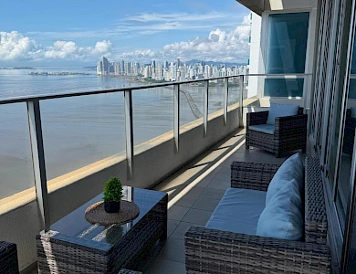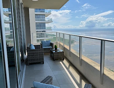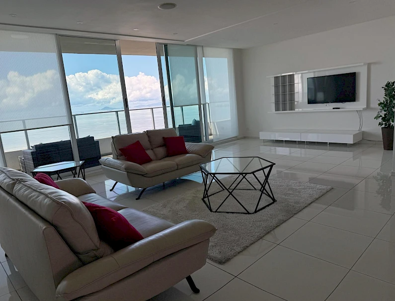 Ubicado en una de las zonas más exclusivas de la Ciudad de Panamá, con vista directa al mar, excelente diseño y distribución. Apartamento de 299 m2 con: • Recámara principal tipo suite con walk incloset, estar interior y jacuzzi, con vista al mar; • Dos recámaras secundarias amplias, cada una con baño privado y walk in closet; • Baño social; • Amplio den; • Estudio; • Balcón; • Sala; • Comedor; • Cocina con isla y desayunador; • Lavandería con tendedero; • Recámara y baño de servicio. • 2 estacionamientos doblesCaracterísticas