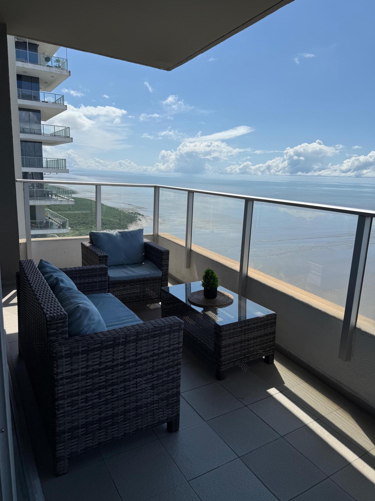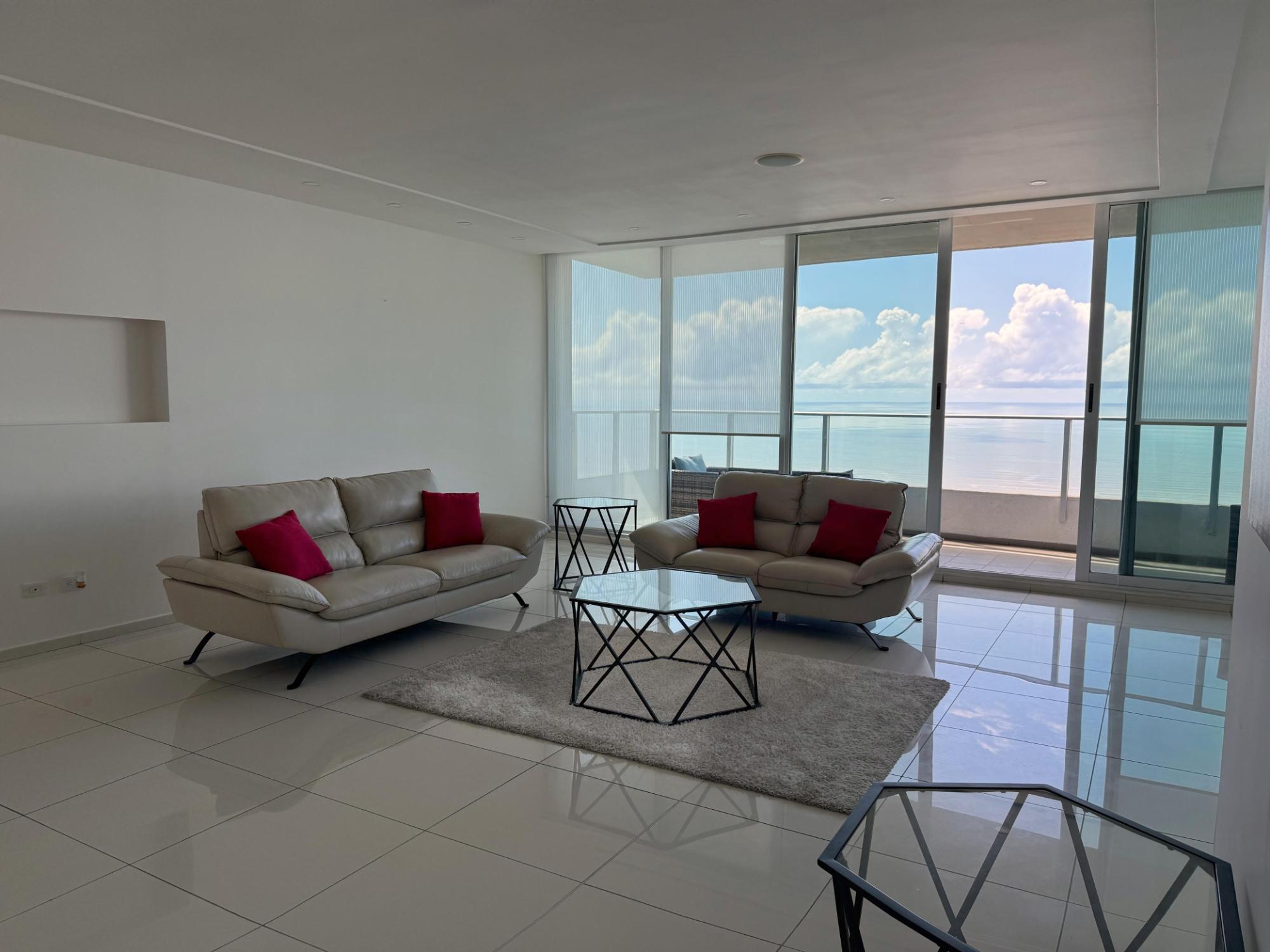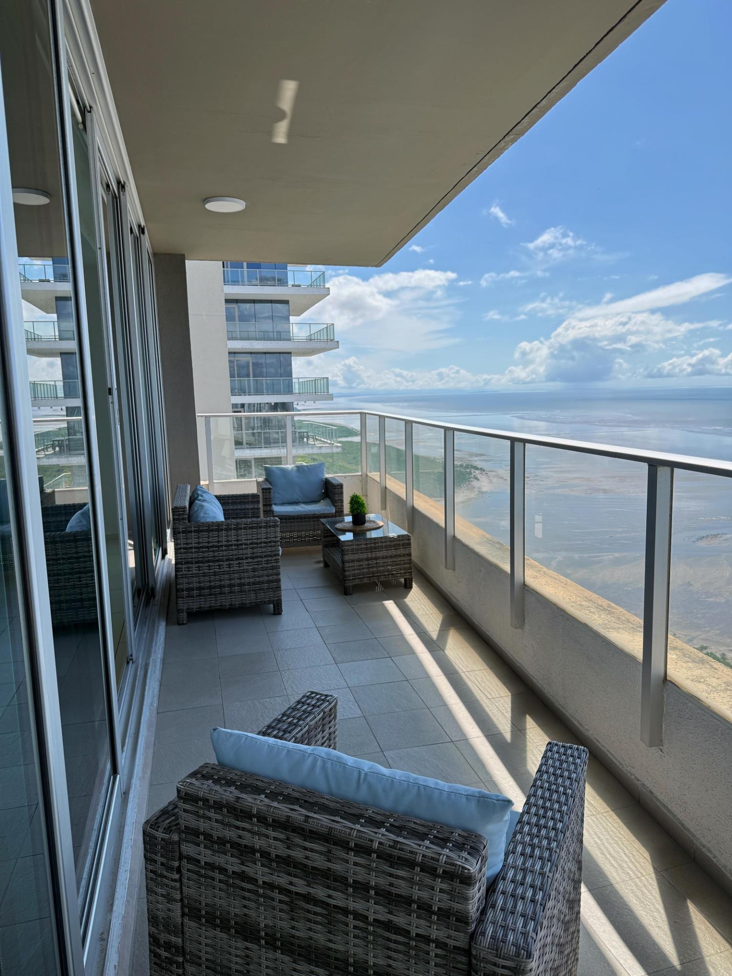 Ubicado en una de las zonas más exclusivas de la Ciudad de Panamá, con vista directa al mar, excelente diseño y distribución. Apartamento de 299 m2 con: • Recámara principal tipo suite con walk incloset, estar interior y jacuzzi, con vista al mar; • Dos recámaras secundarias amplias, cada una con baño privado y walk in closet; • Baño social; • Amplio den; • Estudio; • Balcón; • Sala; • Comedor; • Cocina con isla y desayunador; • Lavandería con tendedero; • Recámara y baño de servicio. • 2 estacionamientos doblesCaracterísticas