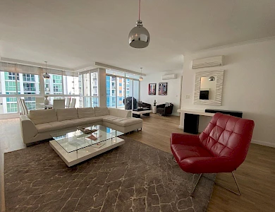 Apartamento de 3 recámaras y 2.5 baños en la calle 43 Bella Vista a pocos pasos de la Avenida Balboa y el Parque Urracá, con cocina remodelada y muebles modernos. El apartamento cuenta con 2 balcones, uno en sala-comedor y otro en recámara principal. Amplia sala-comedor, cocina con área para desayunador, closets para blancos, amplia lavandería y cuarto y baño de servicio. La calle cuenta con supermercado y farmacia y a un poco más de una cuadra se encuentra la cinta costera, donde se puede relajar, caminar o realizar varios deportes.Características