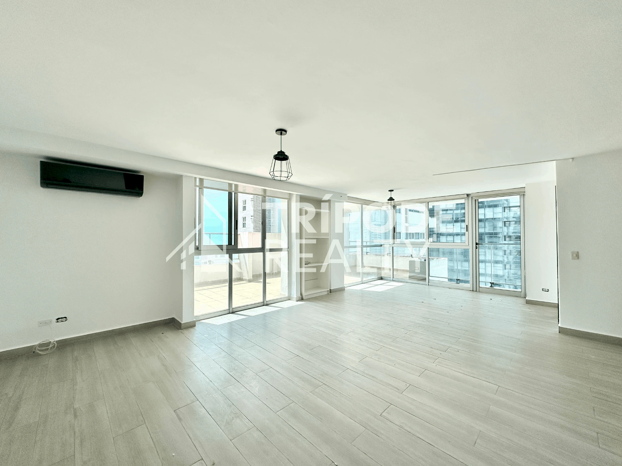 Propiedad Reposeida. Amplio apartamento en venta con excelente distribución y terraza en L con vista al mar y a la ciudad, ubicado en Bella Vista, a solo pasos de la Avenida Balboa, cerca de comercios y rapido acceso a vias principales. Cuenta con 127 Mtrs2 de construcción + 53 Mtrs2 de Terraza Sala comedor Cocina Lavanderia 3 habitaciones 2 baños 1 estacionamiento doble fondo 1 deposito Contáctenos para mayor información!Características