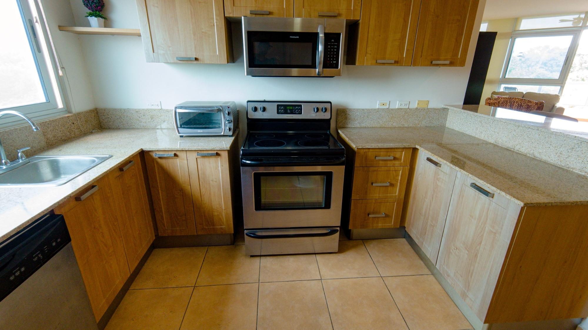 Este cómodo y elegante condominio se encuentra en el hermoso edificio Coronado Golf, construido en 2010 por la reconocida empresa BERN. Coronado es una tranquila comunidad de la costa del Pacífico, a solo una hora de la Ciudad de Panamá, popular entre expatriados y panameños que disfrutan de su playa de arena blanca y negra y del océano. Ofrece cuatro importantes centros comerciales con supermercados, bancos, restaurantes, clínicas de salud, dentistas, veterinarios, salones de belleza, spa y mucho más. Ubicado en el quinto piso, este elegante condominio de dos dormitorios y dos baños, listo para entrar a vivir, ofrece vistas a la costa, la playa y el campo de golf. Decorado en estilo playero, ofrece lo siguiente: Amplia sala principal con comedor y acceso al balcón Cocina totalmente equipada con despensa, encimeras de granito, lavavajillas, refrigerador grande, estufa, microondas y acceso a la lavandería con lavadora/secadora, calentador de agua a demanda Suite principal con vestidor y baño privado con bañera profunda Dormitorio de invitados Balcón con vista al mar 1 lugar de estacionamiento El dormitorio y la sala principal tienen ventanales de piso a techo, lo que aporta mucha luz, y las ventanas a ambos lados brindan una excelente circulación de aire durante todo el año. Todo el apartamento tiene vistas al golf y a la montaña. El edificio El edificio se completó en 2010. Todavía ofrece 5 años de exención de impuestos. 31 niveles de apartamentos 4 ascensores de alta velocidad, Impresionante área social panorámica en la azotea con piscina, jacuzzis, gimnasio totalmente equipado, sala de juegos, área de juegos infantiles y piscina en la planta baja, Servicios de administración del edificio, seguridad las 24 horas,Características