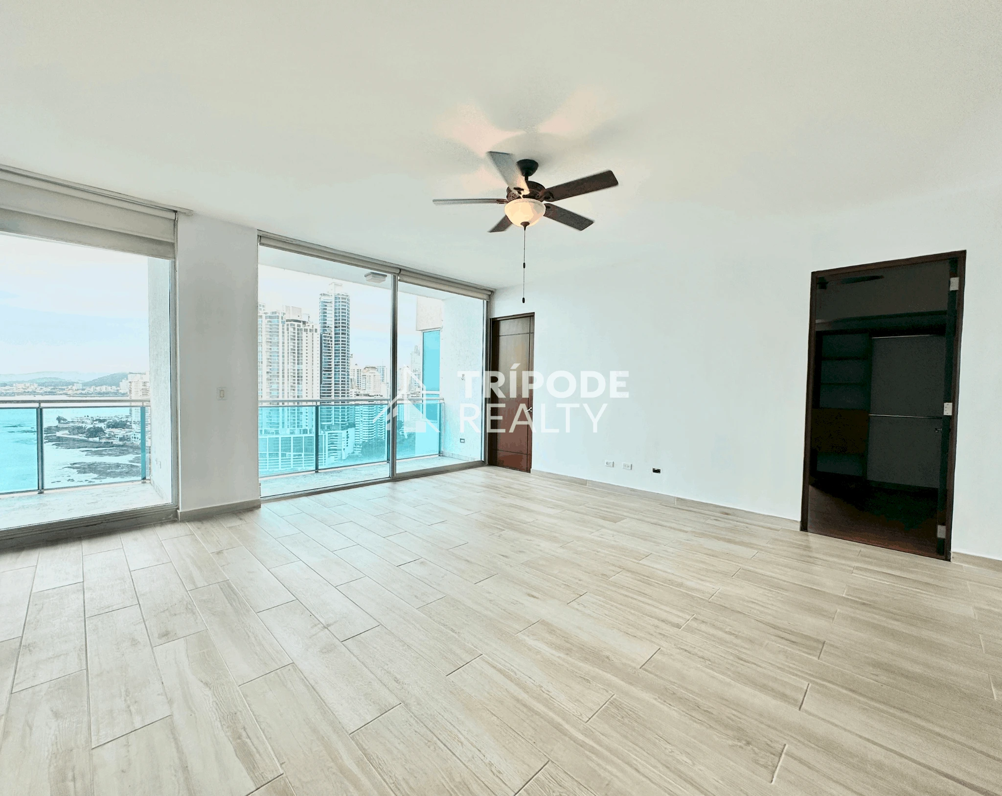 Elegante apartamento con vista al mar y de amplios e iluminados espacios ubicado en Punta Pacifica, zona residencial cercana al mall multiplaza, hospitales, comercios y rapido acceso al corredor sur. Edificio con solo 1 apartamento por piso. Incluye linea blanca completa y persianas. - Cuenta con 356 Mtrs2 - Sala comedor - 1/2 baño de visitas - Balcon - Cocina con despensa y espacio para desayunador - Lavanderia - Cuarto y baño de servicio con entrada independiente - Den familiar - 3 habitaciones con baño privado y walk in closet - 3 Estacionamientos Contáctenos para mayor información!Características