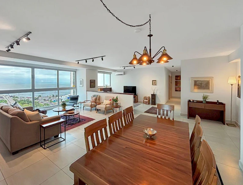 Notas: Apartamento en PH Astre, San Francisco — 190 m2, 3 recámaras y con una ubicación estratégica para quienes valoran lo mejor de la ciudad. Al ingresar, te recibe un amplio living comedor integrado con una elegante sala de estar y TV room. Los ventanales de piso a techo permiten el ingreso de luz natural al ambiente y regalan una vista abierta hacia el mar, ideal para contemplar los amaneceres, relajarse o disfrutar de un buen momento. La cocina de concepto abierto combina diseño y funcionalidad, con una isla central que se convierte en el punto de encuentro perfecto para compartir en familia o con amigos. Equipada con amplios muebles de almacenamiento, sobres de granito y una distribución en “L” que optimiza el espacio, es un ambiente moderno y práctico. Además, cuenta con área de lavandería, cuarto y baño de servicio. Un pasillo nos conecta con las tres recámaras, todas con baño privado y excelentes espacios de almacenamiento. La recámara principal destaca por su amplitud, walk-in closet y baño en suite con doble lavamanos, ducha independiente y bañera. El apartamento incluye dos estacionamientos, un depósito, línea blanca y muebles, agregando comodidad y valor a la propiedad. El edificio cuenta con un área social completa: piscina, gimnasio, salón de eventos, área infantil, cancha deportiva y seguridad 24/7 para tu tranquilidad. PH Astre ofrece una ubicación privilegiada en San Francisco, cerca de restaurantes, colegios, centros comerciales y parques, con acceso rápido a las principales vías de la ciudad. Es el lugar perfecto para quienes buscan comodidad y conexión con la ciudad.Características