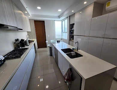 Banco vende apartamento de 358 m² en el exclusivo PH Aria, Costa del Este, distribuido en 4 recámaras (cada una con baño privado, dos de ellas con walk-in closet), 4 baños completos, medio baño de visitas, sala, comedor, sala familiar con balcón, den, desayunador, cocina con sobres de cuarzo, lavandería, cuarto y baño de empleada. Incluye 3 estacionamientos privados y un depósito. mas linea blanca y aires acondicionados El apartamento cuenta con acabados de lujo como pisos de mármol y porcelanato, baños con sobres de mármol y tina jacuzzi en el principal. El edificio ofrece completas áreas sociales con piscina, gimnasio, salón de juegos, cancha de squash, salón de fiestas, baño turco, seguridad 24/7, planta eléctrica y estacionamientos de visitas. Precio de venta: B/.950,000.00. Para más información contáctanosCaracterísticas