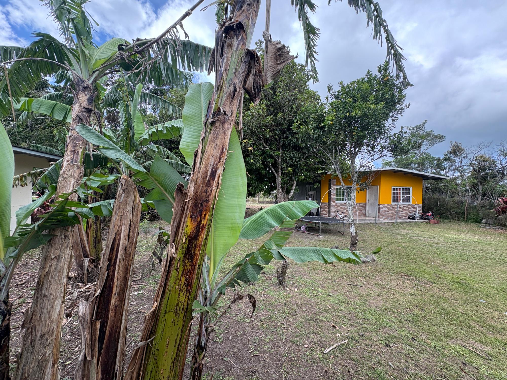 Esta propiedad se encuentra en Nueva California, Tierras Altas, provincia de Chiriquí, con una excelente ubicación que ofrece 1200 m² de terreno y 75 m² de construcción. El terreno llano se complementa con una variedad de árboles frutales, como naranjos, limoneros, nísperos y anacardos, lo que crea un entorno natural y productivo. La casa cuenta con dos dormitorios y un baño. Con vistas despejadas a las montañas, la propiedad se encuentra a solo 650 metros del centro del pueblo, lo que la convierte en una ubicación conveniente cerca de servicios locales, como tiendas y otros comercios. Su ubicación en Tierras Altas, a 1374 metros sobre el nivel del mar, ofrece potencial para la jardinería o la agricultura, lo que aumenta el valor de la tierra para quienes buscan cultivarla.Características