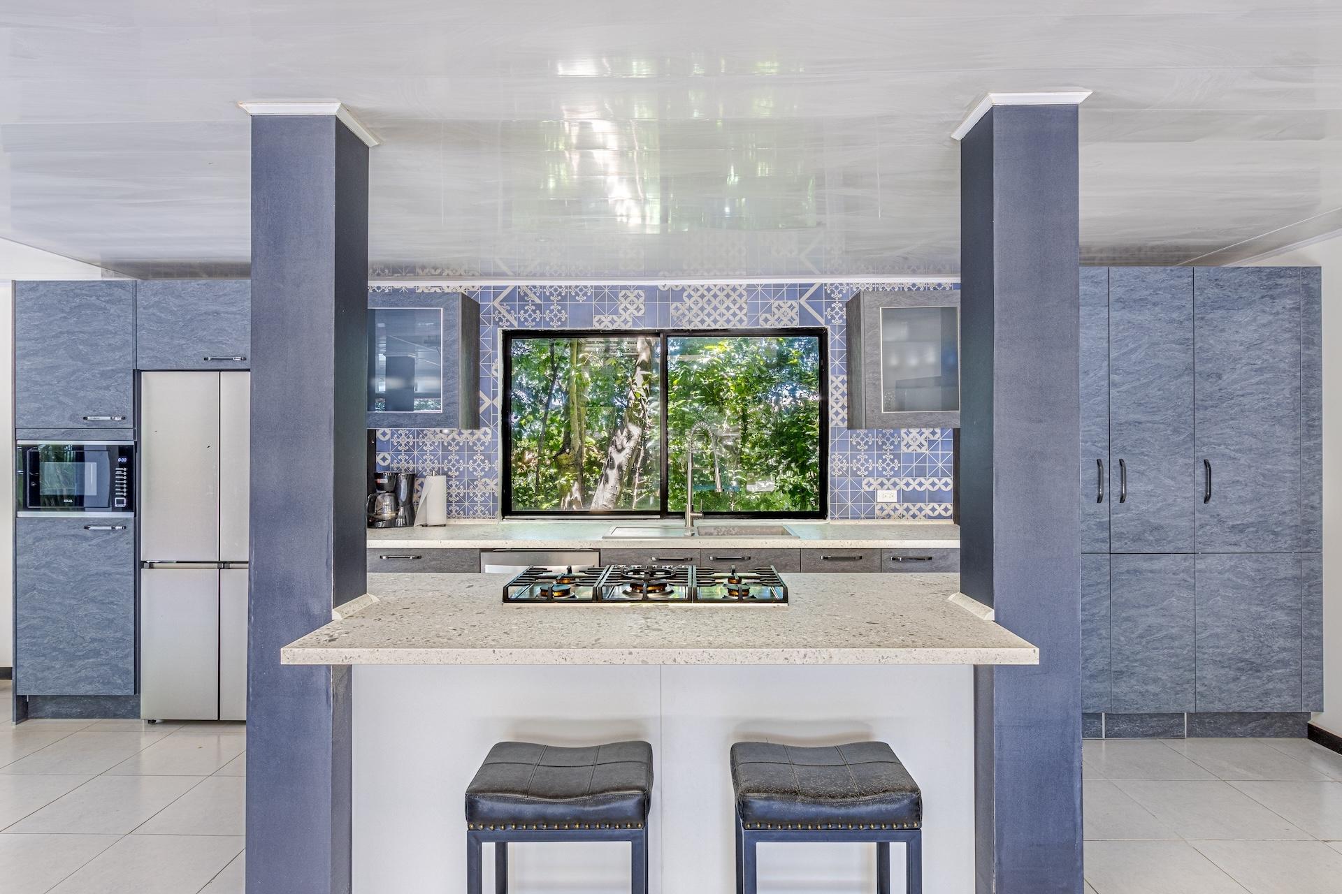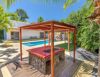 No pierda la oportunidad de adquirir este exclusivo y rentable complejo a solo minutos de la playa en la hermosa Costa Esmeralda. Ubicada en casi 200 m² de exuberante terreno con palmeras, esta propiedad única combina la vida tropical, la sostenibilidad y el diseño moderno, todo ello con una entrega llave en mano dentro de una corporación panameña (incluido en la venta). Características destacadas de la residencia principal: Construida a partir de múltiples contenedores marítimos y completamente renovada, la casa principal ofrece 258 m² de espacio interior y 64 m² de espacio exterior cubierto. 3 amplios dormitorios con baños en suite Cocina alemana importada a estrenar con electrodomésticos de alta gama Sala de estar, comedor y cocina de concepto abierto, ideal para el entretenimiento Amplia terraza en la azotea con vistas panorámicas a Coronado y las montañas Patios cubiertos, zona de barbacoa y piscina estilo resort Piscina enterrada con energía solar Baño y ducha al aire libre Apartamento de invitados + Edificio adicional: La segunda estructura construida en contenedores ofrece potencial para generar ingresos o ampliar las opciones de vivienda: Planta alta: Un estudio privado de 1 dormitorio y 1 baño, totalmente equipado, con entrada independiente y vistas a la piscina Planta baja: 60 m² de espacio flexible, listo para ser terminado como: Un apartamento de alquiler de 2 dormitorios Una suite principal de lujo Un estudio de yoga o bienestar Un espacio de retiro o de negocios Una conversión de B&B u hostal El acceso privado al jardín permite a los huéspedes disfrutar de una entrada tranquila e independiente. Características de vida sostenible: Sistema de paneles solares con batería de respaldo de 14,000 kW Conexión a la red eléctrica con sistema de retroalimentación (factura promedio de electricidad: menos de $2 al mes) Pozo privado de 40 metros de profundidad con dos tanques de reserva Diseño ecológico en toda la propiedad Ubicación: Ubicada en la segura comunidad costera de Costa Esmeralda, a un corto trayecto en auto de las tiendas, restaurantes y servicios de Coronado. Resumen de características clave: Casa principal de 3 habitaciones y 3 baños + apartamento de invitados Llave en mano + empresa incluida Totalmente alimentada con energía solar y respaldo de la red eléctrica Terreno cercado de 1900 m² (0.5 acre) con árboles frutales Sin cuotas de HOA (Asociación de Propietarios) Internet de fibra óptica de alta velocidad y sistema de seguridad completoCaracterísticas