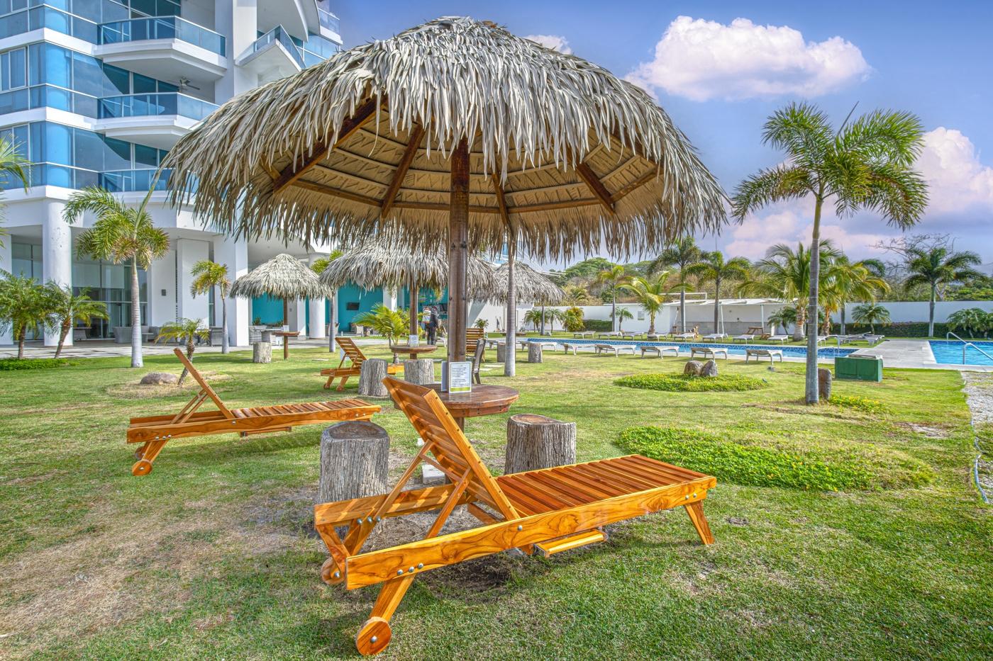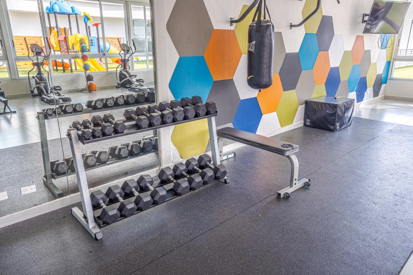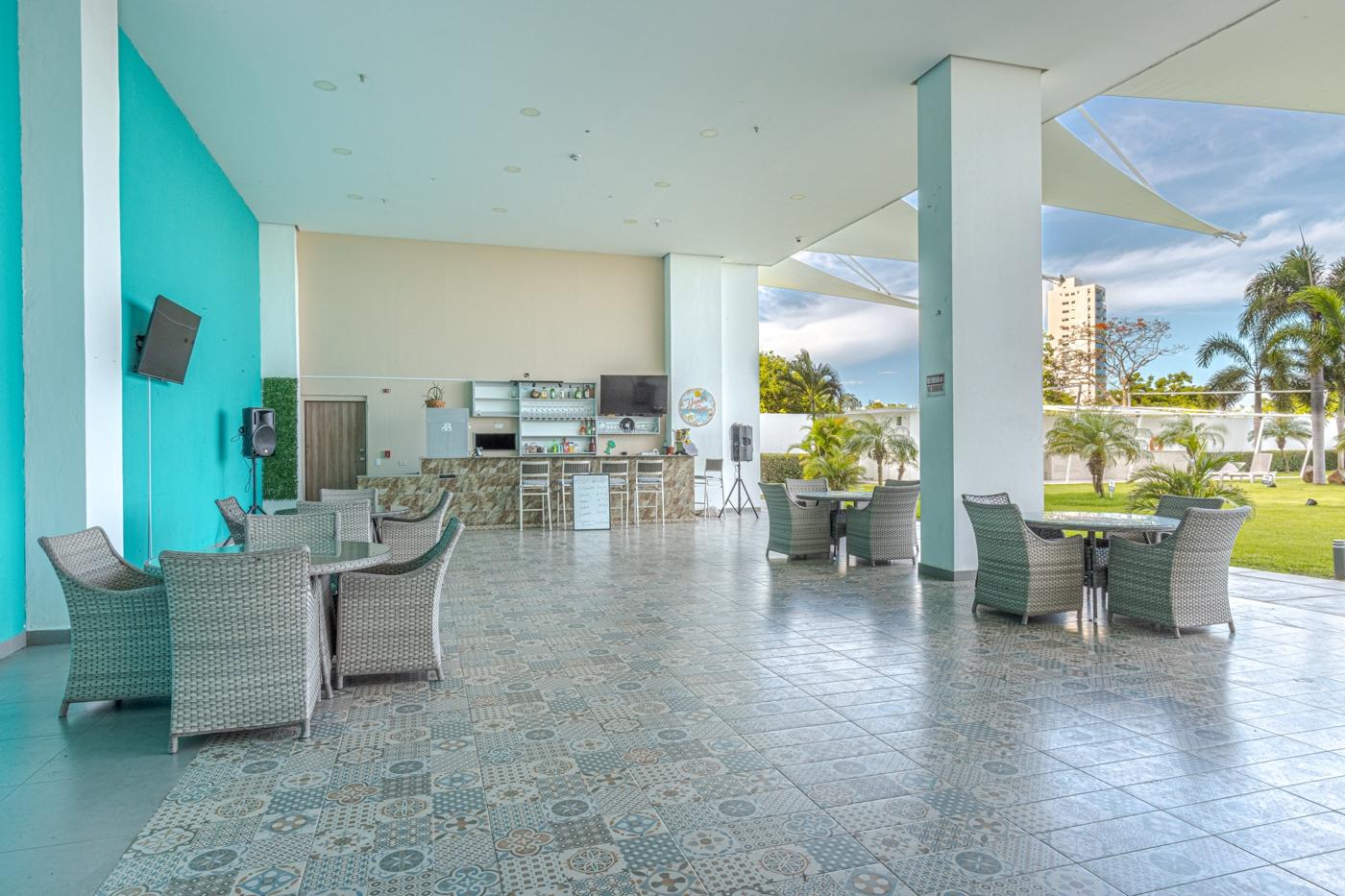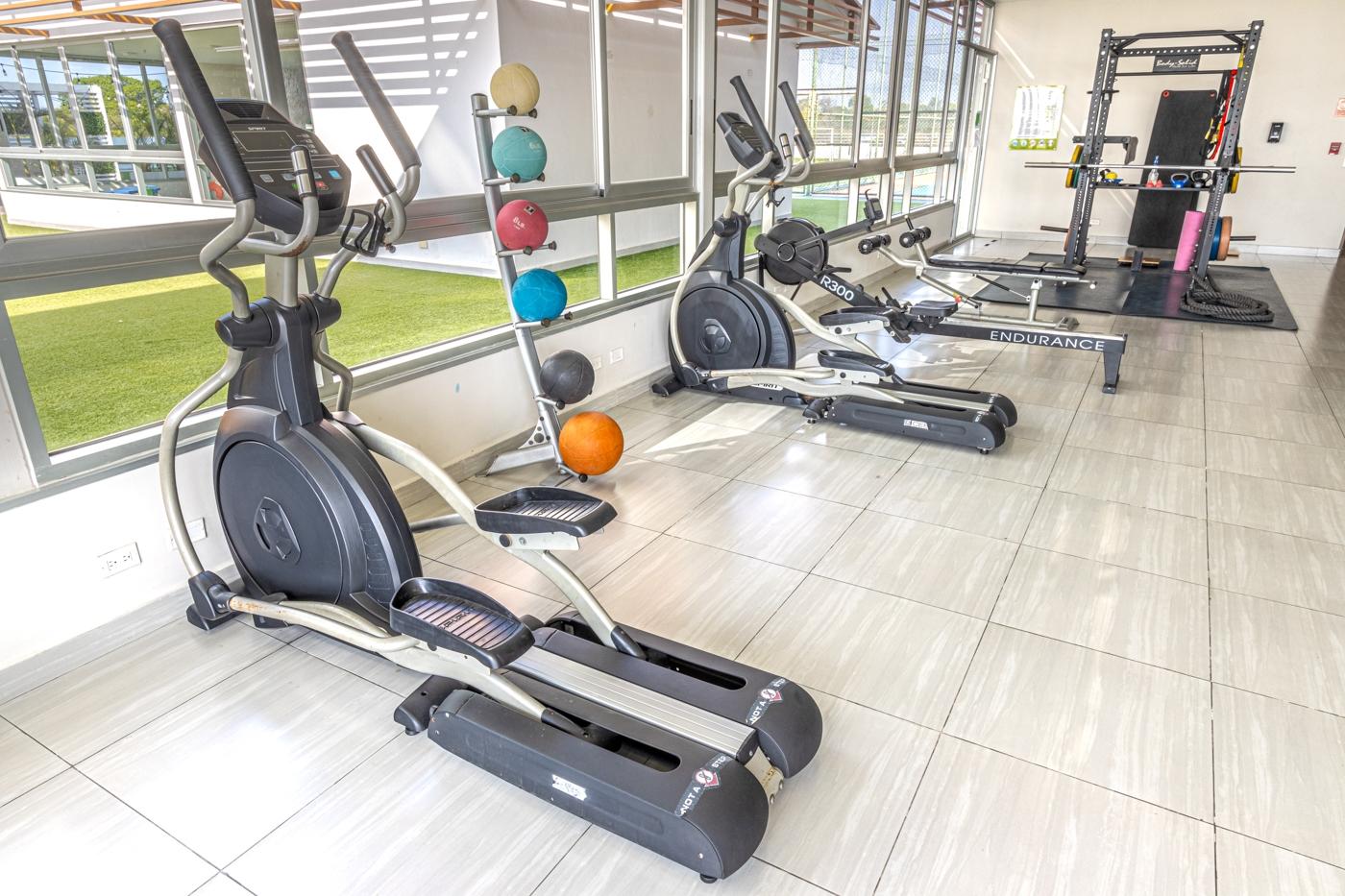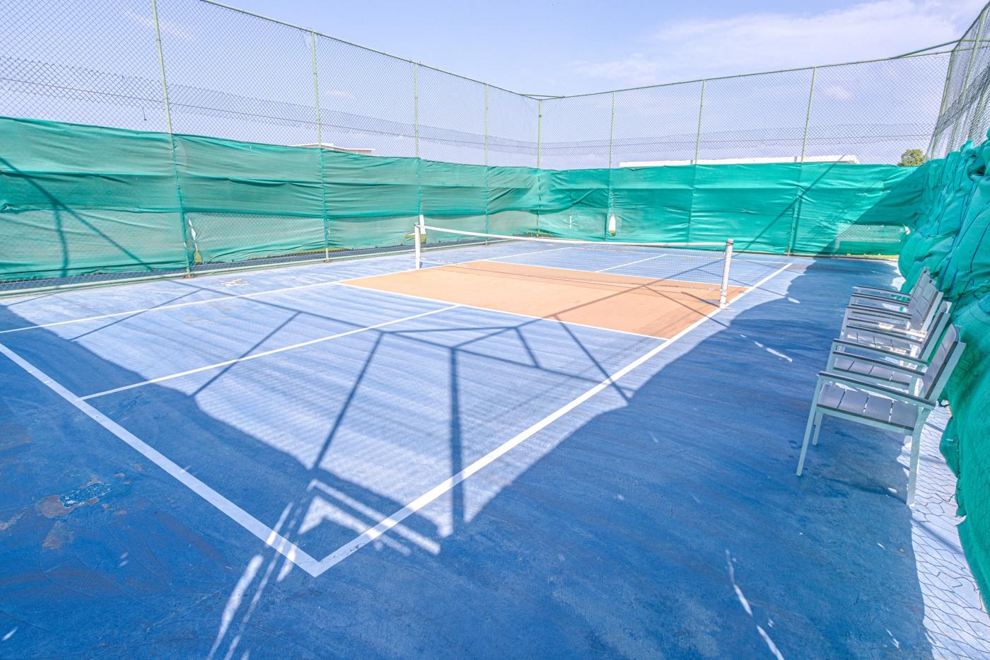 - Servicios compartidos: Acceso silla de ruedas, Area verde, Ascensor, Cancha de futbol, Cancha de tenis, Area de juegos, Gimnasio, Piscina exterior, Sauna, Seguridad privada, Estacionamiento de Visitas, Jacuzzi, Cuarto de Juegos, Sala de Fiestas