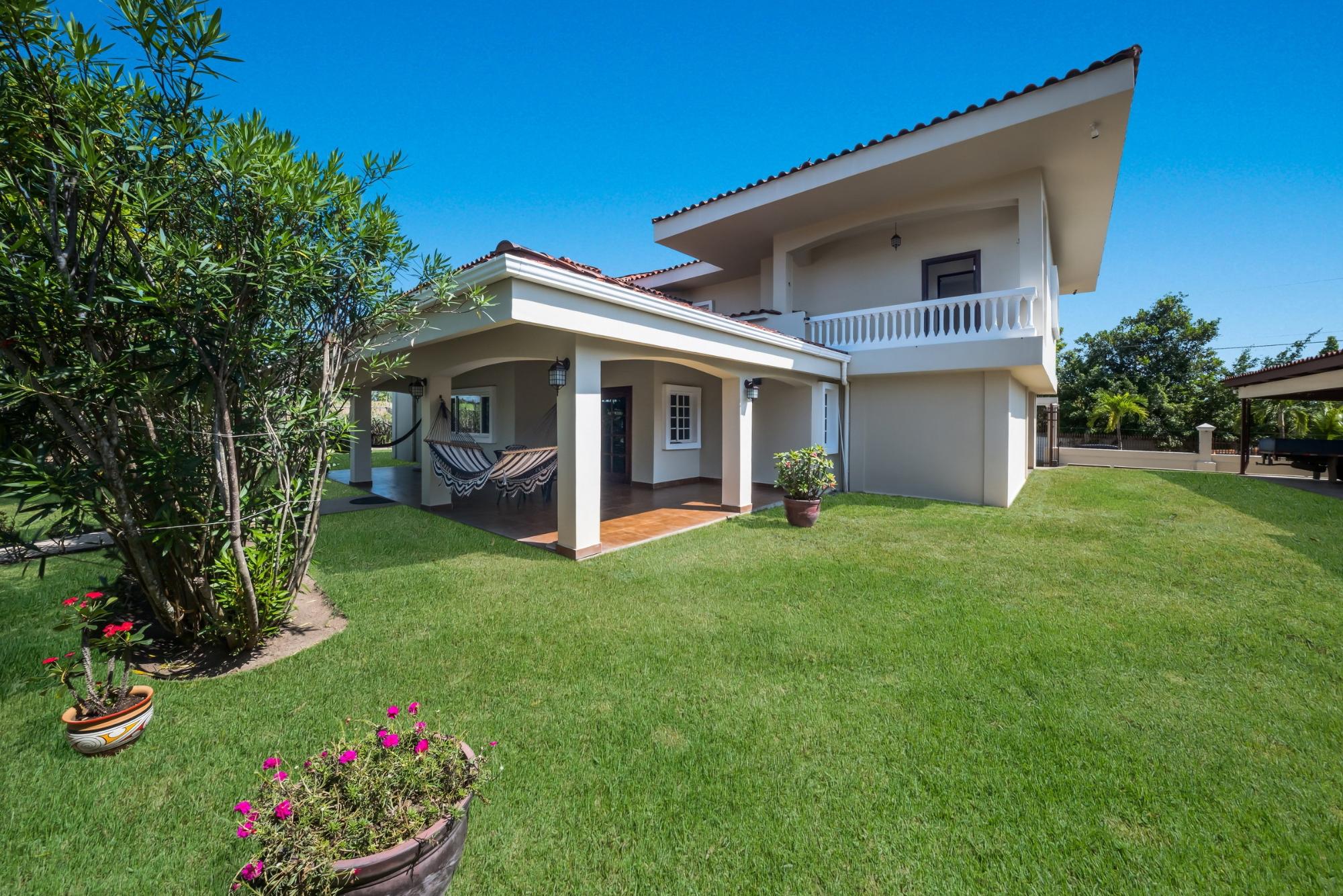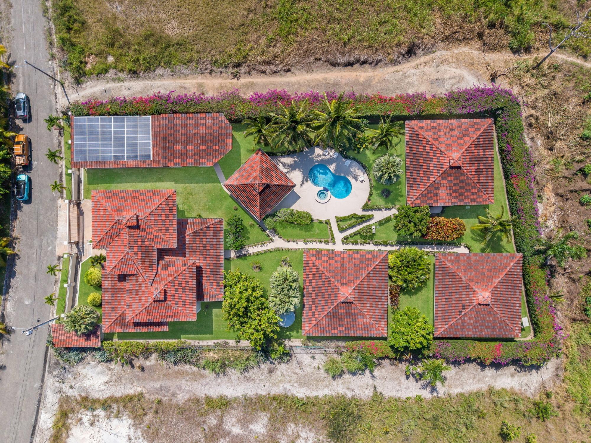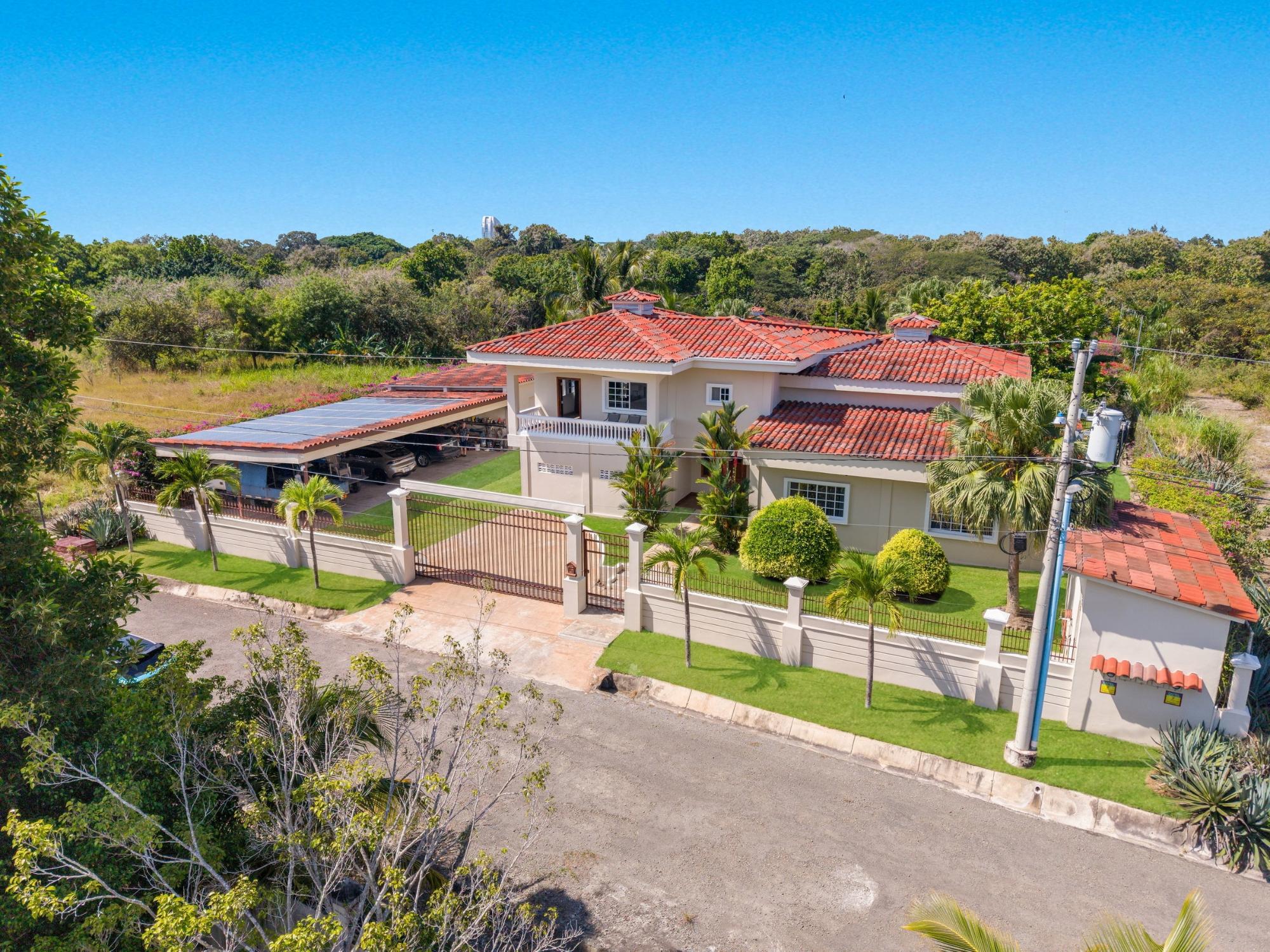 Descubre tu hogar soñado en Santa Clara, Río Hato: una propiedad que combina perfectamente el lujo moderno, el confort y la belleza natural de la Costa Pacífica de Panamá. Esta impresionante casa ofrece amplios interiores, acabados elegantes y espacios exteriores expansivos, lo que la convierte en el lugar ideal para relajantes escapadas familiares o para organizar reuniones inolvidables. Ubicada a solo minutos de la playa, esta propiedad promete un estilo de vida de tranquilidad y exclusividad. La propiedad cuenta con un área total de terreno de 3,033 m² y una casa principal de 380 m², totalmente amoblada y equipada. La casa principal tiene 3 dormitorios, 3.5 baños, un den, sala de estar, cocina y oficina. El área común incluye un gazebo con parrilla, nevera, fregadero y una amplia zona de asientos, así como una piscina con duchas exteriores y baño. Además, la propiedad incluye tres casas de huéspedes, cada una de 118 m², amobladas y equipadas con 2 dormitorios, 2 baños, sala y cocina. La construcción está realizada con cemento, concreto y paneles M2, lo que proporciona un excelente aislamiento, mínimo mantenimiento y una estructura robusta. La propiedad está equipada con paneles solares que abastecen de energía a la casa principal y las áreas comunes, eliminando los costos de electricidad. El sistema solar también puede suministrar energía a las casas de huéspedes si es necesario. Cada casa, incluidas las casas de huéspedes y las áreas comunes, tiene su propio medidor de electricidad. La propiedad también cuenta con un pozo de agua privado con sistema de riego, un sistema de drenaje integral y un sistema de seguridad instalado en toda la propiedad. Además, dispone de un generador eléctrico, internet de alta velocidad por fibra óptica con Tigo y bombas de agua a presión y de pozo. La comunidad es una zona residencial privada con una sinagoga, ubicada a poca distancia de una playa aislada de arena blanca y aguas cristalinas. Esta propiedad combina comodidad, eficiencia y comodidades modernas dentro de un entorno pacífico y privado, lo que la convierte en el retiro familiar ideal en la tranquila localidad de Santa Clara.Características