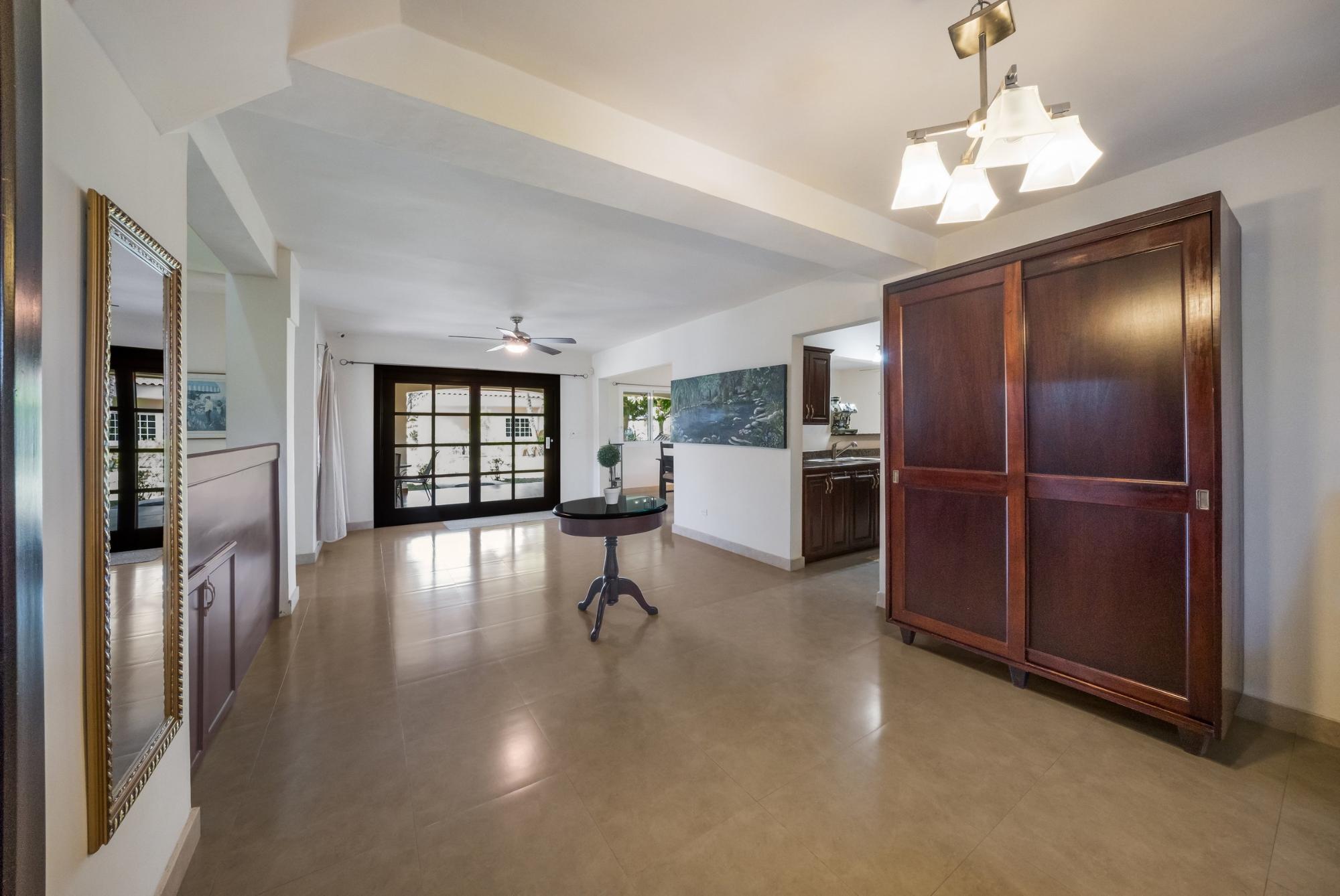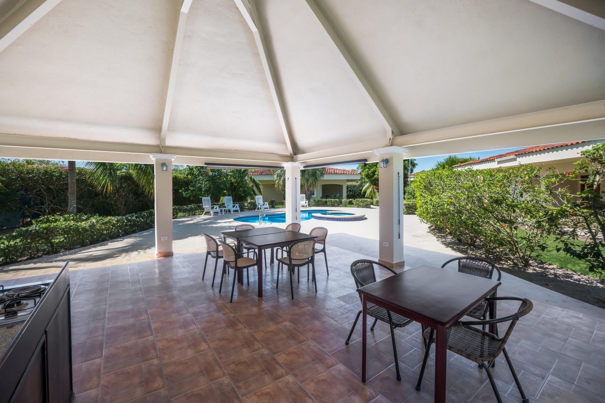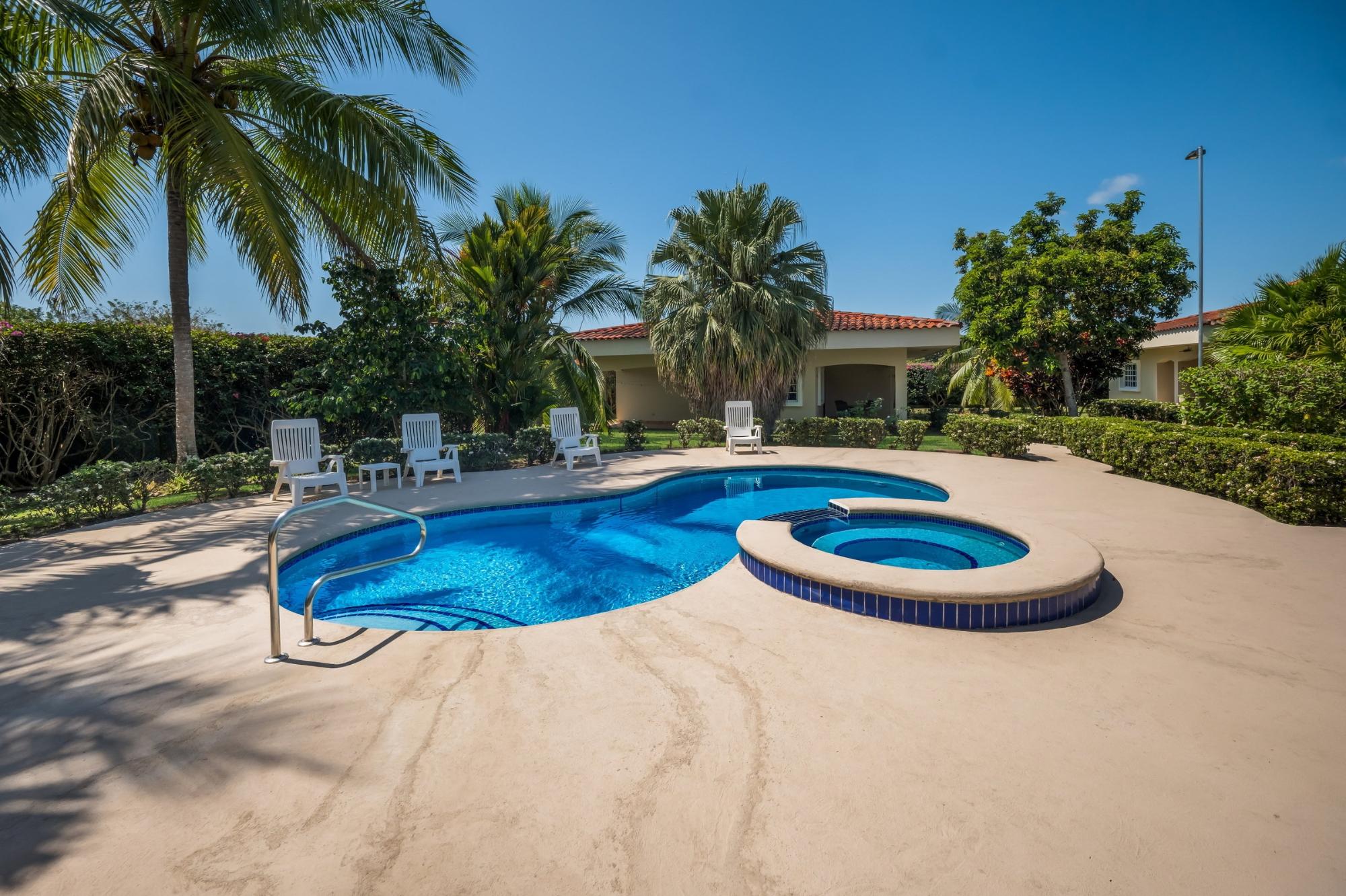 Descubre tu hogar soñado en Santa Clara, Río Hato: una propiedad que combina perfectamente el lujo moderno, el confort y la belleza natural de la Costa Pacífica de Panamá. Esta impresionante casa ofrece amplios interiores, acabados elegantes y espacios exteriores expansivos, lo que la convierte en el lugar ideal para relajantes escapadas familiares o para organizar reuniones inolvidables. Ubicada a solo minutos de la playa, esta propiedad promete un estilo de vida de tranquilidad y exclusividad. La propiedad cuenta con un área total de terreno de 3,033 m² y una casa principal de 380 m², totalmente amoblada y equipada. La casa principal tiene 3 dormitorios, 3.5 baños, un den, sala de estar, cocina y oficina. El área común incluye un gazebo con parrilla, nevera, fregadero y una amplia zona de asientos, así como una piscina con duchas exteriores y baño. Además, la propiedad incluye tres casas de huéspedes, cada una de 118 m², amobladas y equipadas con 2 dormitorios, 2 baños, sala y cocina. La construcción está realizada con cemento, concreto y paneles M2, lo que proporciona un excelente aislamiento, mínimo mantenimiento y una estructura robusta. La propiedad está equipada con paneles solares que abastecen de energía a la casa principal y las áreas comunes, eliminando los costos de electricidad. El sistema solar también puede suministrar energía a las casas de huéspedes si es necesario. Cada casa, incluidas las casas de huéspedes y las áreas comunes, tiene su propio medidor de electricidad. La propiedad también cuenta con un pozo de agua privado con sistema de riego, un sistema de drenaje integral y un sistema de seguridad instalado en toda la propiedad. Además, dispone de un generador eléctrico, internet de alta velocidad por fibra óptica con Tigo y bombas de agua a presión y de pozo. La comunidad es una zona residencial privada con una sinagoga, ubicada a poca distancia de una playa aislada de arena blanca y aguas cristalinas. Esta propiedad combina comodidad, eficiencia y comodidades modernas dentro de un entorno pacífico y privado, lo que la convierte en el retiro familiar ideal en la tranquila localidad de Santa Clara.Características