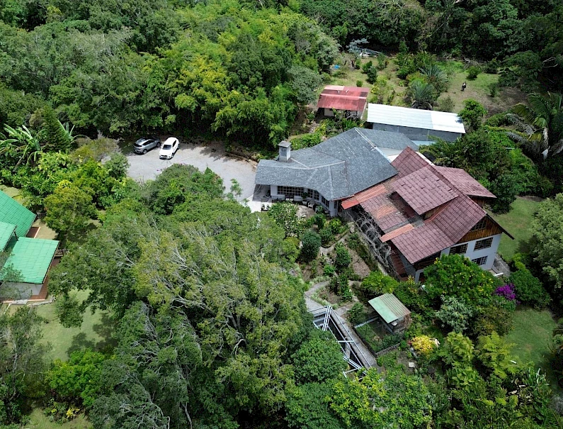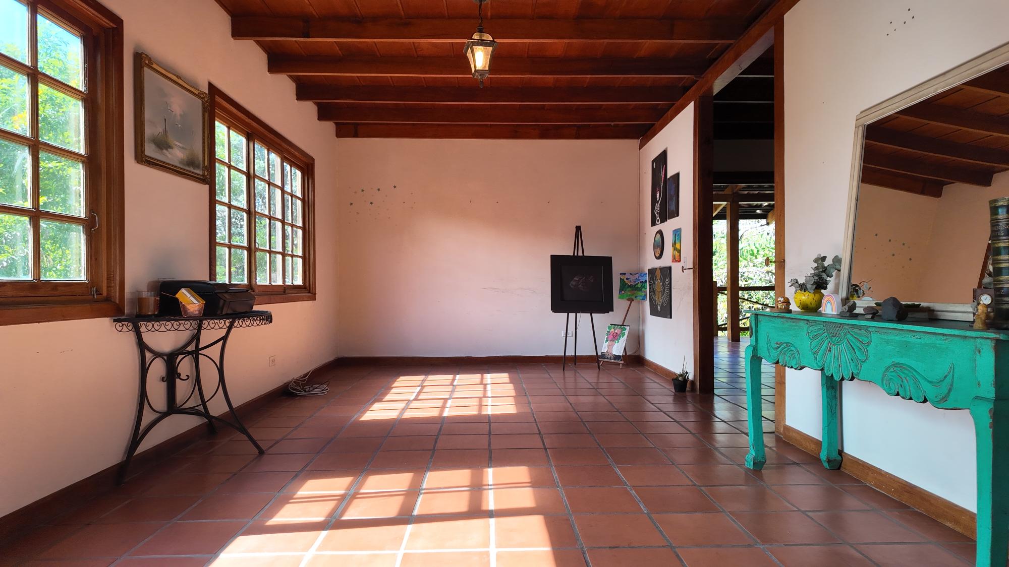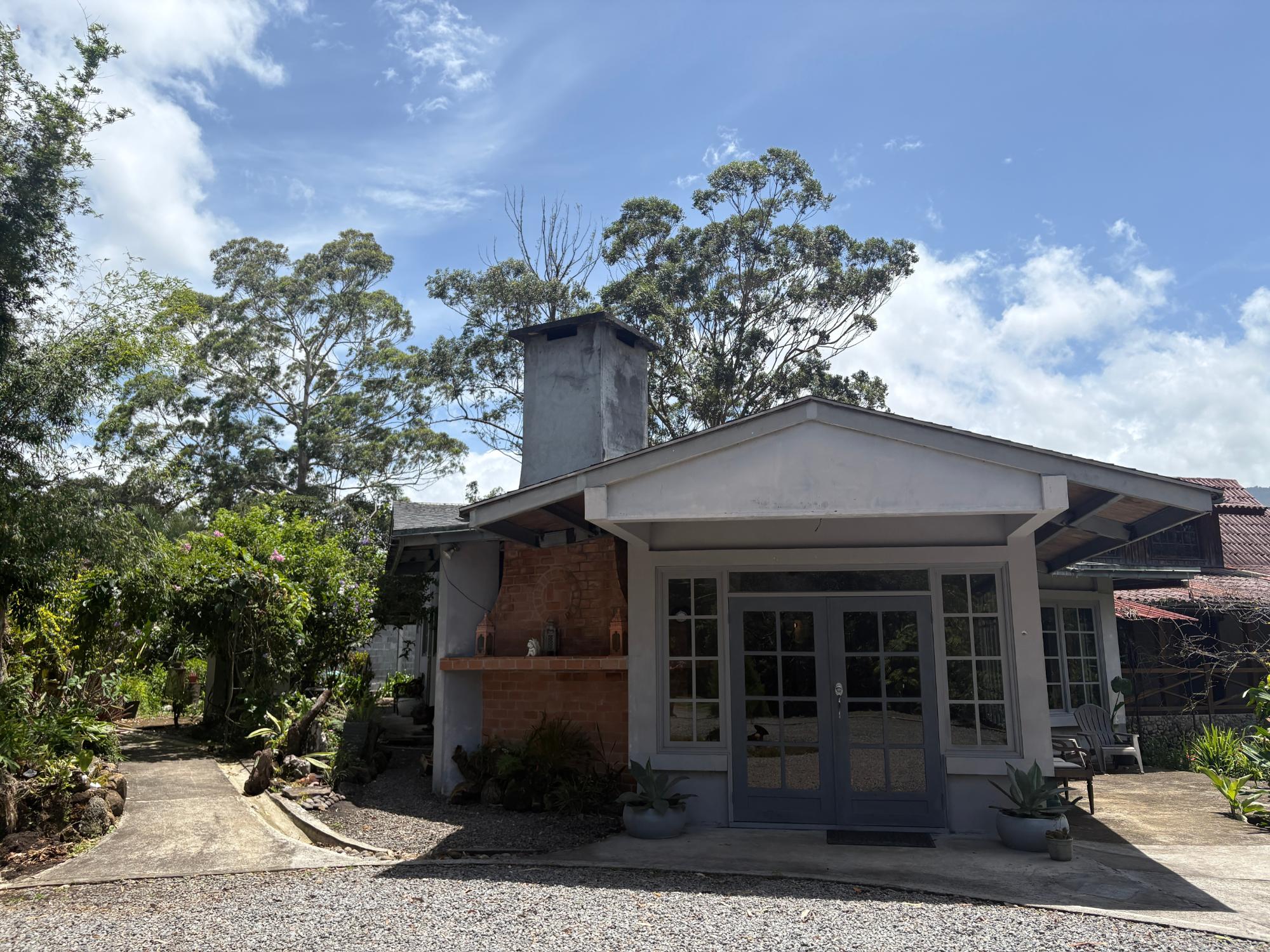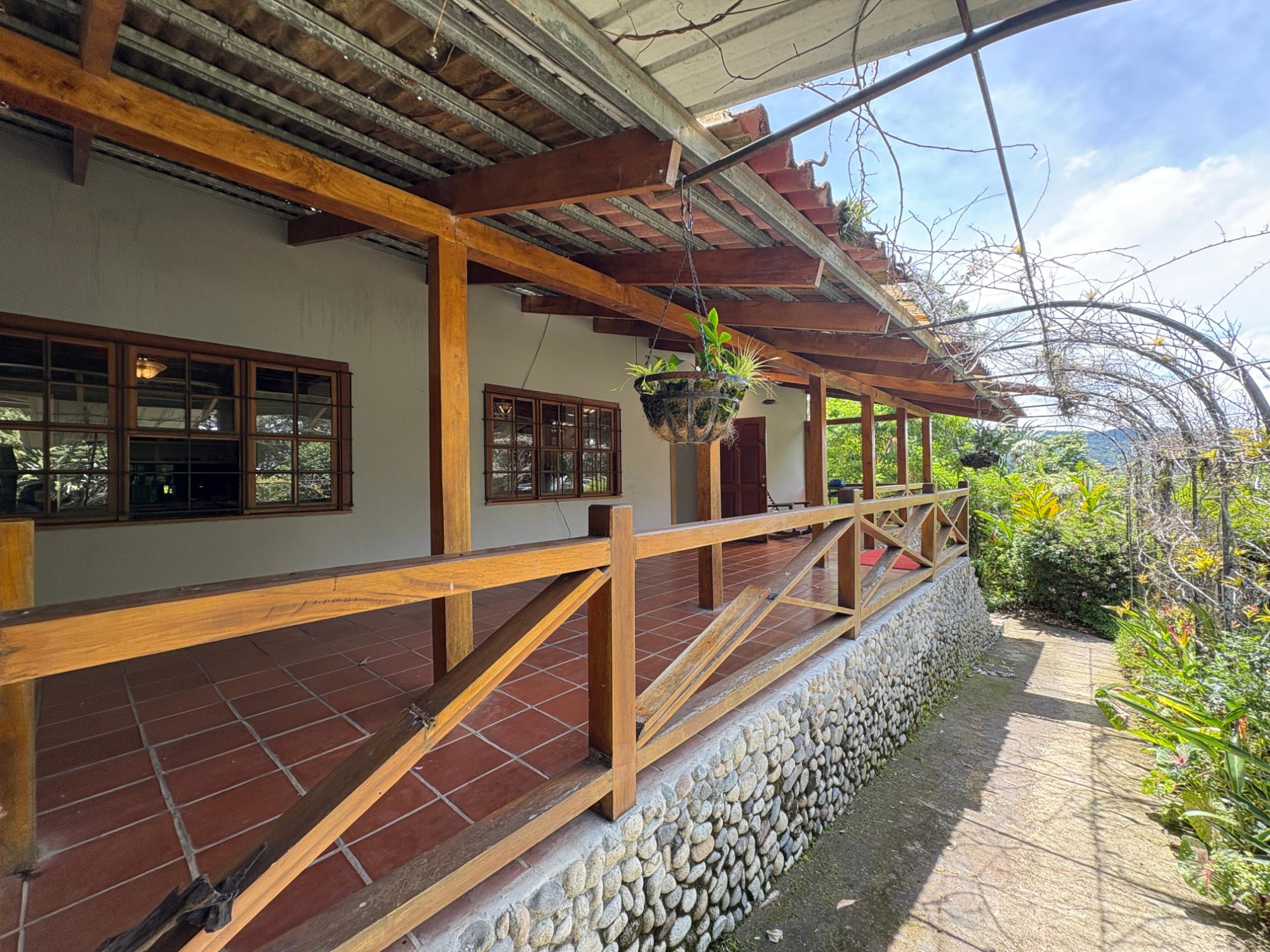 Ubicada a solo 5 minutos del centro de Boquete, esta propiedad en Volcancito presenta una oportunidad única y excepcional. El terreno, de más de 1 hectárea (15,722.6 m²), es notablemente amplio y predominantemente plano, características cada vez más difíciles de encontrar tan cerca del corazón de Boquete. La propiedad está adornada con árboles de sombra maduros, plantas ornamentales y un arroyo natural que bordea parte de la propiedad, creando un paisaje similar a un cañón en la parte trasera. Este entorno apartado, con acceso a través de una entrada privada, ofrece tanto la comodidad de estar cerca del pueblo como la rareza de una parcela tan grande y plana en esta codiciada zona. El edificio principal de la propiedad cubre 596.55 m² y se distribuye en varios niveles: Planta Baja: Consta de sala, comedor, un dormitorio, estudio, sala de reuniones y eventos, cocina, lavandería y terraza. Además, hay un apartamento de un dormitorio con baño y un baño externo. Segunda Planta: Cuenta con dos dormitorios, cada uno con su propio baño, y una zona de escalera. Sótano: Incluye un trastero y otro apartamento de un dormitorio con baño, ideal para alojar a huéspedes adicionales o al personal. Edificio de Trasteros n.º 1 (33,66 m²): Construido con techo de zinc soportado por vigas de acero galvanizado, paredes de bloque de hormigón enlucido, ventanas de madera y vidrio, suelo de cemento pulido y puertas de hierro y madera de seguridad. Edificio de Trasteros n.º 2 (67,65 m²): Construido con techo de zinc y vigas de acero galvanizado, paredes de bloque de hormigón sin enlucir, ventanas de bloque de vidrio ornamental, suelo de cemento rústico y puertas de hierro de seguridad. Rancho (18,94 m²): Una pequeña estructura con columnas redondas.Características