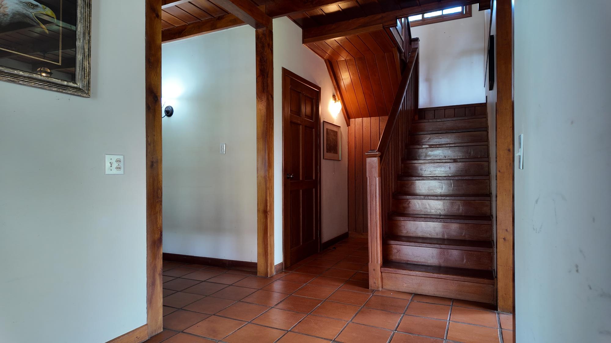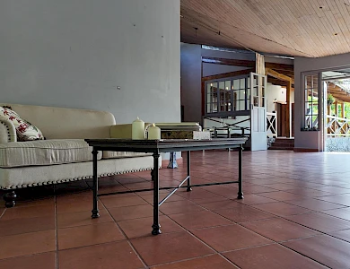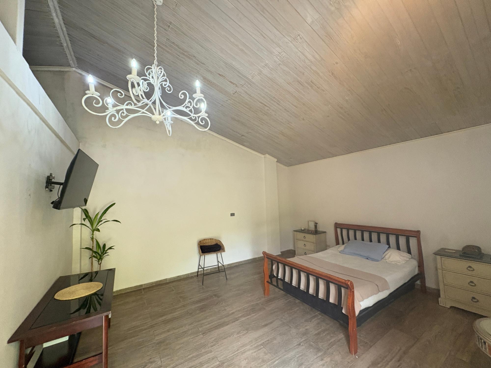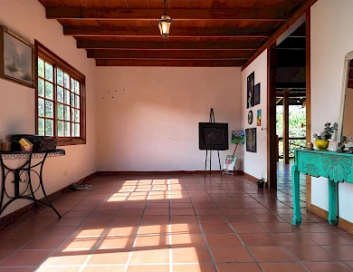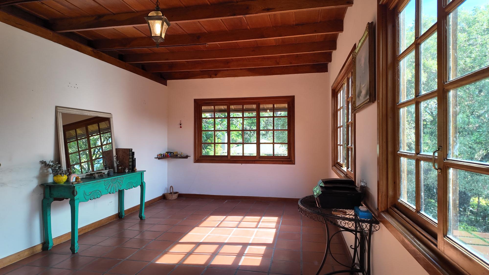 Ubicada a solo 5 minutos del centro de Boquete, esta propiedad en Volcancito presenta una oportunidad única y excepcional. El terreno, de más de 1 hectárea (15,722.6 m²), es notablemente amplio y predominantemente plano, características cada vez más difíciles de encontrar tan cerca del corazón de Boquete. La propiedad está adornada con árboles de sombra maduros, plantas ornamentales y un arroyo natural que bordea parte de la propiedad, creando un paisaje similar a un cañón en la parte trasera. Este entorno apartado, con acceso a través de una entrada privada, ofrece tanto la comodidad de estar cerca del pueblo como la rareza de una parcela tan grande y plana en esta codiciada zona. El edificio principal de la propiedad cubre 596.55 m² y se distribuye en varios niveles: Planta Baja: Consta de sala, comedor, un dormitorio, estudio, sala de reuniones y eventos, cocina, lavandería y terraza. Además, hay un apartamento de un dormitorio con baño y un baño externo. Segunda Planta: Cuenta con dos dormitorios, cada uno con su propio baño, y una zona de escalera. Sótano: Incluye un trastero y otro apartamento de un dormitorio con baño, ideal para alojar a huéspedes adicionales o al personal. Edificio de Trasteros n.º 1 (33,66 m²): Construido con techo de zinc soportado por vigas de acero galvanizado, paredes de bloque de hormigón enlucido, ventanas de madera y vidrio, suelo de cemento pulido y puertas de hierro y madera de seguridad. Edificio de Trasteros n.º 2 (67,65 m²): Construido con techo de zinc y vigas de acero galvanizado, paredes de bloque de hormigón sin enlucir, ventanas de bloque de vidrio ornamental, suelo de cemento rústico y puertas de hierro de seguridad. Rancho (18,94 m²): Una pequeña estructura con columnas redondas.Características