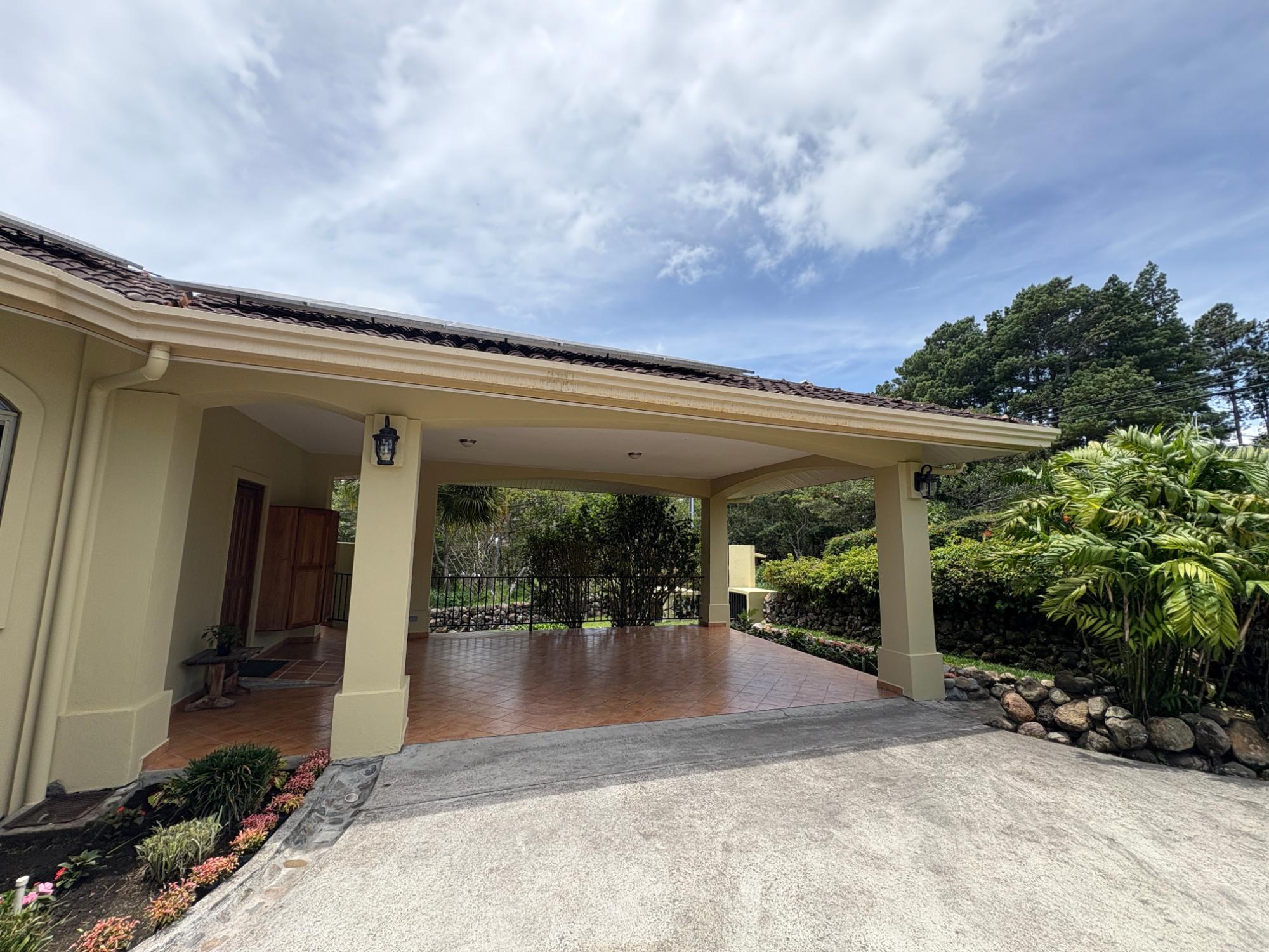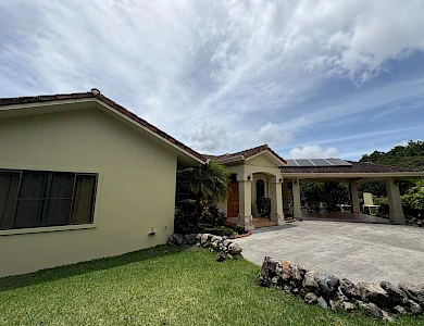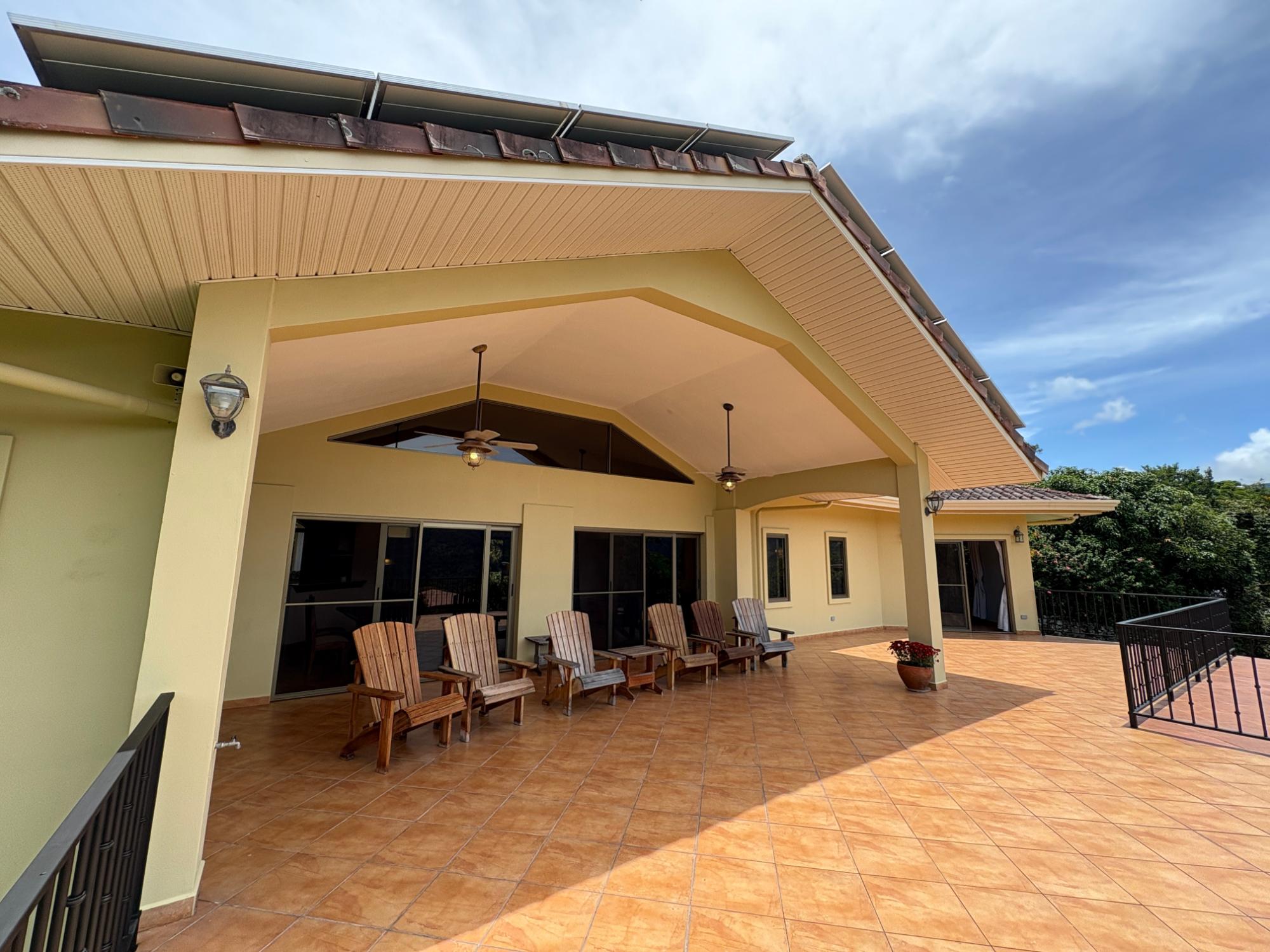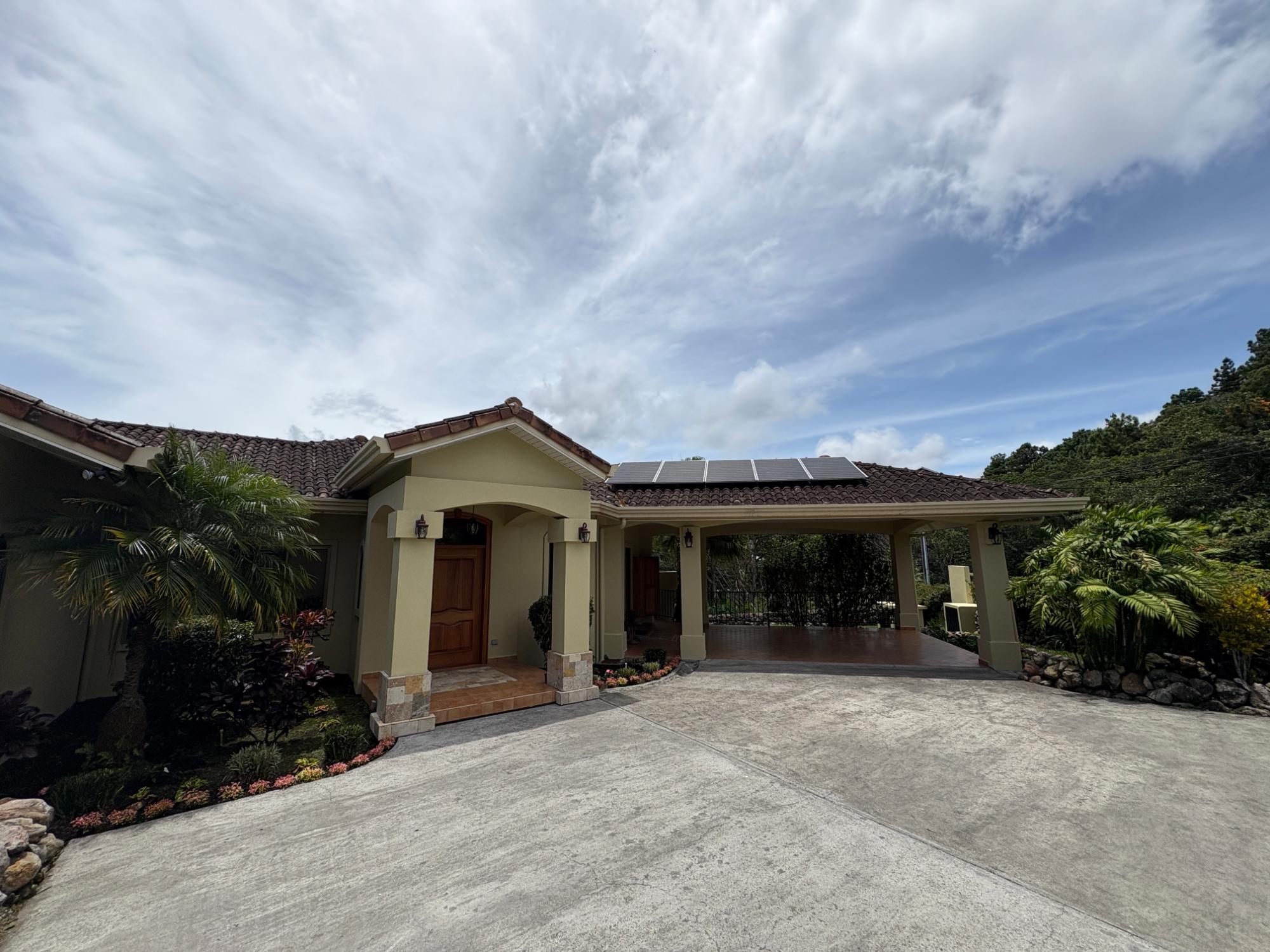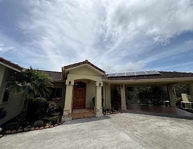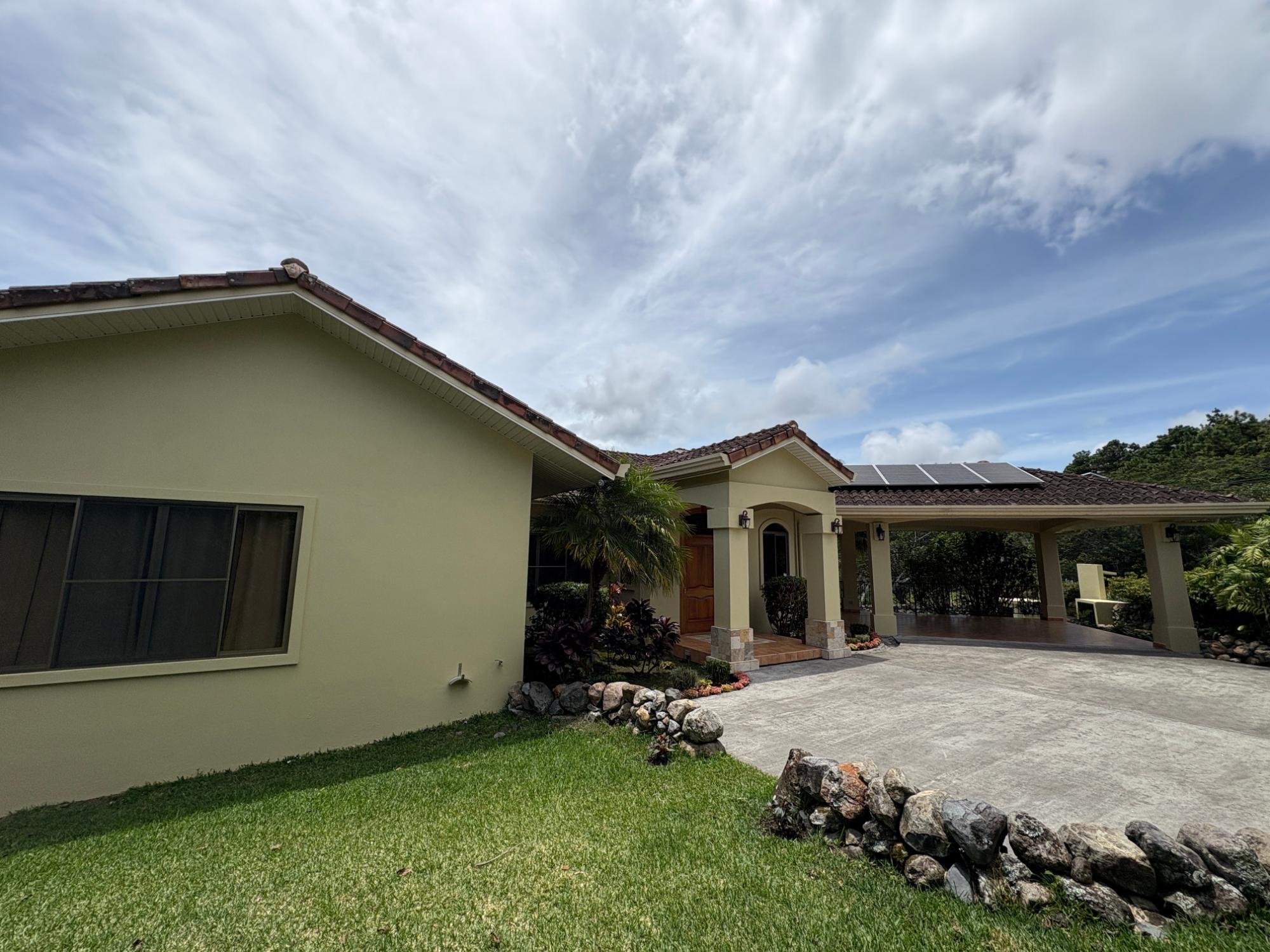 Finca con vista a la montaña, enorme terraza, casa de huéspedes, energía solar y ubicación muy deseable en venta en Volcancito, Boquete. Exención de impuestos hasta 2029. Esta inspiradora propiedad se encuentra en Urb. Los Pinos, Volcancito, a unos 10 minutos del centro de Boquete. Es una gran opción para un estilo de vida de calidad en Boquete en una ubicación excepcional. Los Pinos se considera un enclave muy deseable en un vecindario de casas de alta gama. Su microclima, accesibilidad al pueblo, ambiente y vecinos de calidad hacen de este un lugar ideal para su nuevo hogar en Boquete. Ubicada a una altitud de 1,400 metros (4,593 pies) sobre el nivel del mar, la casa se encuentra en un clima fresco y amplias vistas a las montañas en Volcancito. Volcancito es una zona muy popular de Boquete con una conveniente carretera de circunvalación, casas establecidas, fincas de café y paisajes verdes. Descripción de la propiedad Tamaño del terreno: 1,593 m² Construcción: 336.33 m² (3,620 pies cuadrados) Árboles frutales y paisajísticos: naranjos, limoneros y paisajismo decorativo Infraestructura y sistemas Sistema de paneles solares con conexión a la red Generador eléctrico de respaldo Tanque de reserva de agua Residencia principal En el exterior, los jardines y las vistas son encantadores. En el interior, la casa cuenta con una amplia sala de estar y comedor con techos altos y grandes puertas de vidrio que brindan luz natural y se abren directamente a la terraza. La vista desde la sala de estar es excepcional. La vista desde la terraza simplemente maravillosa. Uno de los aspectos más destacados de la residencia es la terraza cubierta, que extiende la sala de estar al aire libre. Este gran espacio embaldosado está diseñado para usarse durante todo el año y aprovecha al máximo las vistas panorámicas a las montañas.Características