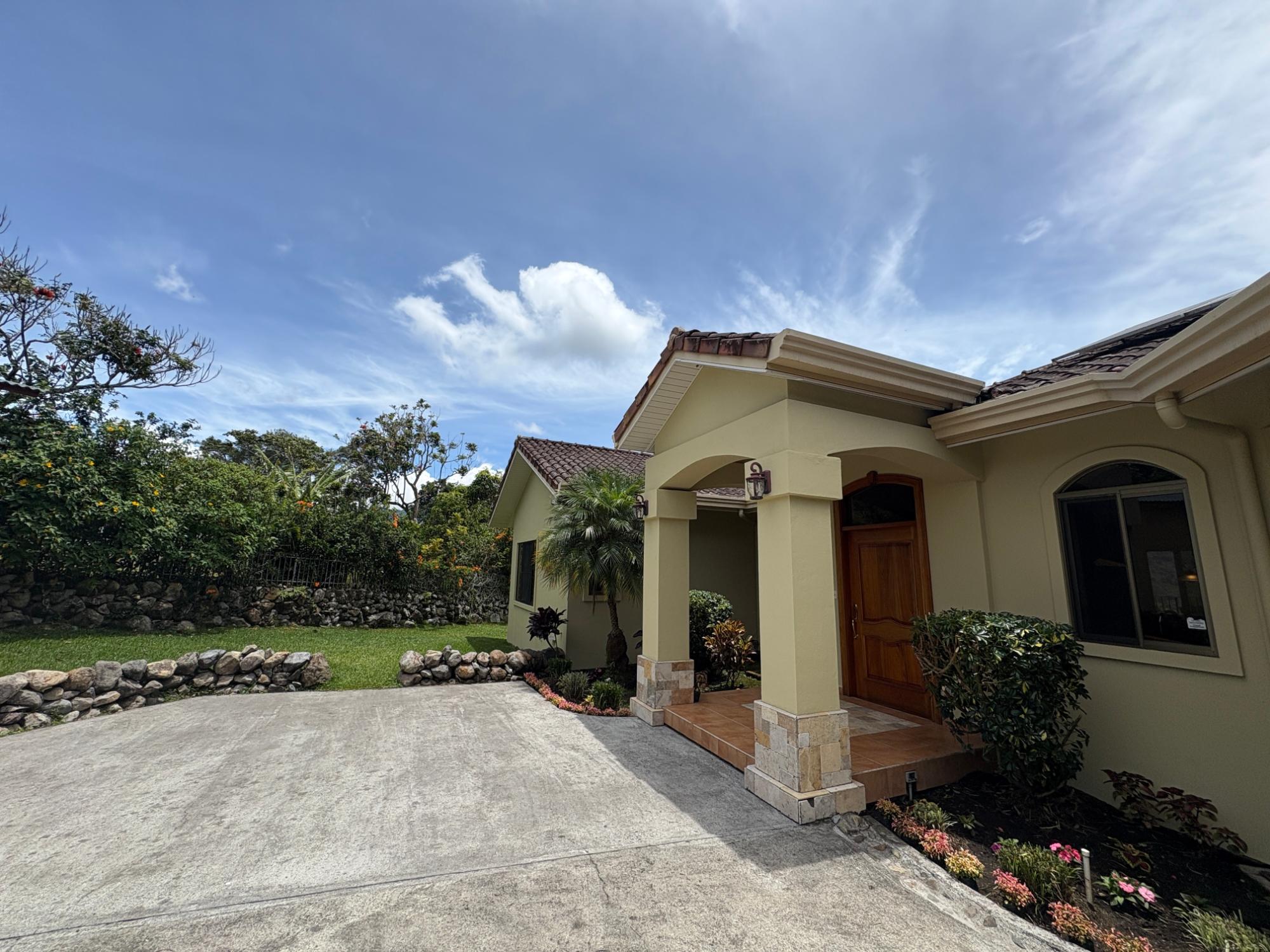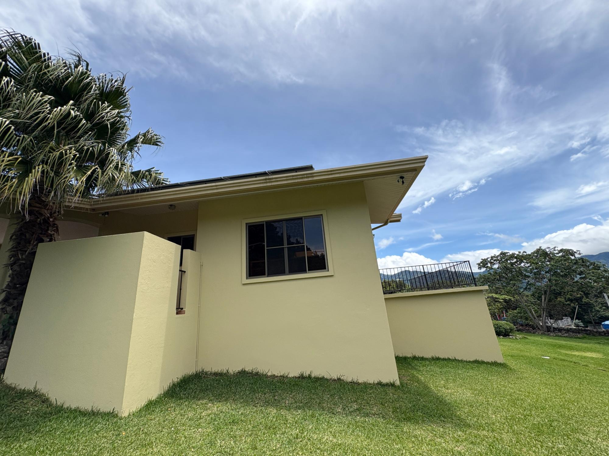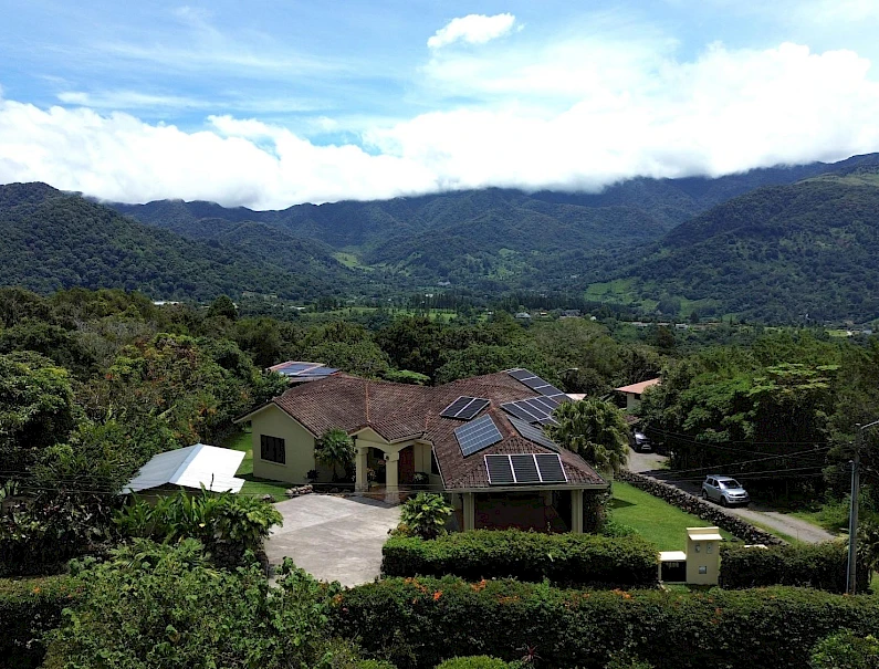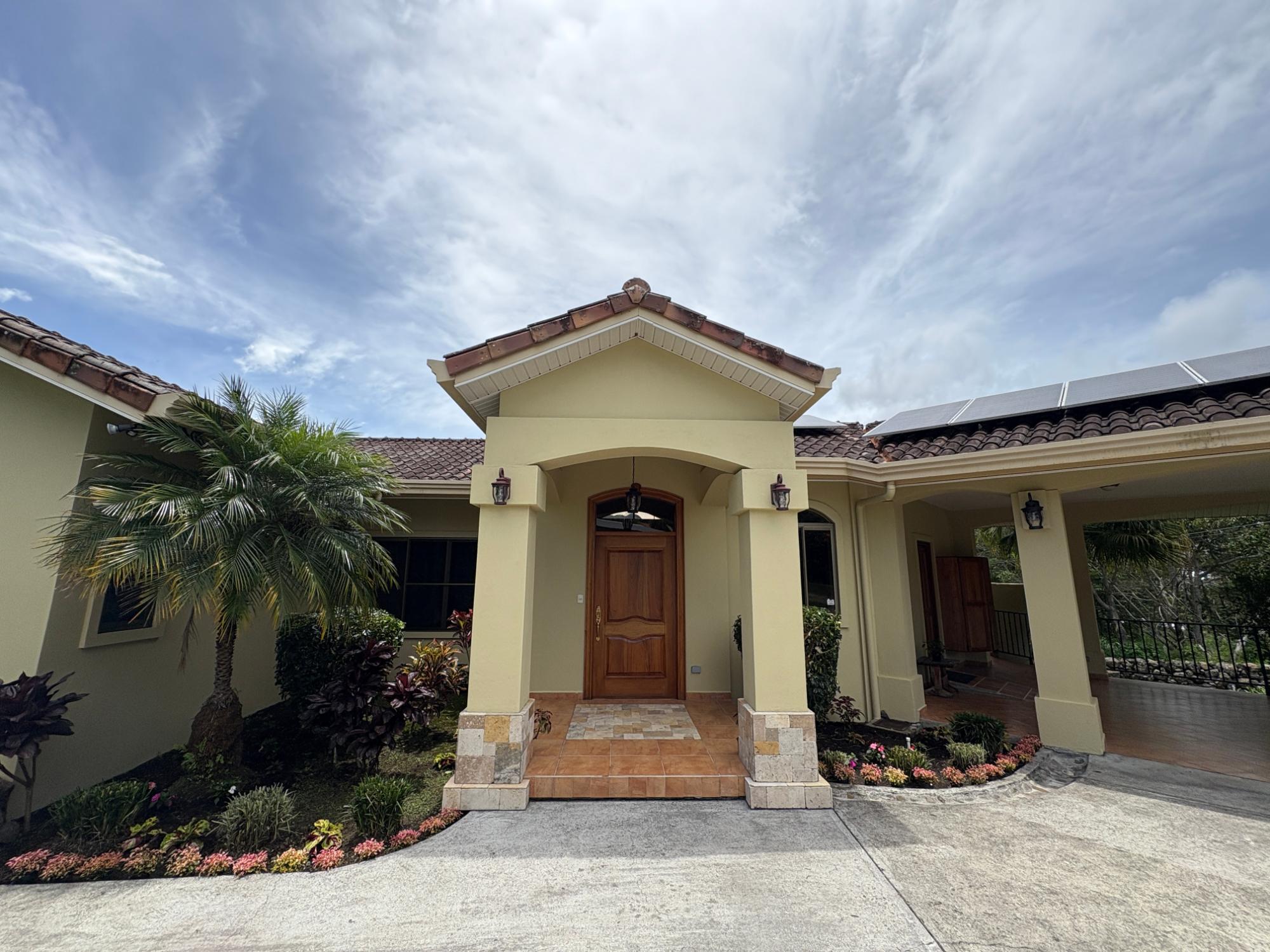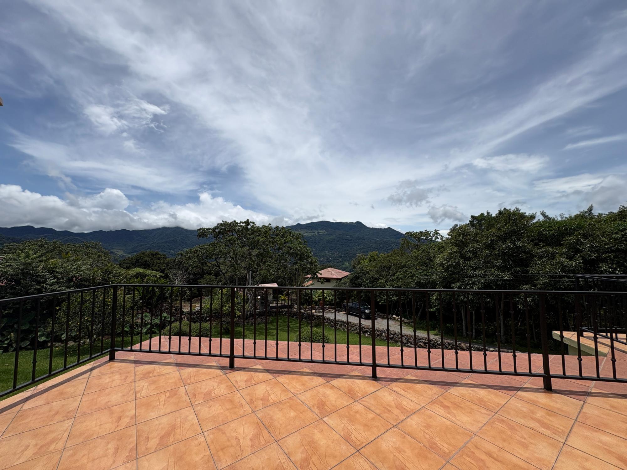 Finca con vista a la montaña, enorme terraza, casa de huéspedes, energía solar y ubicación muy deseable en venta en Volcancito, Boquete. Exención de impuestos hasta 2029. Esta inspiradora propiedad se encuentra en Urb. Los Pinos, Volcancito, a unos 10 minutos del centro de Boquete. Es una gran opción para un estilo de vida de calidad en Boquete en una ubicación excepcional. Los Pinos se considera un enclave muy deseable en un vecindario de casas de alta gama. Su microclima, accesibilidad al pueblo, ambiente y vecinos de calidad hacen de este un lugar ideal para su nuevo hogar en Boquete. Ubicada a una altitud de 1,400 metros (4,593 pies) sobre el nivel del mar, la casa se encuentra en un clima fresco y amplias vistas a las montañas en Volcancito. Volcancito es una zona muy popular de Boquete con una conveniente carretera de circunvalación, casas establecidas, fincas de café y paisajes verdes. Descripción de la propiedad Tamaño del terreno: 1,593 m² Construcción: 336.33 m² (3,620 pies cuadrados) Árboles frutales y paisajísticos: naranjos, limoneros y paisajismo decorativo Infraestructura y sistemas Sistema de paneles solares con conexión a la red Generador eléctrico de respaldo Tanque de reserva de agua Residencia principal En el exterior, los jardines y las vistas son encantadores. En el interior, la casa cuenta con una amplia sala de estar y comedor con techos altos y grandes puertas de vidrio que brindan luz natural y se abren directamente a la terraza. La vista desde la sala de estar es excepcional. La vista desde la terraza simplemente maravillosa. Uno de los aspectos más destacados de la residencia es la terraza cubierta, que extiende la sala de estar al aire libre. Este gran espacio embaldosado está diseñado para usarse durante todo el año y aprovecha al máximo las vistas panorámicas a las montañas.Características