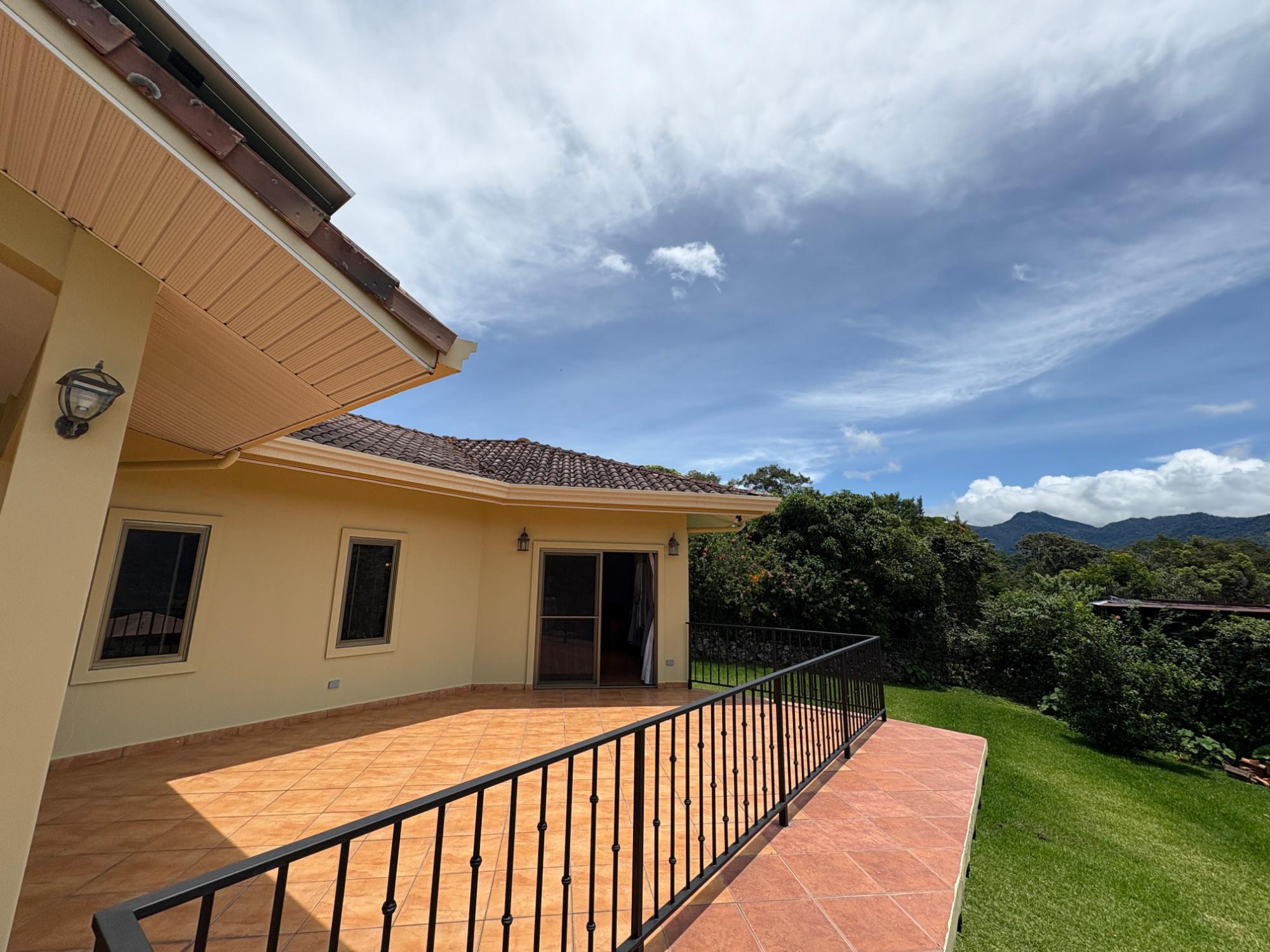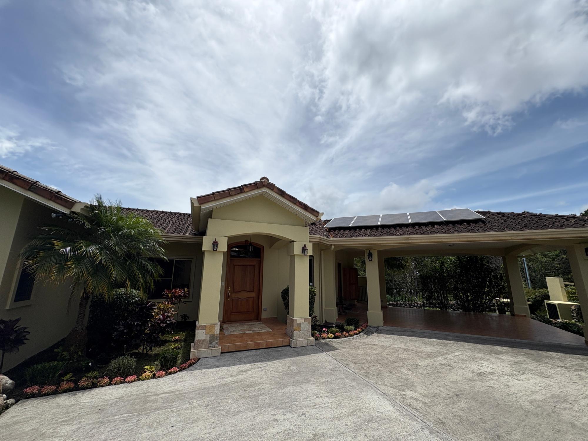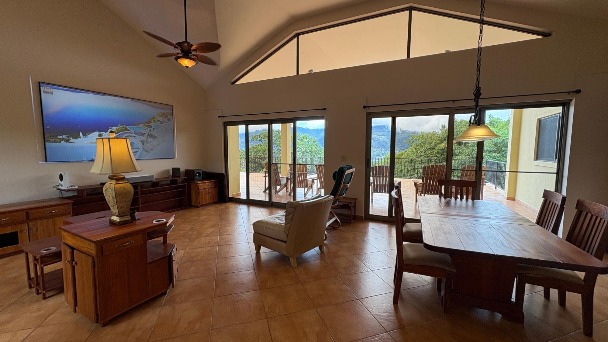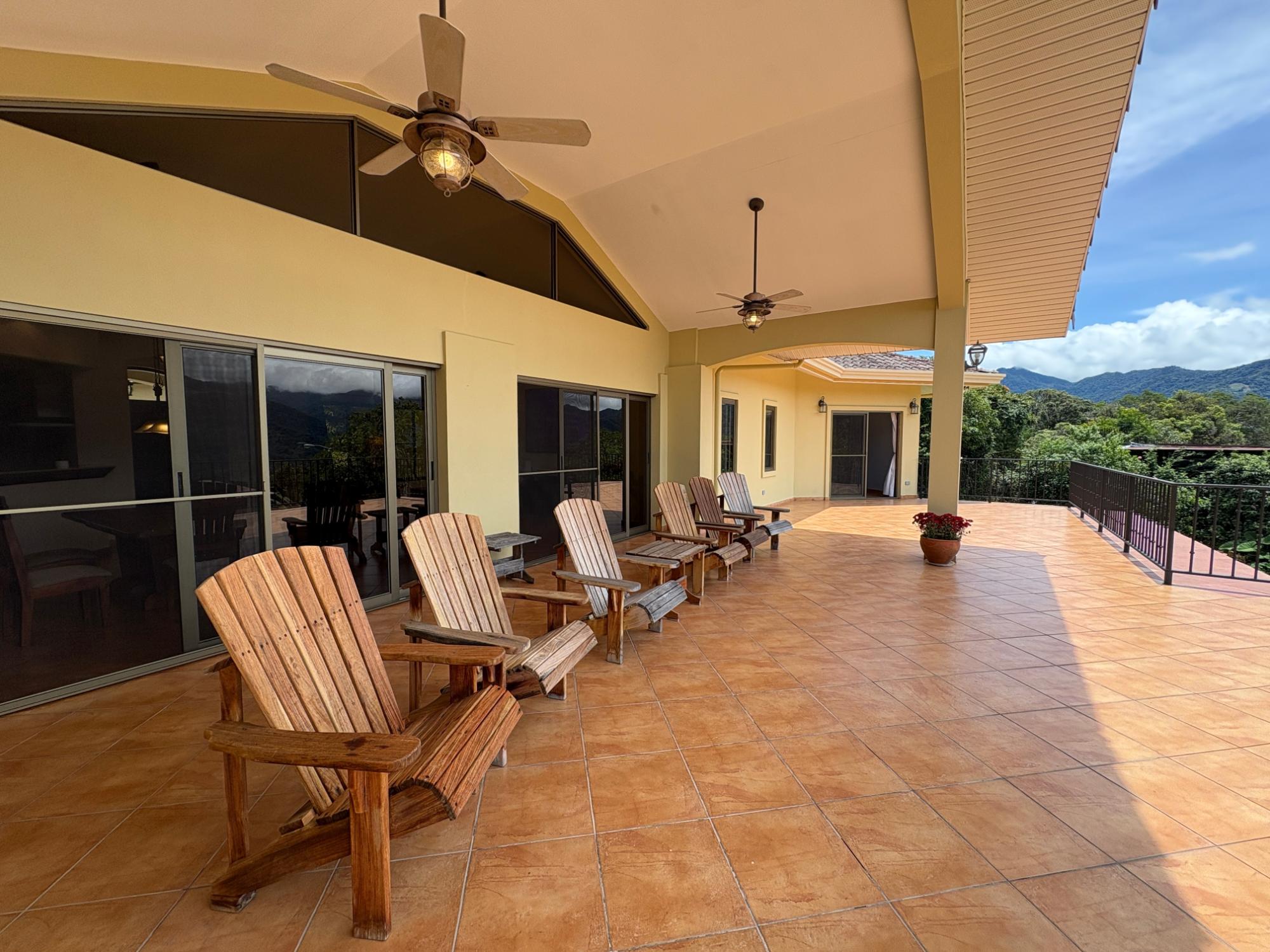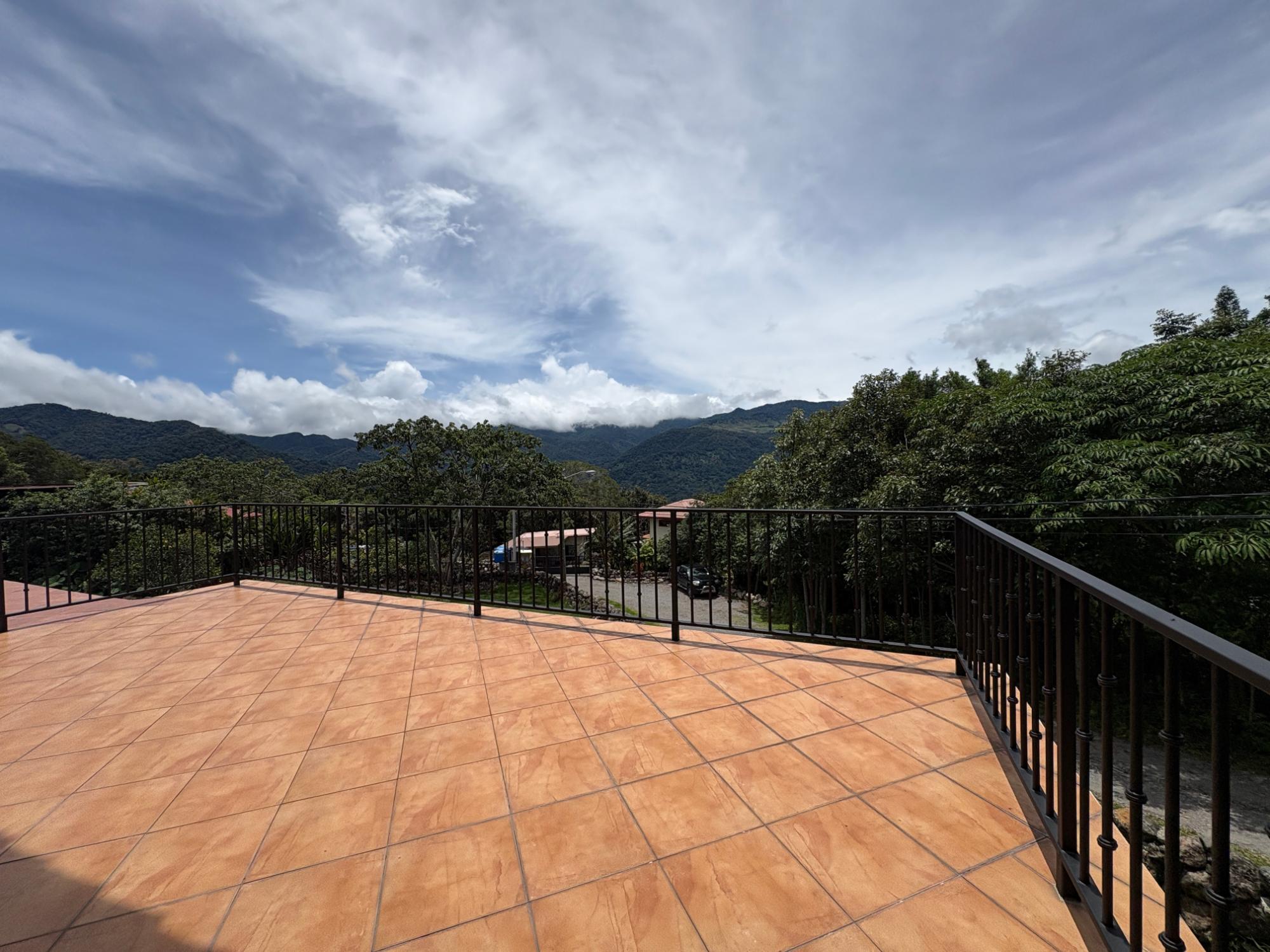 Finca con vista a la montaña, enorme terraza, casa de huéspedes, energía solar y ubicación muy deseable en venta en Volcancito, Boquete. Exención de impuestos hasta 2029. Esta inspiradora propiedad se encuentra en Urb. Los Pinos, Volcancito, a unos 10 minutos del centro de Boquete. Es una gran opción para un estilo de vida de calidad en Boquete en una ubicación excepcional. Los Pinos se considera un enclave muy deseable en un vecindario de casas de alta gama. Su microclima, accesibilidad al pueblo, ambiente y vecinos de calidad hacen de este un lugar ideal para su nuevo hogar en Boquete. Ubicada a una altitud de 1,400 metros (4,593 pies) sobre el nivel del mar, la casa se encuentra en un clima fresco y amplias vistas a las montañas en Volcancito. Volcancito es una zona muy popular de Boquete con una conveniente carretera de circunvalación, casas establecidas, fincas de café y paisajes verdes. Descripción de la propiedad Tamaño del terreno: 1,593 m² Construcción: 336.33 m² (3,620 pies cuadrados) Árboles frutales y paisajísticos: naranjos, limoneros y paisajismo decorativo Infraestructura y sistemas Sistema de paneles solares con conexión a la red Generador eléctrico de respaldo Tanque de reserva de agua Residencia principal En el exterior, los jardines y las vistas son encantadores. En el interior, la casa cuenta con una amplia sala de estar y comedor con techos altos y grandes puertas de vidrio que brindan luz natural y se abren directamente a la terraza. La vista desde la sala de estar es excepcional. La vista desde la terraza simplemente maravillosa. Uno de los aspectos más destacados de la residencia es la terraza cubierta, que extiende la sala de estar al aire libre. Este gran espacio embaldosado está diseñado para usarse durante todo el año y aprovecha al máximo las vistas panorámicas a las montañas.Características
