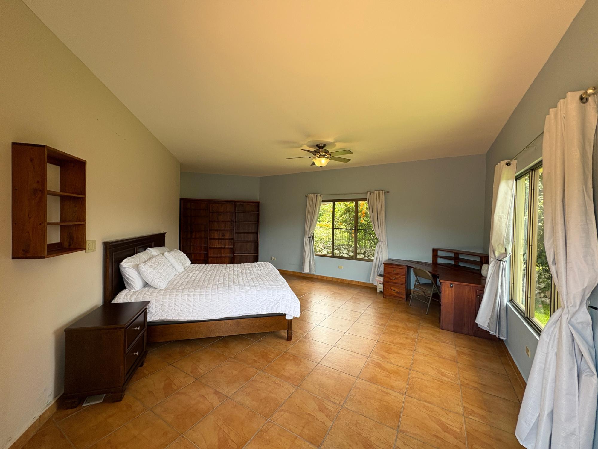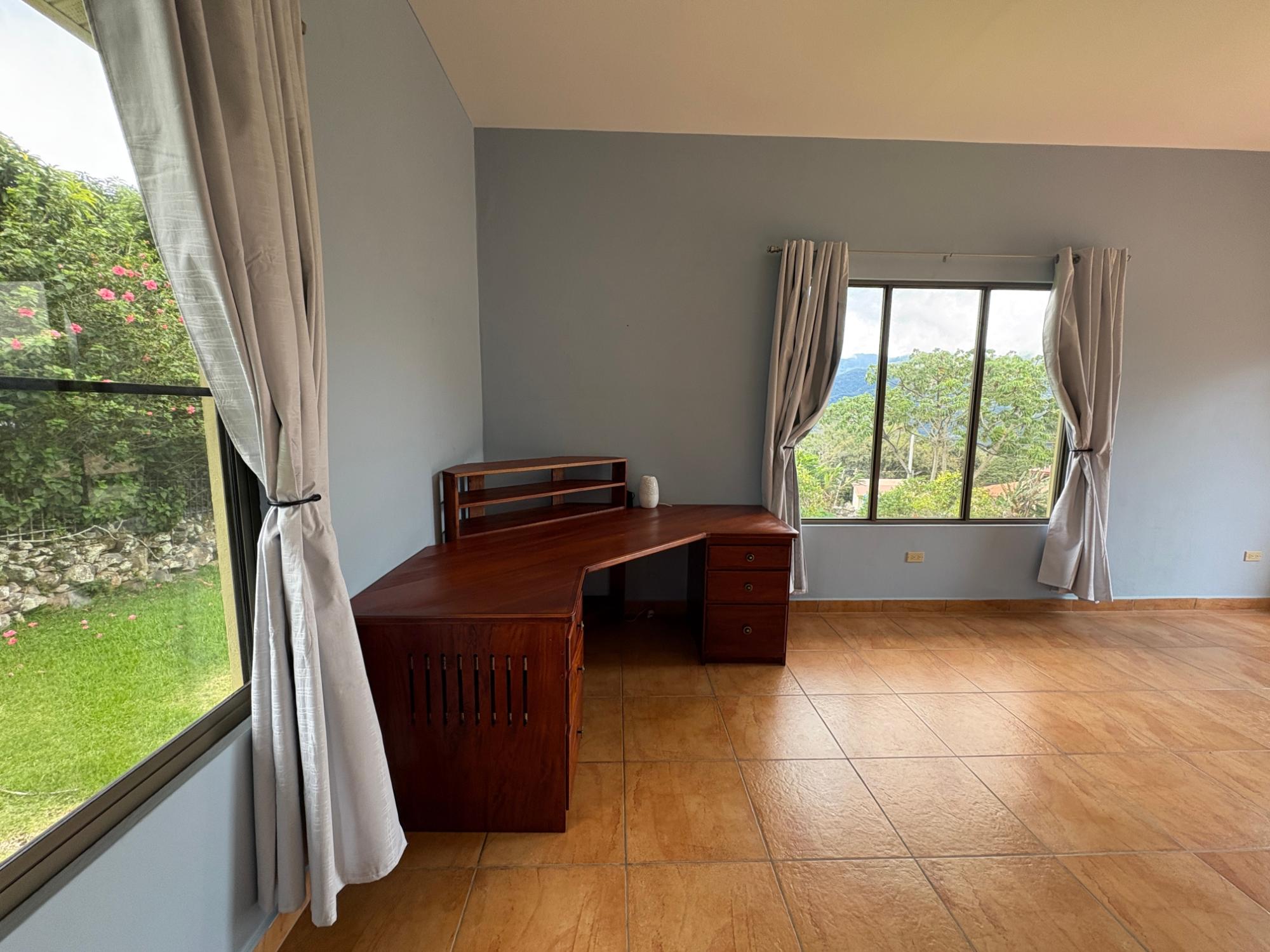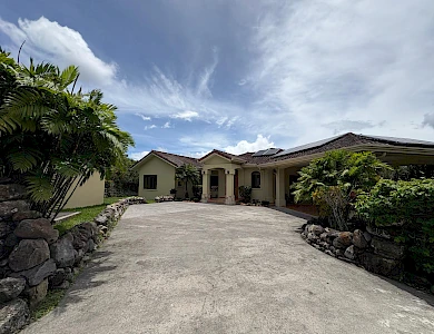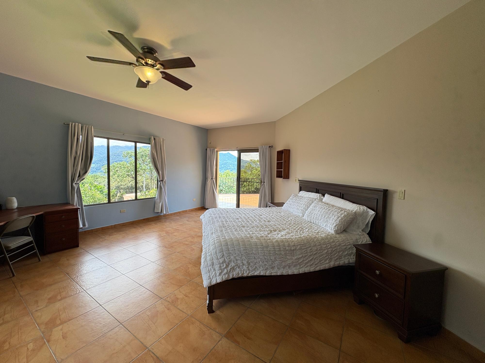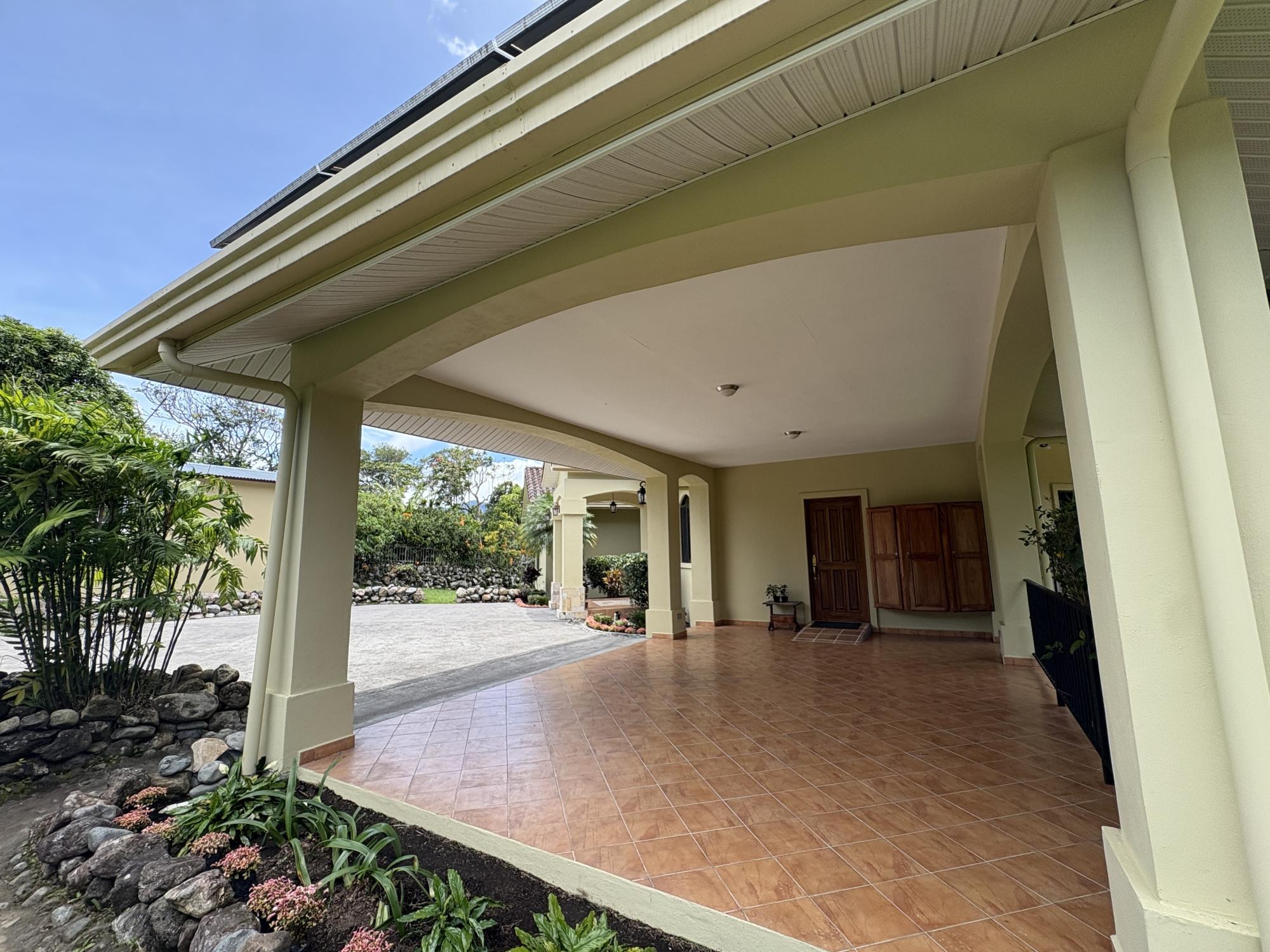 Finca con vista a la montaña, enorme terraza, casa de huéspedes, energía solar y ubicación muy deseable en venta en Volcancito, Boquete. Exención de impuestos hasta 2029. Esta inspiradora propiedad se encuentra en Urb. Los Pinos, Volcancito, a unos 10 minutos del centro de Boquete. Es una gran opción para un estilo de vida de calidad en Boquete en una ubicación excepcional. Los Pinos se considera un enclave muy deseable en un vecindario de casas de alta gama. Su microclima, accesibilidad al pueblo, ambiente y vecinos de calidad hacen de este un lugar ideal para su nuevo hogar en Boquete. Ubicada a una altitud de 1,400 metros (4,593 pies) sobre el nivel del mar, la casa se encuentra en un clima fresco y amplias vistas a las montañas en Volcancito. Volcancito es una zona muy popular de Boquete con una conveniente carretera de circunvalación, casas establecidas, fincas de café y paisajes verdes. Descripción de la propiedad Tamaño del terreno: 1,593 m² Construcción: 336.33 m² (3,620 pies cuadrados) Árboles frutales y paisajísticos: naranjos, limoneros y paisajismo decorativo Infraestructura y sistemas Sistema de paneles solares con conexión a la red Generador eléctrico de respaldo Tanque de reserva de agua Residencia principal En el exterior, los jardines y las vistas son encantadores. En el interior, la casa cuenta con una amplia sala de estar y comedor con techos altos y grandes puertas de vidrio que brindan luz natural y se abren directamente a la terraza. La vista desde la sala de estar es excepcional. La vista desde la terraza simplemente maravillosa. Uno de los aspectos más destacados de la residencia es la terraza cubierta, que extiende la sala de estar al aire libre. Este gran espacio embaldosado está diseñado para usarse durante todo el año y aprovecha al máximo las vistas panorámicas a las montañas.Características