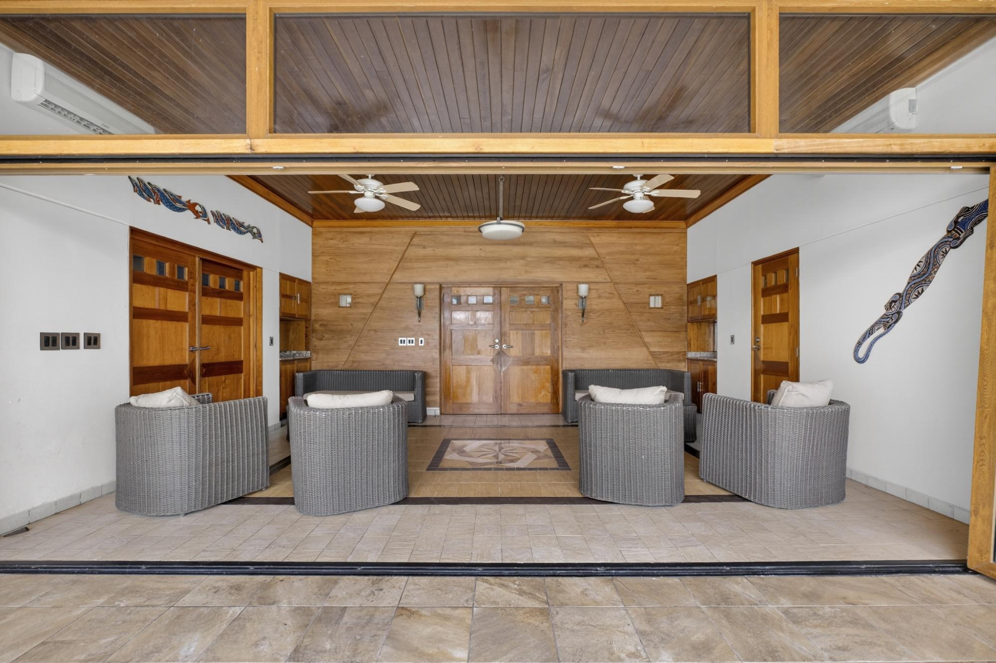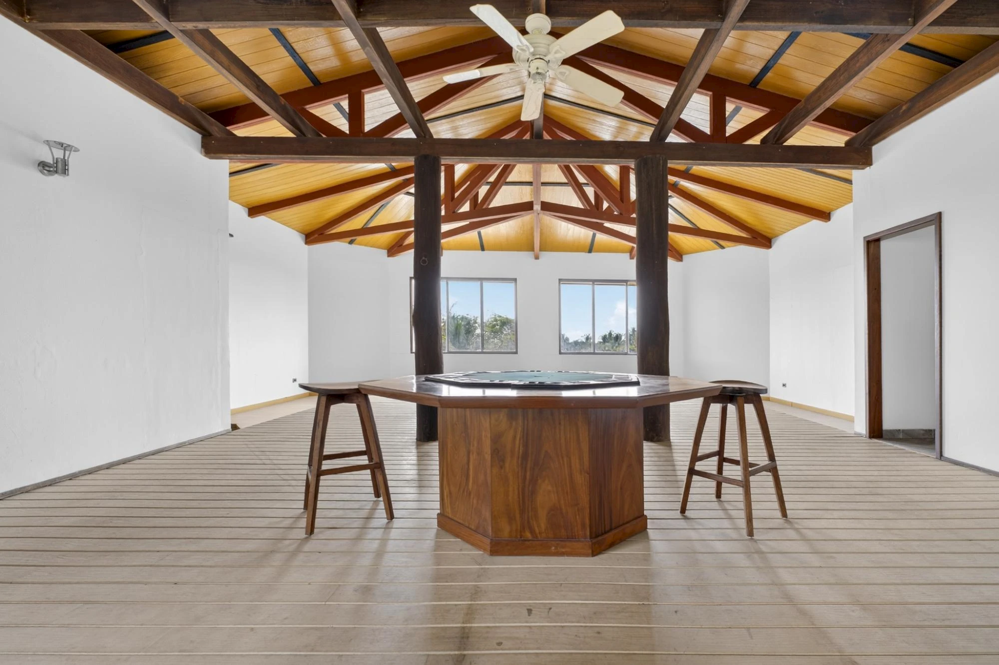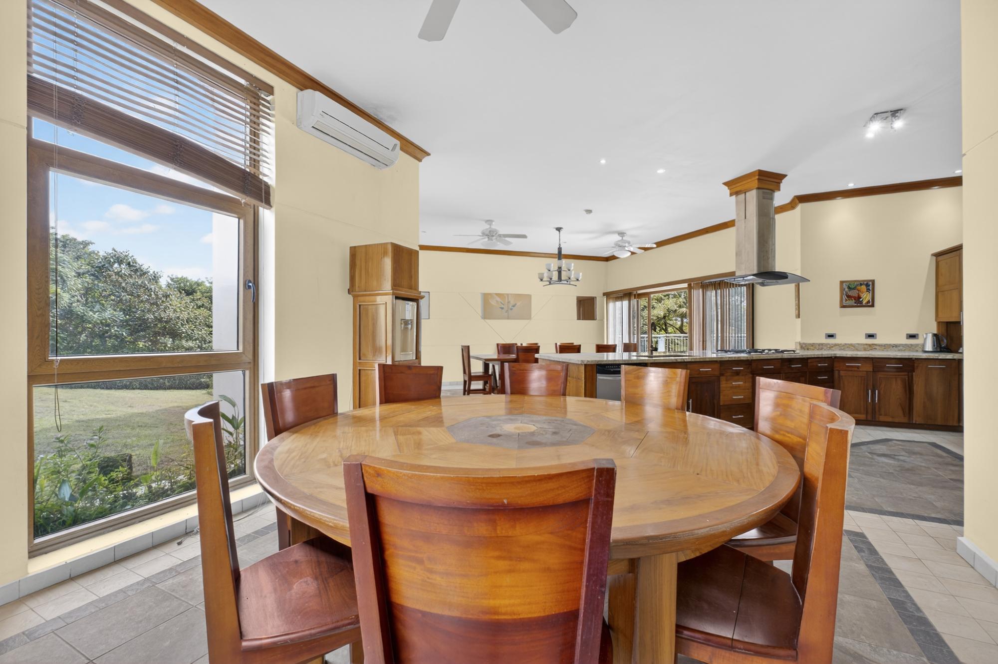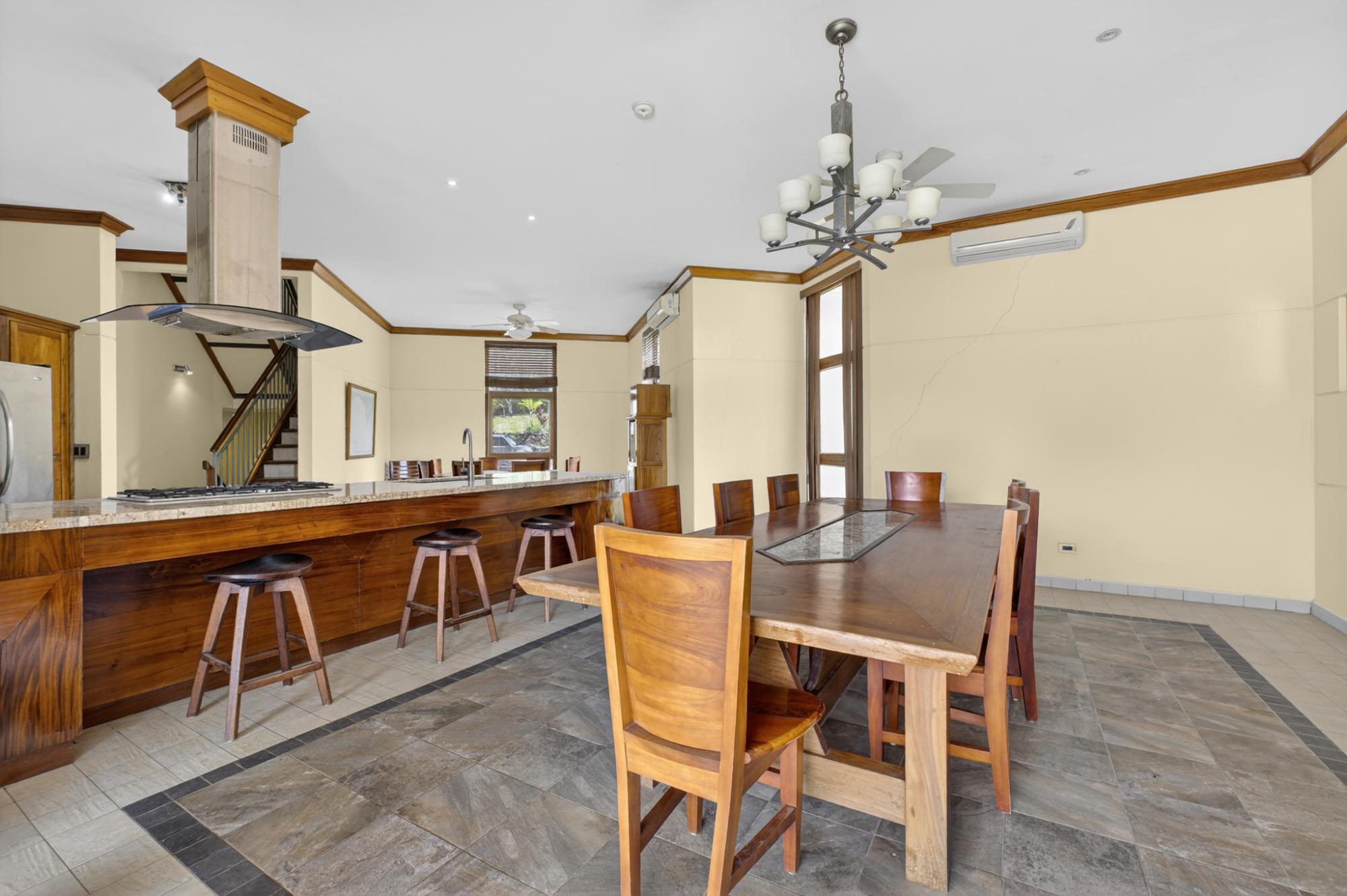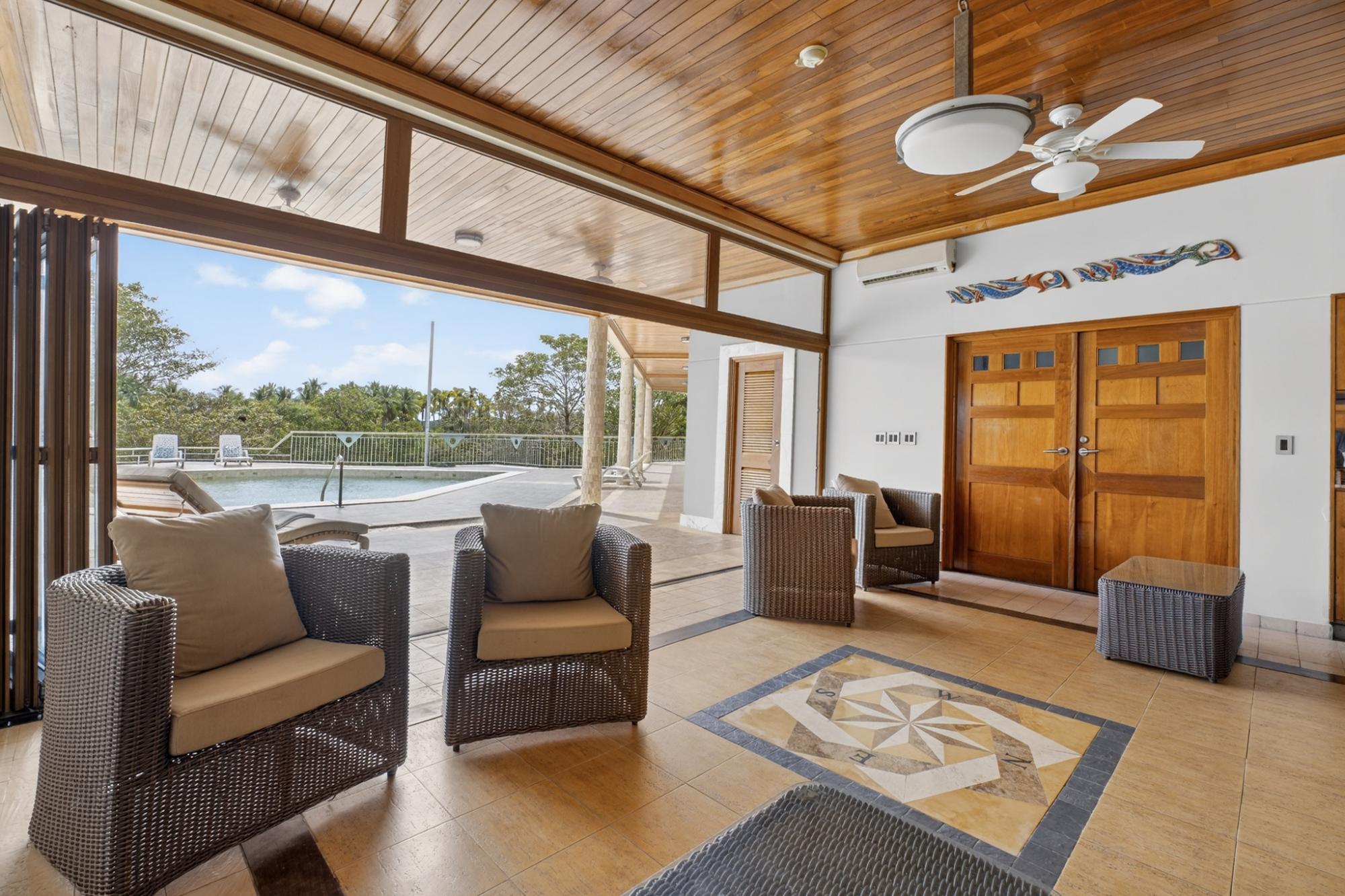 Ubicada en Hermosa Bay, Boca Chica, esta amplia propiedad de más de 840 m² se asienta sobre aproximadamente 23 000 m² de terreno privado y ofrece un excepcional potencial para hoteles boutique y resorts. La propiedad cuenta con 6 dormitorios con baño privado, además de una habitación independiente para el conserje/propietario con dormitorio, baño, lavandería y trastero. Diseñadas alrededor de una gran piscina central, las suites para huéspedes disfrutan de acceso directo a la vida al aire libre. Un gran vestíbulo al aire libre, múltiples salas de estar y pasillos cubiertos crean una distribución cohesiva de estilo resort. En la planta superior, un nivel de 225 m² con una segunda cocina ofrece el espacio ideal para un restaurante, salón o sala de juegos, mientras que una bodega en la planta baja ofrece potencial para una zona de catas privada. Otras características incluyen una sala de estar/biblioteca apta para teatro, cancha de bochas, jardines maduros y abundante privacidad, con frecuentes avistamientos de fauna, incluyendo monos aulladores. Bien construida y mantenida, la propiedad requiere una actualización selectiva y está bien ubicada cerca de paseos en bote, pesca en alta mar y excursiones a la isla, con cómodo acceso a David y su aeropuerto, y aproximadamente 1,5 horas a Boquete.Características