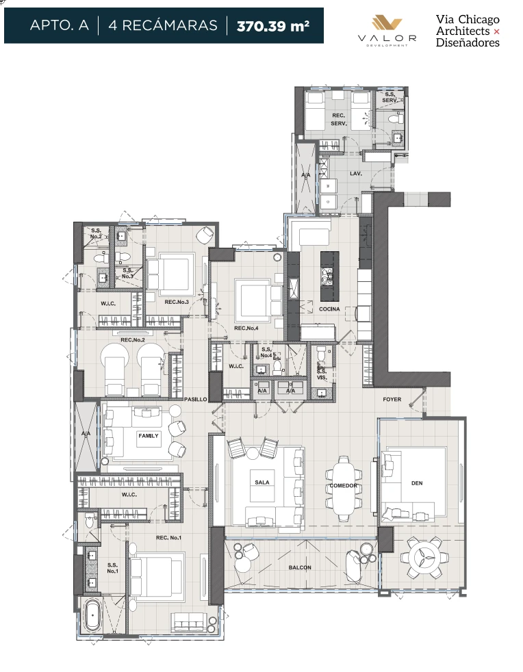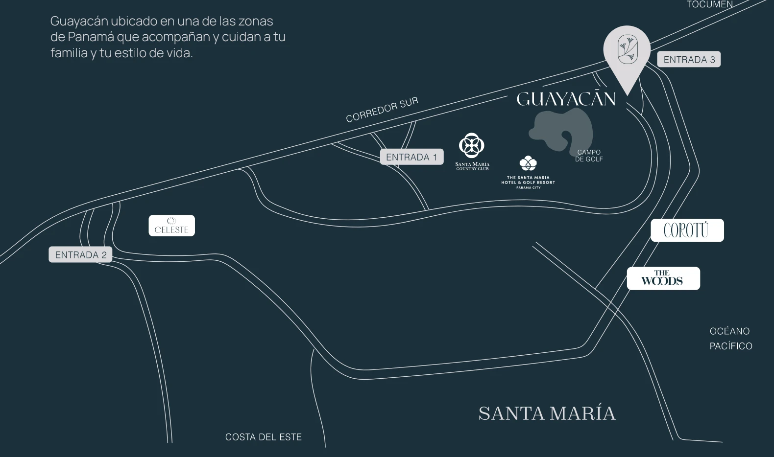 Ubicado en Santa María, Guayacán es un proyecto que propone un nuevo concepto de exclusividad, cuidando las materias primas y los detalles de cada espacio, para tener un impacto positivo en la calidad de vida de quienes eligen experimentar Santa María a través de este majestuoso proyecto. Guayacán ha sido pensado en el bienestar que ofrecen elementos como la amplitud de los espacios y la armonía con la naturaleza. La torre cuenta con apartamentos desde 370 m2, opción de 3 o 4 habitaciones, con un den, un balcón, 2 Penthouses, 3 estacionamientos, 1 depósito, cuarto de servicios, sala familiar, baño de servicio.Características