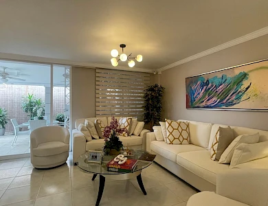 Casa Dúplex de dos niveles con terraza techada Una propiedad cómoda y bien distribuida: Primer Nivel: Sala-comedor amplia con baño de visitas, terraza techada ideal para reuniones, cocina remodelada y equipada, área de lavandería, cuarto de servicio con baño y dos puestos de estacionamiento bajo techo. Segundo Nivel: Pasillo distribuidor que conecta con tres habitaciones espaciosas, cada una con su baño. La recámara principal cuenta con walk-in closet.Características