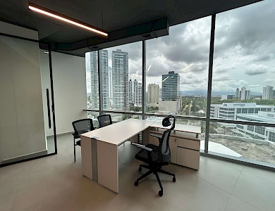 Se alquila linda oficina completamente amoblada y lista para ocupar! S encuentra ubicada en imponente torre financiera de la zona bancaria de Costa del este, a pocos pasos podrá disfrutar de restaurantes, cafeterias, bancos y rápidos accesos, ademas de la cercania de edificios residenciales. - Cuenta con 108 mtrs2 - Recepción - Espacio abierto de trabajo - 2 oficinas privadas - Cocina - 1 baño - 1 Estacionamiento, con posibilidad de alquilar mas Contáctenos para mayor información!Características