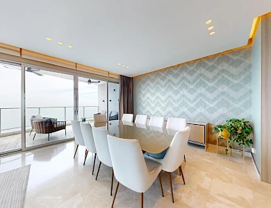 Espectacular apartamento con hermosa vista al mar, en PH Pacific Village, cuenta con la siguiente distribución. 262 mts2, 3 recamaras, 3.5 baños, sala, sala famliar, comedor, cocina, área de lavandería, cuarto y baño de servicio, amplio balcón, 2 puestos estacionamiento El edificio cuenta con area social, parque para niños, piscina, gimnasio, spa, cancha basket, cancha futbol Este proyecto esta sumamente bien ubicado muy cerca de escuelas, hospitales, centros comerciales, supermercados, marinas, muy proximo a la entrada del Corredor Sur!!! Ver Tour virtual https://my.matterport.com/show/?m=hecYvx12x5X Contáctenos para mayor informacion o agendar una cita!!! ID 13380Características