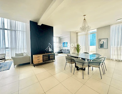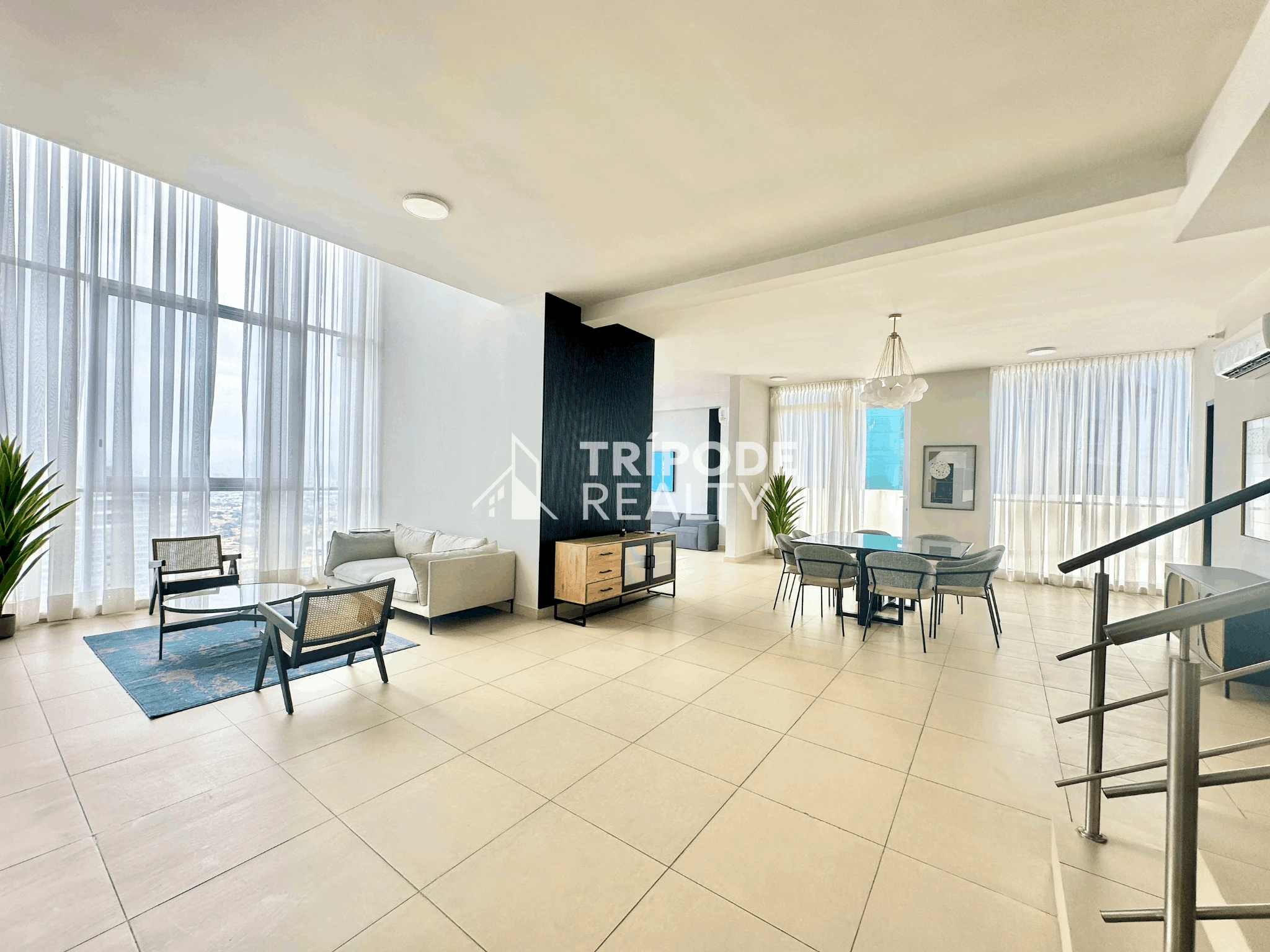 Se alquila amplio penthouse completamente amoblado y listo para ocupar! Este hermoso apartamento de amplios espacios con gran iluminacion, se encuentra ubicado en el edificio Country Club, a solo pasos del centro empresarial de costa dell este y con una excelente area social que incluye casa club. Cuenta con 326 mtrs2 2 salas con doble altura Comedor 1/2 baño de servicio Terraza Cocina Lavanderia Cuarto y baño de servicio Den familiar 3 habitaciones con baño privado 3 estacionamientos Contáctenos para mayor información! CLIENTE DIRECTOCaracterísticas