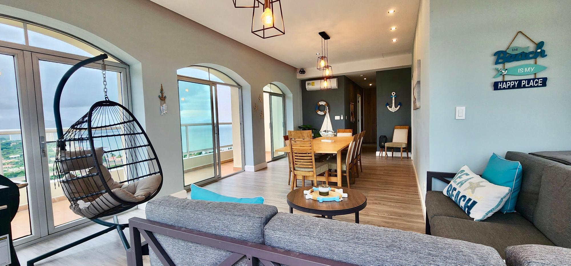 Penthouse Coronado Golf Tower, en la exclusiva comunidad de Coronado Golf & Residences. PERFECTO ESTADO TOTALMENTE AMUEBLADO Y EQUIPADO LLAVE EN MANO UBICACIÓN En la costa del Pacífico, a aproximadamente 1 hora de la ciudad, se encuentra la comunidad de Coronado Beach. Dentro de este vecindario internacional se encuentra el complejo Coronado Golf & Residences. Es un complejo muy agradable con un campo de golf de 18 hoyos, numerosas comodidades como tenis o pádel, y un club de playa muy cómodo. Coronado Golf Tower, construida en 2010, cuenta con 31 pisos, dos piscinas en la azotea, jacuzzi, gimnasio, sauna, sala de juegos y salón. Las áreas sociales están muy bien mantenidas y ofrecen impresionantes vistas al Pacífico y a las montañas circundantes. Sin duda, uno de los mejores complejos de la zona. Coronado es un balneario muy popular entre los panameños de la capital y los expatriados de todo el mundo. Aquí encontrará todo lo que necesita: restaurantes, varios campos de golf, clubes deportivos, playas para nadar, practicar surf o kitesurf, pesca deportiva y centros ecuestres. También encontrará las principales tiendas de alimentos y equipos comerciales, hospitales y clínicas privadas, veterinarios, servicios terciarios, servicios administrativos, servicios religiosos, dos cines y mucho más. Y si aún así le falta algo, la capital está a solo una hora de distancia… EL PENTHOUSE En el piso 28 del edificio, este es uno de los dos penthouses únicos de la torre. Con una superficie habitable total de 166 metros cuadrados y 48 metros cuadrados de terraza, con espectaculares vistas, este penthouse cuenta con una distribución muy agradable: • Cocina moderna totalmente equipada • Dos salas de estar, una con balcón con vista a la montaña y la otra con terraza con vista al mar • Dos comedores, uno con terraza lateral con vista al mar • Recámara principal con amplia terraza con vista al mar, baño en suite y vestidor • Oficina • Segunda recámara con balcón con vista a la montaña • Baño de visitas • Lavandería • estacionamiento. EL PROYECTO Este penthouse en Coronado Golf Tower es ideal para quienes buscan un apartamento cómodo con vistas, en el corazón de una comunidad de playa. Sin duda, ya sea para vivir de forma permanente o para una escapada de fin de semana, este lugar tiene todo lo que busca. Llámenos ahora para programar su cita.Características