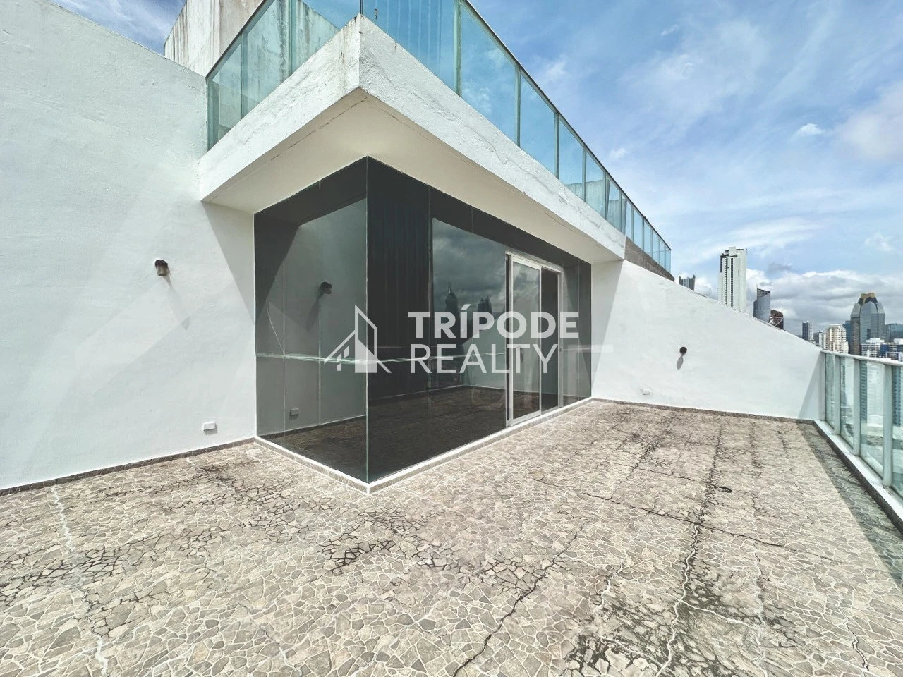 Propiedad Reposeida. Se vende Penthouse con amplia terraza y vistas al mar y a la ciudad, convenientemente ubicado en Punta Pacifica, a solo pasos del hospital Pacific Center, mall Multiplaza, restaurantes, acceso a las vias principales y al corredor sur. Cuenta con PLANTA BAJA: 117.56 mts2 Sala comedor Balcon Cocina abierta Cuarto y baño de servicio 1 habitación Estudio o habitación secundaria 1 Baño completo PLANTA ALTA: 115.21 mts2 Habitación principal Baño privado y walk in closet Terraza 2 estacionamientos Contáctenos para mayor información!Características