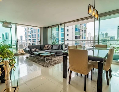 Este espacioso apartamento mide 160,75 m² y ha sido cuidadosamente diseñado para maximizar la luz natural y la comodidad de una vida moderna. Con 3 dormitorios, cada uno con su propio baño para mayor privacidad, y un total de 3,5 baños, esta casa es ideal para familias o profesionales que valoran tanto el espacio como la funcionalidad. La propiedad incluye una cocina totalmente equipada con acabados en blanco, elegantes acabados y amplio espacio de almacenamiento. La sala de estar y el comedor, de concepto abierto, se integran a la perfección, creando el ambiente perfecto para recibir invitados o disfrutar de momentos en familia. Con 2 plazas de aparcamiento privadas, la comodidad y la seguridad están garantizadas. PH Citrus es una de las torres residenciales más codiciadas de San Francisco, que combina un diseño contemporáneo con la comodidad urbana. Con una ubicación ideal en uno de los barrios más vibrantes de la Ciudad de Panamá, el edificio ofrece a sus residentes un equilibrio perfecto entre comodidad y accesibilidad. Con su arquitectura moderna, un entorno seguro y un ambiente acogedor, PH Citrus ofrece un estilo de vida que combina la energía de la ciudad con la tranquilidad residencial. Vivir en PH Citrus significa disfrutar de una amplia gama de comodidades modernas, incluyendo: Elegante vestíbulo con seguridad 24/7 Área social con piscina y solárium Gimnasio totalmente equipado Área de juegos infantiles Salón de eventos para reuniones privadas Amplio estacionamiento para visitasCaracterísticas