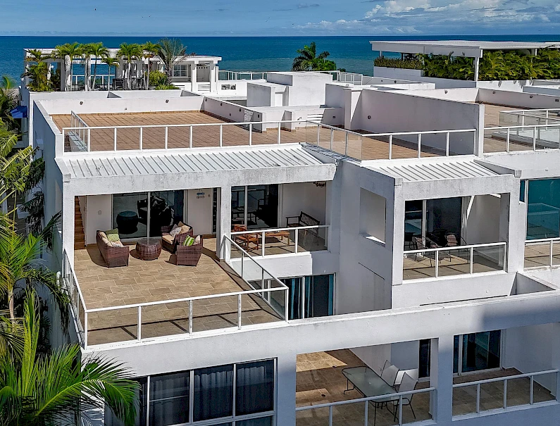 Espectacular penthouse de 3 habitaciones, 2 baños, 300 m² totalmente amoblado y listo para habitar. Cocina moderna equipada con electrodomésticos de vanguardia, barra de desayuno y amplio mostrador. Sala-comedor luminosa con puerta corrediza a terraza ampliada y techada, perfecta para disfrutar vistas serenas al mar. Dormitorio principal con balcón privado, walk-in closet espacioso y baño en suite con doble lavamanos. Rooftop versátil (opción a techar) para noches estrelladas y relajación al aire libre. Ubicado en una de las playas más hermosas del Pacífico, Playa Blanca ofrece conveniencia, hospitalidad cálida y amenidades resort: arena a pasos, elegancia frente al mar y una vida costera inigualable. Ideal para tu nuevo hogar o inversión!Características