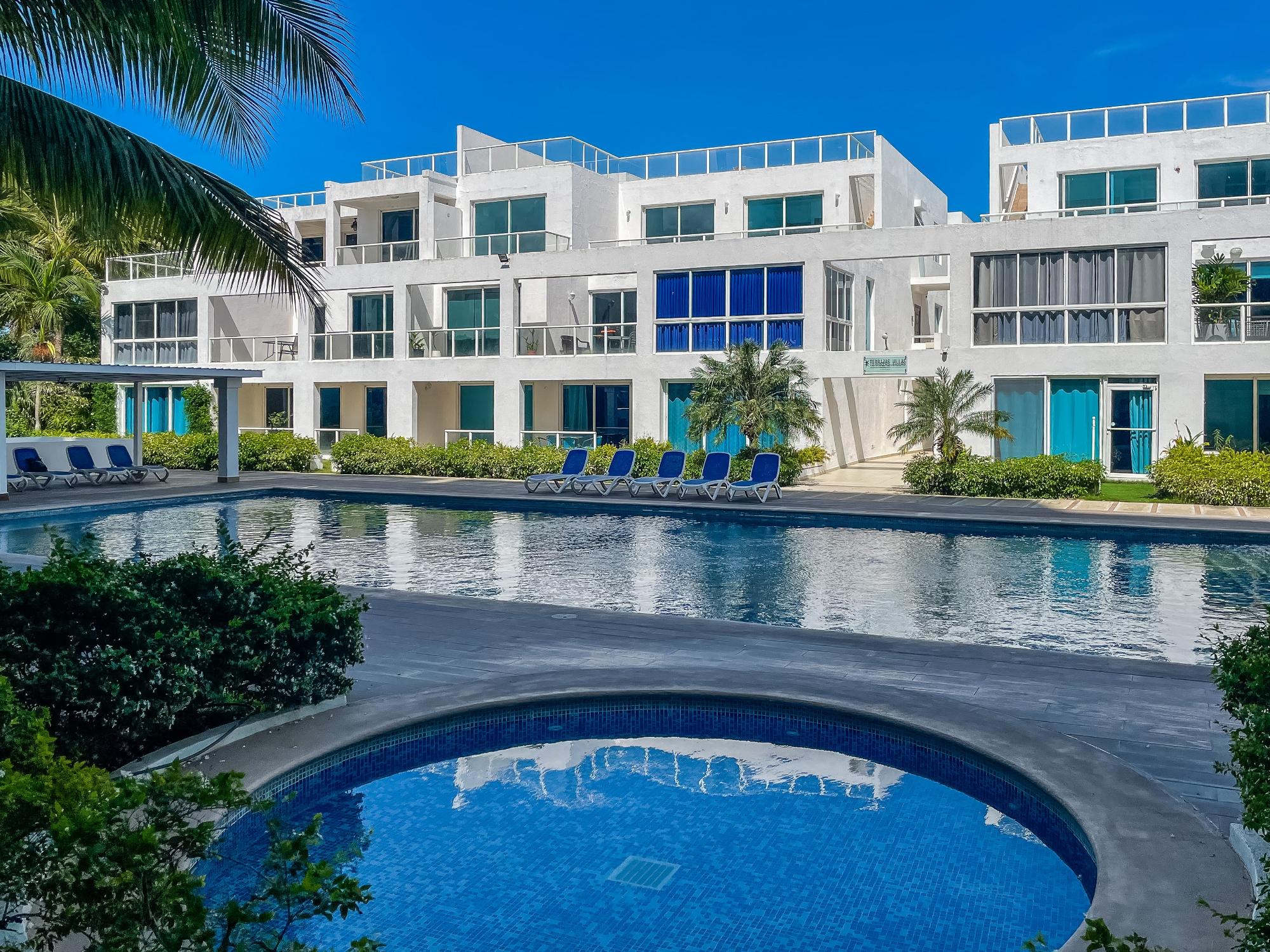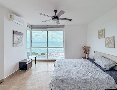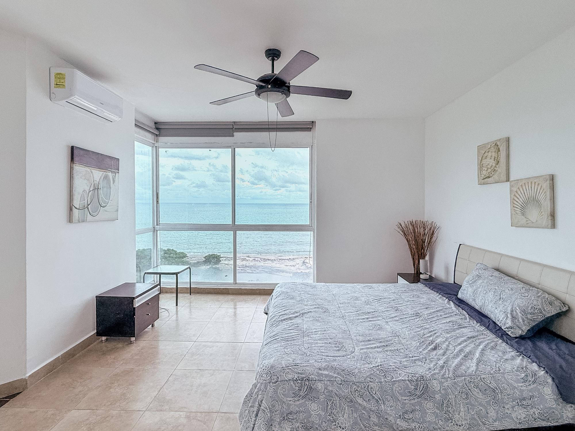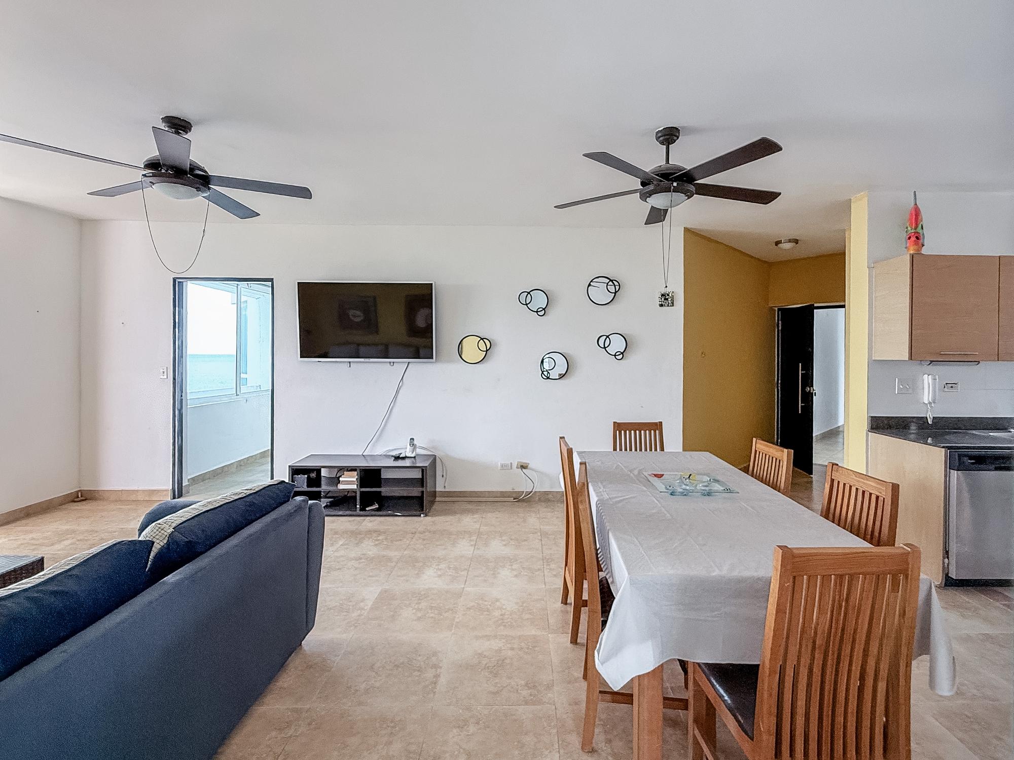 Encantador apartamento de playa frente al mar de 3 habitaciones, 2 baños, con balcón, cuarto y baño de servicio. Se vende completamente amoblado y tal como se muestra en las fotos. Disfruta de una cocina equipada con desayunador y medio baño de visitas. La recámara principal incluye walk-in closet, baño privado con dos lavamanos y aire acondicionado en todas las áreas. Las amenidades del complejo elevan la experiencia: acceso directo a playas, piscina, jacuzzi, áreas de BBQ, parque infantil, canchas deportivas, voleibol de playa, restaurante, spa, anfiteatro, deportes acuáticos y es pet friendly. No pierdas esta oportunidad de vivir junto al océano—agenda una visita hoy.Características