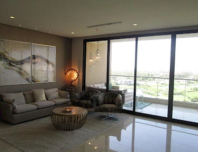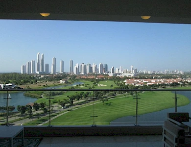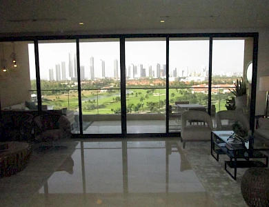 SANTA MARIA PH LA VISTA ON THE GREEN APARTAMENTO EN ALQUILER Excelente apartamento en el PH LA VISTA on the Green, ubicado en el hoyo 18 del Club de Golf de Santa María, super buena ubicación con una vista insuperable hacia los campos de golf y hacia el pacifico. Consiste en un apartamento de 304 metros, distribuido muy bien, iniciando con una gran sala con vista frontal a los campos de golf y balcón grande y amplio donde puede colocar mobiliario de exteriores. Igualmente tiene suficiente espacio para un comedor de 10 personas o mas. El área de cocona es muy acogedor con una entrada independiente para el servicio y suministros, con su linea blanca, centro de lavado y cuarto y baño de empleada. Aparte se encontrara en el área social del apto. un baño de visitas. El área de recamaras esta separada por su puerta de acceso y al entrar se encuentra un salón familiar o de TV o puede ser para un estudio. Las 3 recamaras tienen sus baños y wall in closets, la principal dirigida hacia los campos de golf con una vista fabulosa. El inmueble se maneja con Aires centrales y splits. Además de abanicos en ciertos lugares. Tiene 3 parkings Las áreas sociales del PH son excelentes, con piscina rodeada de vegetación y jardinerías, gimnasio de primera, salón de reuniones y fiestas muy atractivo, sala de juegos para niños, seguridad y conserjería, sistemas de video y seguridad digitales y otros mas. No deje de visitar este apto en alquiler. Estará disponible el primero de NOVIEMBRE DE 2025.Características
