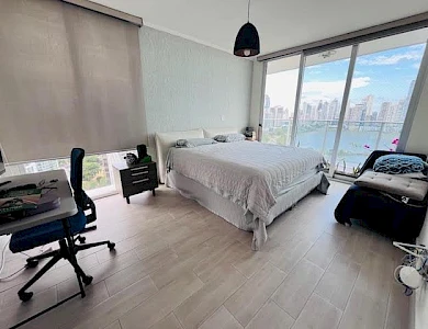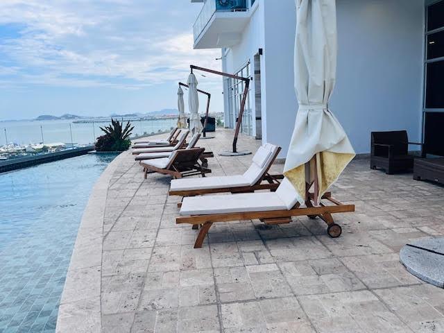 Se alquila apartamento finamente amoblado frente a la bahía. El apto de 169 mts. tiene 3 recámaras, 3 baños, sala-comedor, cocina con lavaplatos, área de lavandería, balcón, 2 estacionamientos y deposito. El edificio tiene seguridad, conserje, área social completa con piscina, jacuzzi, salón de fiesta, cto de juego para niños, cancha de tenis y cancha multiuso. El edificio se encuentra cerca del Parque Urraca y tiene cerca Bancos, Farmacias y Supermercados. Se puede mostrar los lunes, miércoles y viernes en la mañana; los jueves en la tarde y los sábado. Todas las visitas deben ser programadas con anticipación. Visítelo sin compromiso.Características
