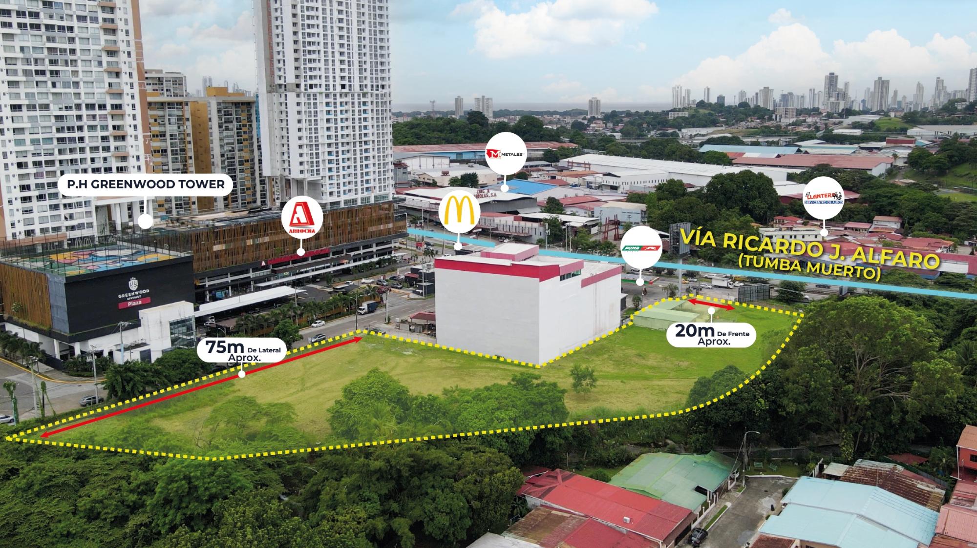 Estratégico terreno comercial ubicado sobre la Vía Ricardo J. Alfaro (Tumba Muerto), una de las principales arterias de la Ciudad de Panamá con alto flujo vehicular diario. Con aproximadamente 9,300 m² de terreno, esta propiedad representa una excelente oportunidad para desarrollo comercial, institucional o residencial mixto. Su ubicación ofrece fácil acceso a áreas como El Dorado, Betania, la Universidad Tecnológica de Panamá y el Corredor Norte, convirtiéndolo en un punto estratégico para proyectos de alto impacto urbano.Características