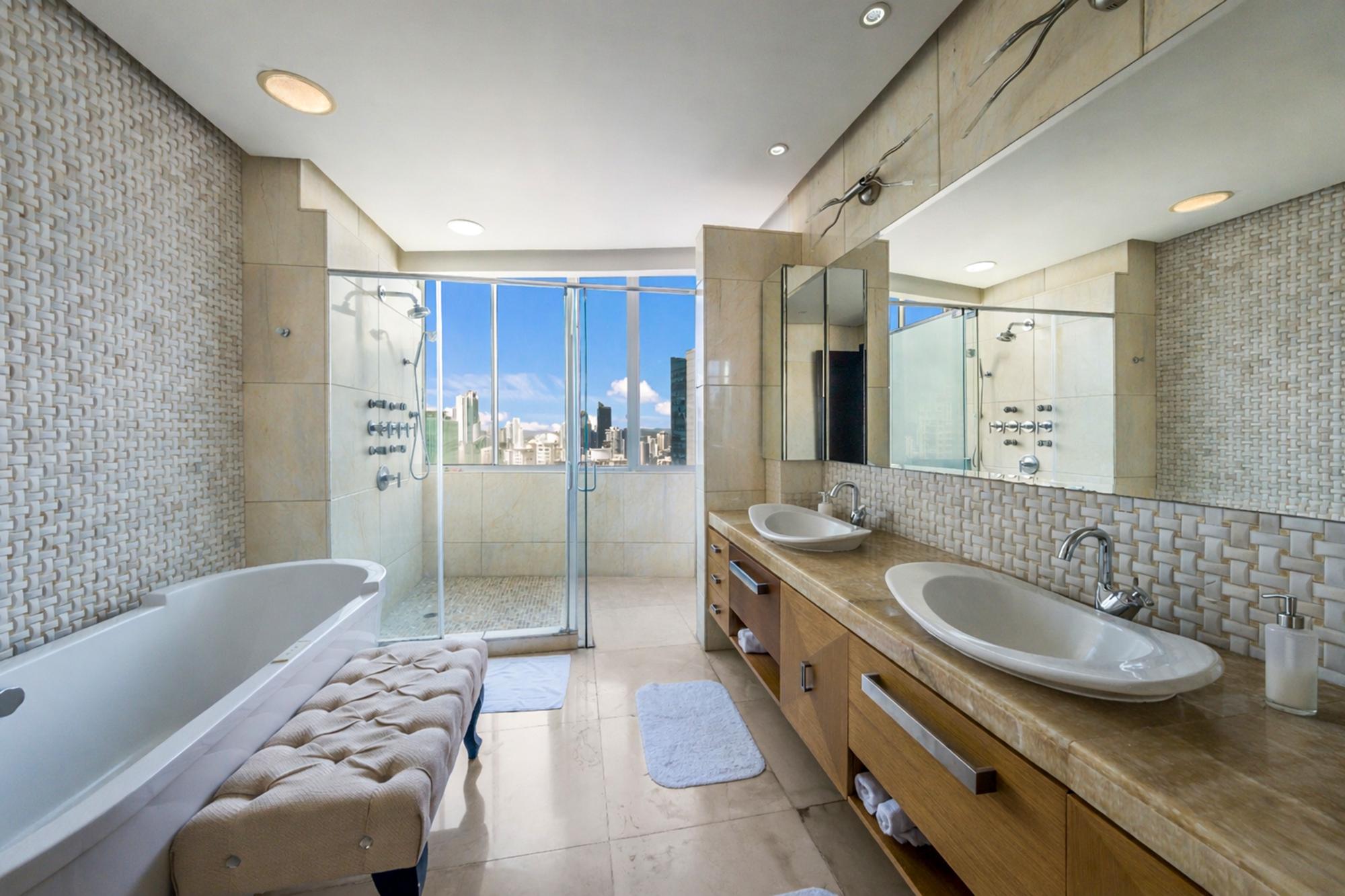 El Skyline Penthouse en Blue Bahía es un penthouse dúplex en Punta Pacífica, uno de los barrios más consolidados frente al mar de la Ciudad de Panamá. Desde su posición elevada, enmarca vistas abiertas del Pacífico y el horizonte de la ciudad, equilibrando la privacidad con el acceso inmediato a la ciudad. La residencia se distribuye en dos niveles, separando las áreas de entretenimiento de los dormitorios con claridad y propósito. La luz y la perspectiva definen la experiencia en todo momento. El nivel social principal se define por un impresionante volumen de doble altura y ventanales de piso a techo. La sala de estar es el verdadero punto de conexión, conectando el comedor directamente con el balcón en un flujo continuo. Al salir, el balcón extiende el espacio social al aire libre, manteniendo las vistas al océano y al horizonte presentes en todo momento. La cocina es espaciosa y práctica, diseñada para la vida diaria y para recibir invitados informales. Dos salas familiares independientes aportan versatilidad. Una está orientada al uso diario de la familia e incluye un área de escritorio integrada. La segunda está concebida como una sala de estar más privada para adultos y cuenta con un bar integrado para reuniones íntimas. En la planta superior, la planta privada incluye tres dormitorios secundarios, cada uno con baño y armario, además de un espacio adicional entre habitaciones para una sala de estar. La suite principal ofrece acceso directo a un balcón privado con vistas despejadas, además de vestidor y baño en suite. Diseñada para quienes valoran el espacio, la tranquilidad y una ubicación privilegiada. Contáctenos para programar una visita privada.Características