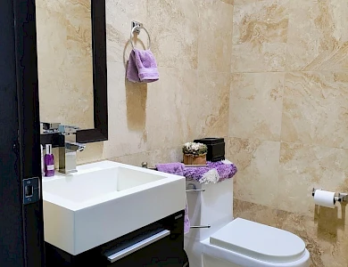 - Servicios compartidos: Acceso silla de ruedas, Area verde, Ascensor, Ascensor de servicio, Cancha de futbol, Area de juegos, Gimnasio, Piscina exterior, Seguridad privada, Estacionamiento de Visitas, Cuarto de Juegos, Sala de Fiestas