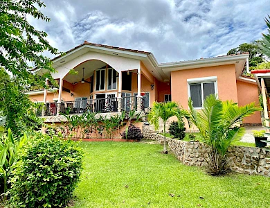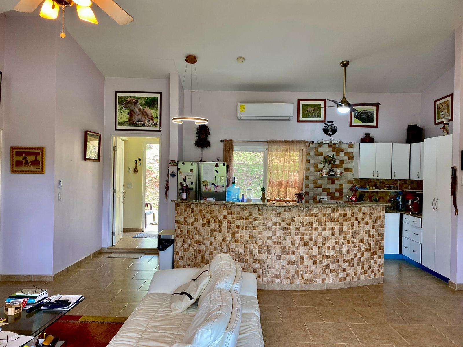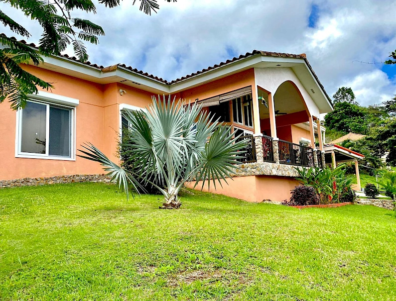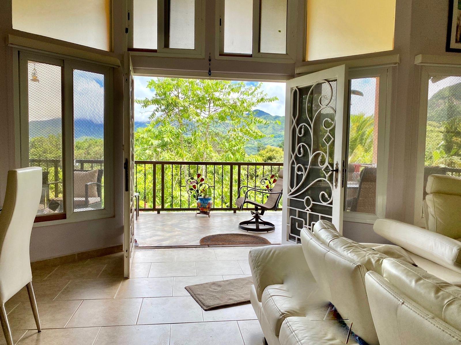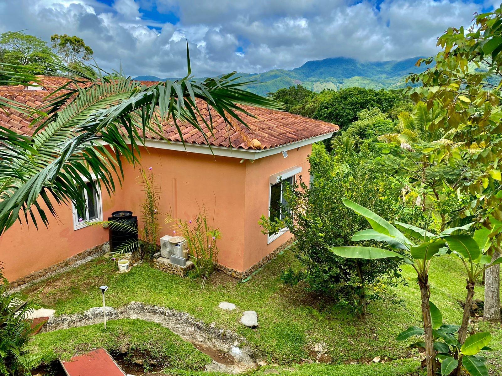 ¡Presentamos tu Refugio Paradisíaco en la Montaña! Descubre tu propio rincón del paraíso en el prestigioso desarrollo Trinity Hills con esta exquisita casa de 3 habitaciones y 2.5 baños, que incluye una sala de almacenamiento adicional. Construida en 2015, esta propiedad ofrece 210 metros cuadrados de lujoso espacio habitable enclavado en una parcela de 2,600 metros cuadrados de terreno. Al entrar, lo primero que notarás es la impresionante terraza de 30 metros cuadrados, que ofrece impresionantes vistas de las icónicas montañas de Trinity Hills. Imagina comenzar tu día con una taza de café o terminarlo con una copa de vino mientras disfrutas de estas majestuosas vistas. Esta casa está diseñada tanto para la comodidad como para la seguridad. Persianas eléctricas de estilo europeo adornan la mayoría de las ventanas, mientras que las amplias ventanas en la sala de estar y el comedor inundan el espacio con luz natural, al tiempo que te brindan vistas inigualables de la belleza circundante. Elevada a unos cómodos 300 metros sobre el nivel del mar, esta residencia en la montaña ofrece un refugio refrescante de las temperaturas costeras. Disfruta de la brisa fresca y la tranquilidad mientras te sumerges en la paz de tu entorno. Para el lado práctico de la vida, encontrarás dos cobertizos al aire libre adjuntos a la casa, que brindan un amplio espacio de almacenamiento para herramientas y equipo de jardinería. La propiedad también cuenta con un generador de respaldo confiable para garantizar una electricidad ininterrumpida y un sistema de agua de respaldo alimentado por gravedad de 300 galones para asegurarte de que nunca te quedes sin agua. Los amantes de la naturaleza y los jardineros disfrutarán de la diversa variedad de árboles frutales que adornan los terrenos. Desde árboles de mango y plátano hasta guayaba cubana, granada dorada caribeña, guanábana, carambola, noni, mandarina y plátanos, tendrás tu propio huerto para disfrutar. La conveniencia está al alcance de tu mano con tiendas locales del pueblo a sólo 5 minutos en coche. Para una experiencia de compras más amplia, Costa Verde está a solo 35 minutos en coche, ofreciendo una variedad de opciones de compras al estilo estadounidense. La atención médica es fácilmente accesible, con médicos generales y farmacias a sólo 15 minutos de distancia. !No te pierdas la oportunidad de convertirlo en tu propio paraíso privado. ¡Programa una visita hoy mismo y comienza a vivir el sueño de la montaña!Características
