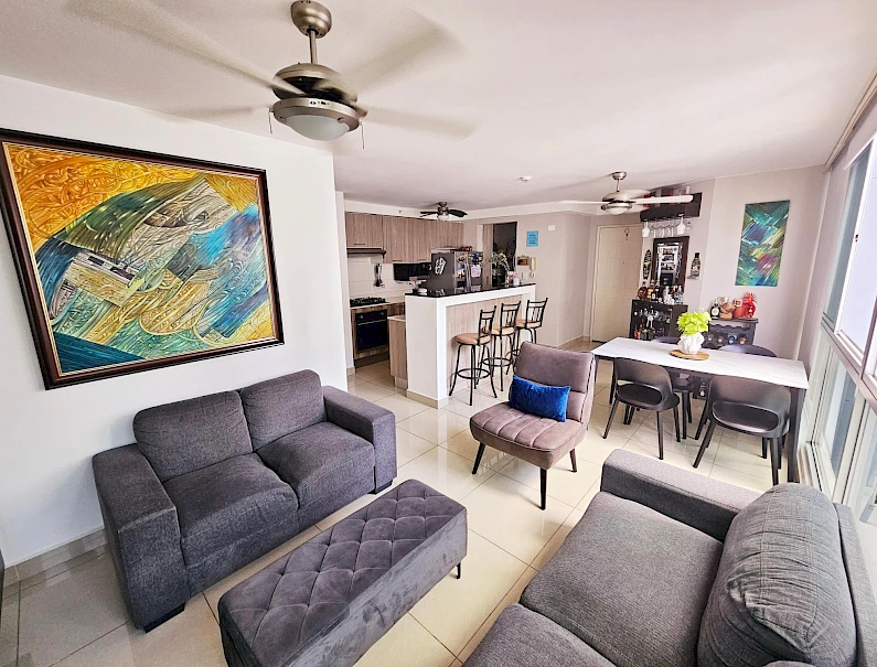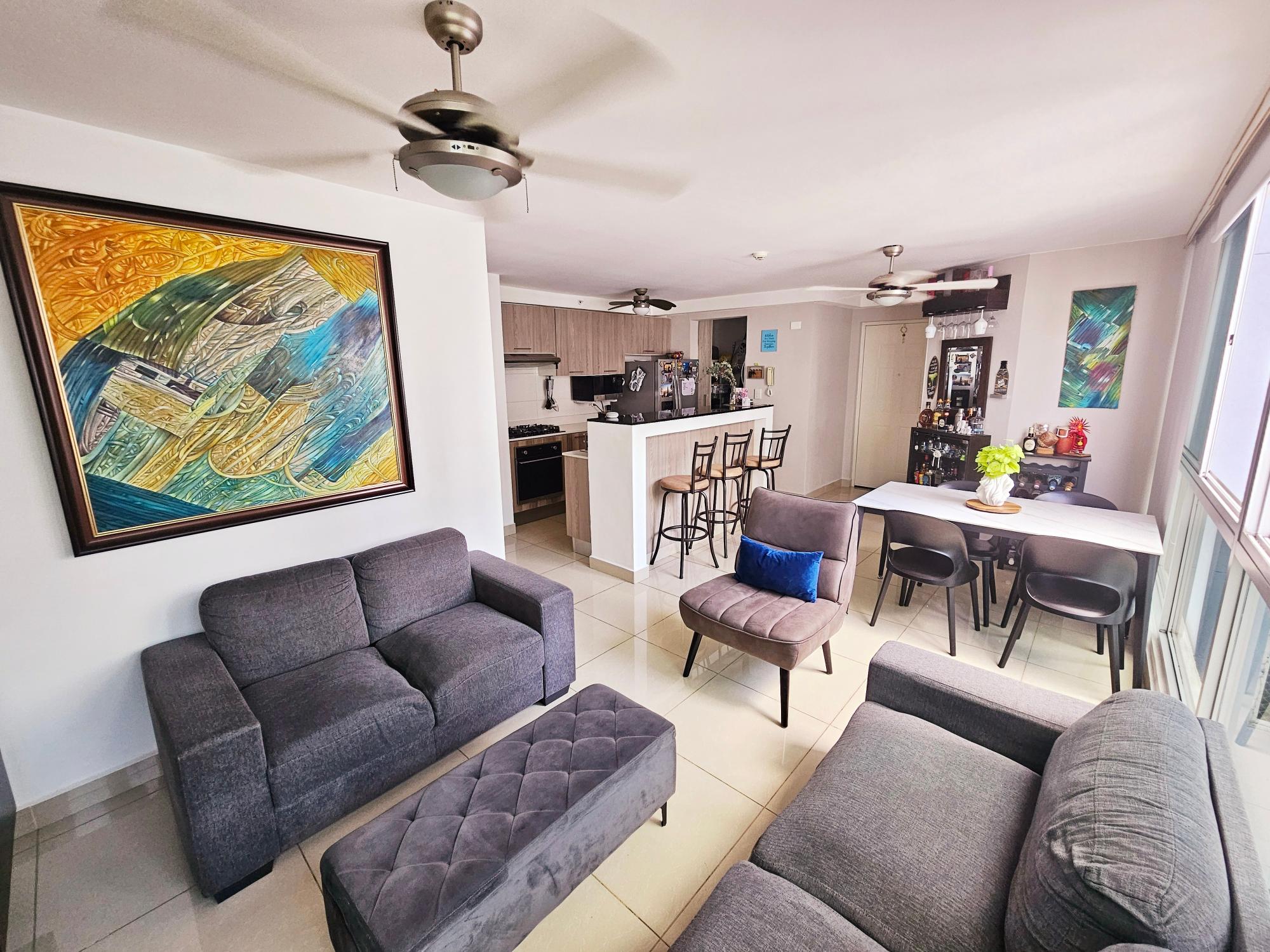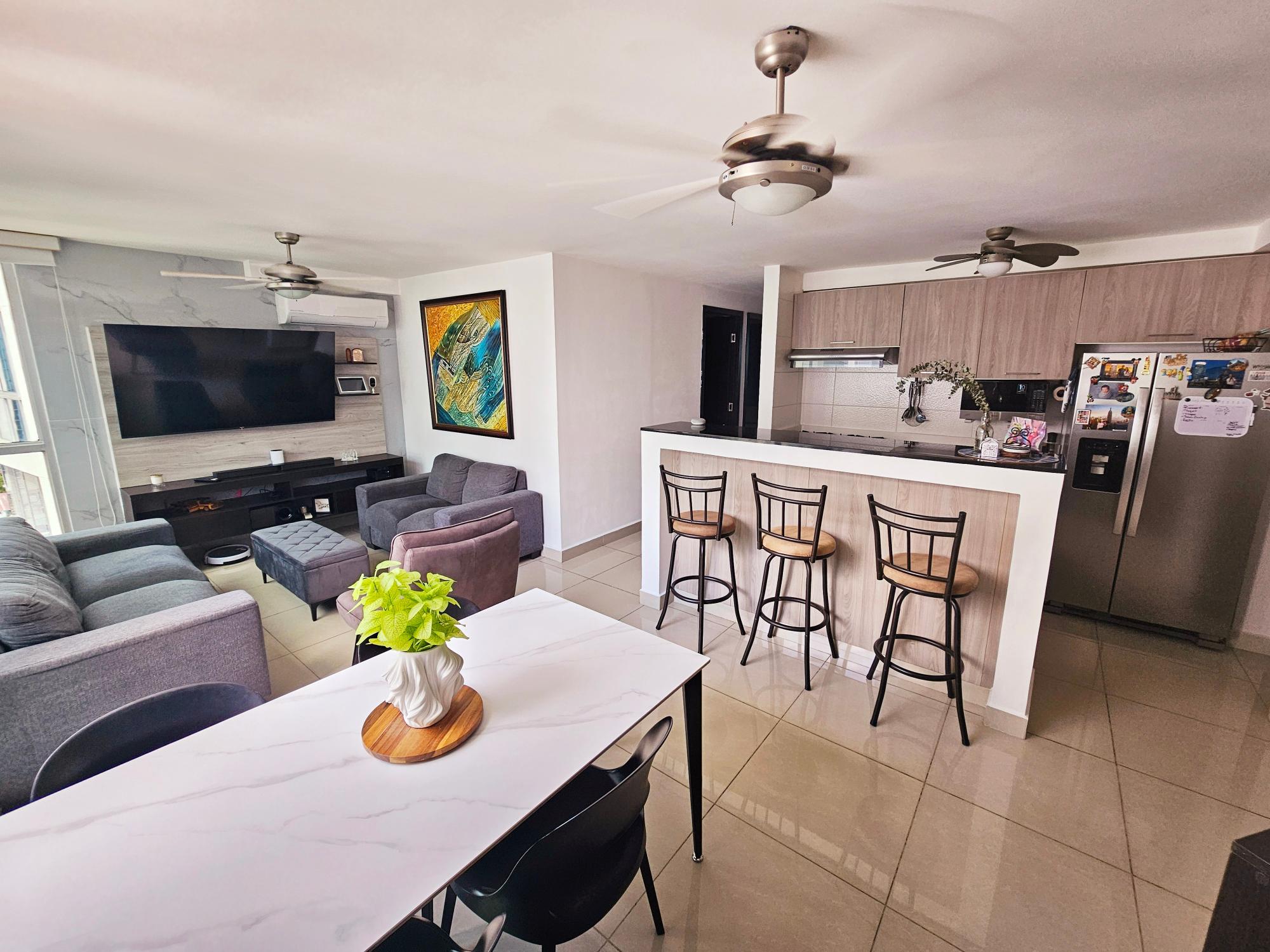 Este acogedor apartamento de 82 m² ofrece una distribución amplia, moderna y funcional con 3 recámaras, cuenta con 2 baños, 2 estacionamientos y una cocina remodelada con un estilo contemporáneo que realza todo el diseño interior. Sus ambientes luminosos y su distribución bien aprovechada brindan una sensación superior de amplitud y confort. Incluye abanicos, lámparas, rollers blackout y muebles integrados como mueble de TV, mueble tipo bar y muebles de baño. Su ubicación es altamente estratégica: Las estaciones estan a una distancia de 1.9 km de la estación del metro Fernández de Córdoba y a 1.6 km de la estación 12 de Octubre A 900 m – 1.2 km de supermercados como El Super Rey y Super 99 A 2.3 km del acceso principal del Parque Omar (11 minutos aprox.) A 500 metros de un acceso directo al Parque Omar, perfecto para ir caminando. A 1.4 km de centros hospitalarios Esta a una distancia de 6.3 km de Costa del Este (26 minutos aprox.) El edificio ofrece excelentes amenidades: piscina, gimnasio, salón de fiestas y área de barbacoa, además de ser un edificio pet friendly, ideal para quienes disfrutan compartir su hogar con sus mascotas.Características