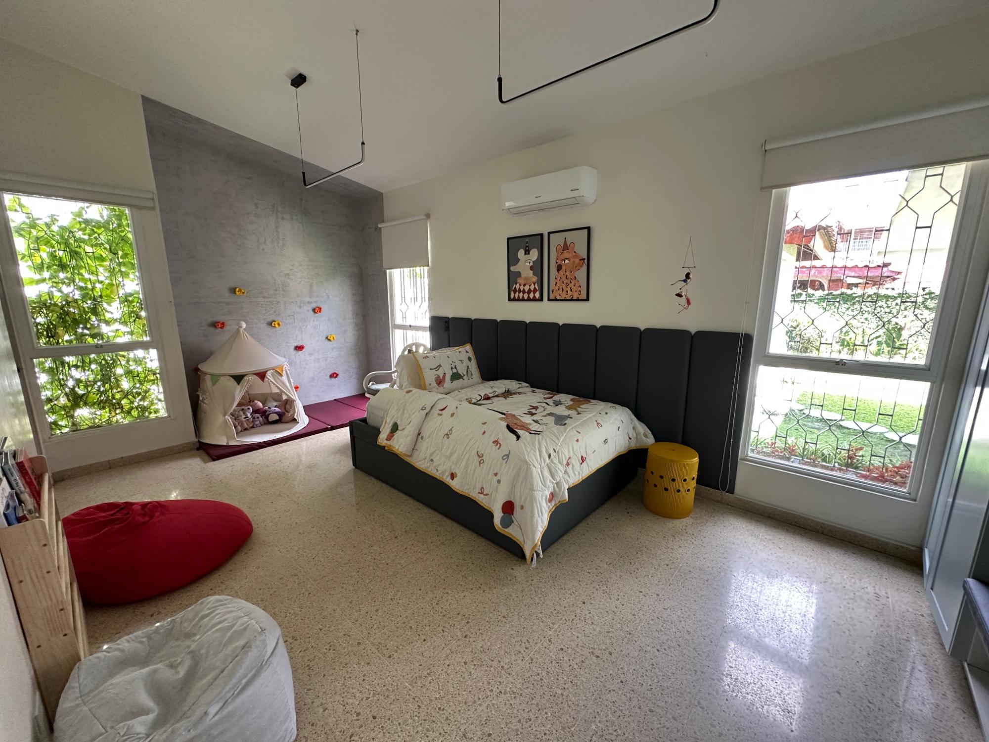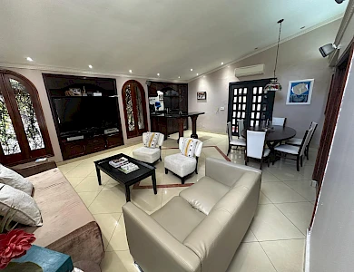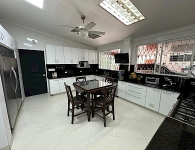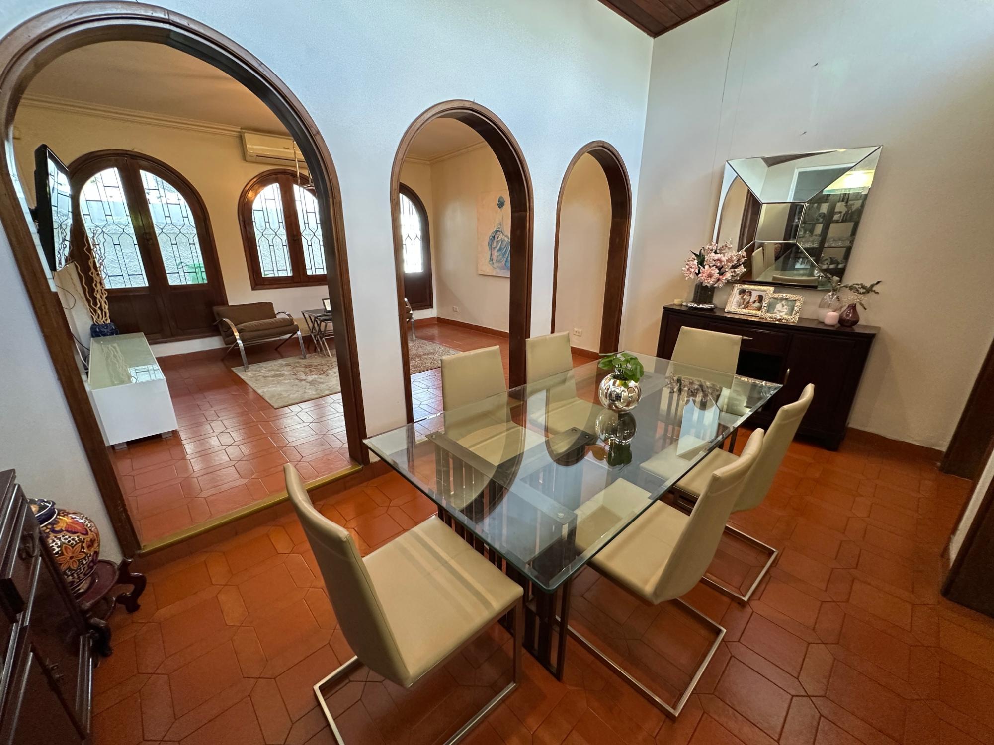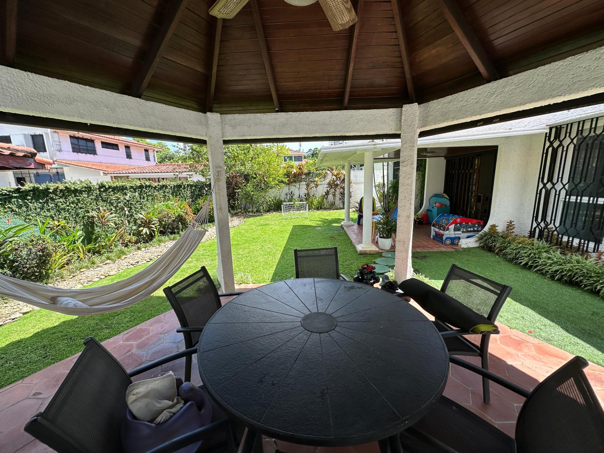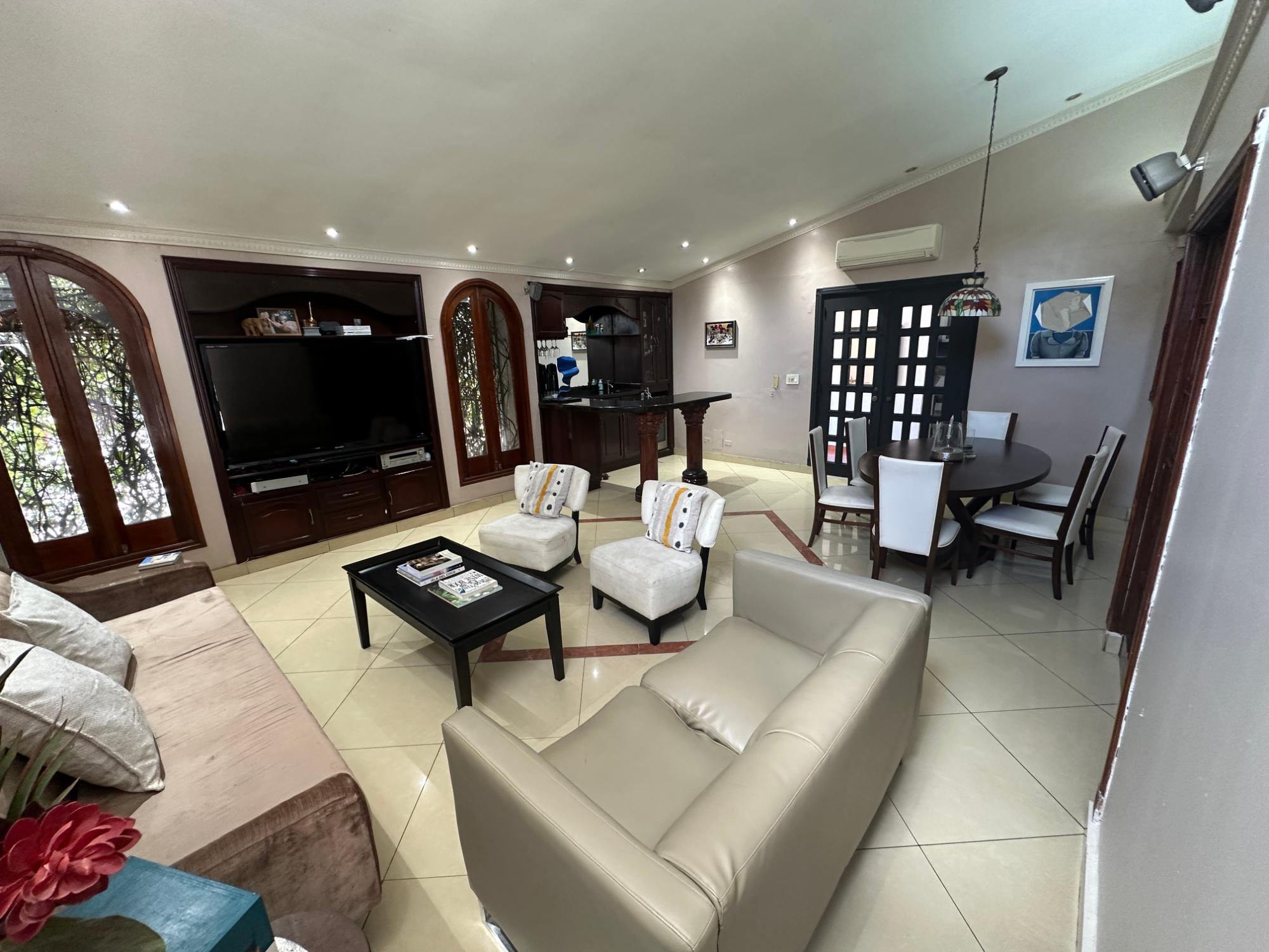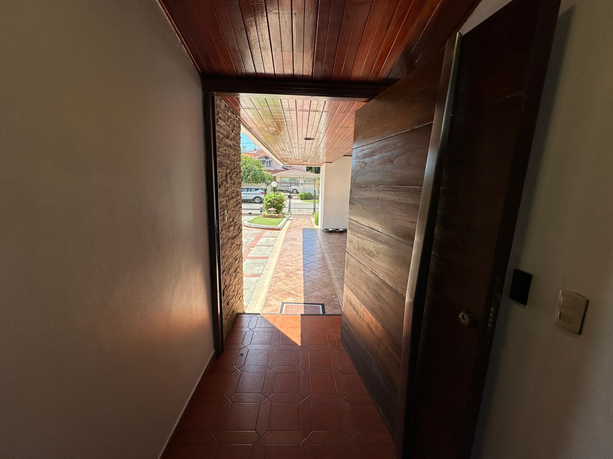 Una casa que combina amplitud, ventilación, iluminación y verdor de un bello jardín a la vez. Este hogar se encuentra a pocos pasos del Parque Benito Juárez. La barriada mantiene su calor familiar y amplias calles, muy comodas para el transito fluido. Su cercanía a la Avenida Simón Bolivar te interconecta con centros comerciales, tiendas de conveniencia, abarroterías, supermercados, entre otras amenidades que solamente te puede ofrecer El Carmen. Las amplias habitacones cuenta con colores pasteles y minimalistas, ideales para la modernidad de la casa y a la vez un toque "vintage" en sus acabados de sala y comedor, ambos en armonía que ofrecen paz y tranquilidad de hogar. Luego pasamos al área de family, bar, y dos espacios de sala que ofrecen espacio suficiente para las reuniones familiares que pueden compartir niños y adultos. Sorpresa: el garaje cuenta con un gato hidráulico para revisión de su carro. Además de tener dos (02) depósitos, uno (01) en el ático para mayor compartimento de espacio y sistema de cámaras. Excelente oportunidad para crecer a tu familia y darles armonía natural. Contáctanos. Somos el puente hacia tu siguiente etapa de vida.Características