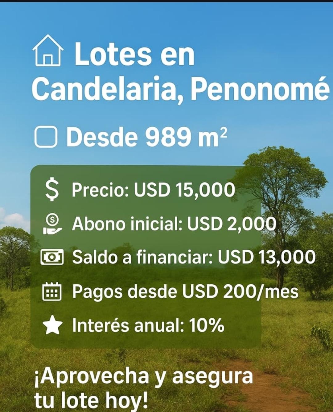 🌟 ¡OPORTUNIDAD ÚNICA! Lote en La Candelaria, Penonomé 🏡 Sitio Atractivo y Natural 💎 Tesoro Inmobiliario Imperdible ¡Atención soñadores e inversionistas! Hemos encontrado su paraíso terrenal por solo USD 15,000.00. Este lote de 989.625 m2 en La Candelaria es más que un terreno: ¡es el lienzo donde pintará su futuro! 🌈 Características Mágicas 🌡️ Clima de Ensueño: Noches frescas (23-25°C) Días radiantes (27°C) 🍃 Naturaleza Pura: Vegetación exuberante Terreno limpio y preparado Topografía perfecta para construir 💰 Ventajas Irresistibles ✅ Titulado y libre de hipotecas 📡 Libertad total para construir a su gusto, sin límites de tiempo 🚫 Sin cuotas de mantenimiento 🤝 Financiamiento directo con 10% anual Use, siembre, cerque y construya mientras paga Terreno limpio, medido y delimitado Topografía plana ideal para construcción 📍 Ubicación Privilegiada Cerca de: Hospital Materno Infantil de Tambo Fonda Bambú Escuelas locales Parada de buses Abarrotería Miraflores 🏆 Garantía Profesional Respaldado por agente inmobiliaria MLSACOBIR con 17 años de experiencia comprobable. 📞 ¡Actúe Ahora! Contacto exclusivo: WhatsApp Email ¡Su sueño te está esperando! 🌟🏡Características