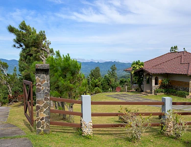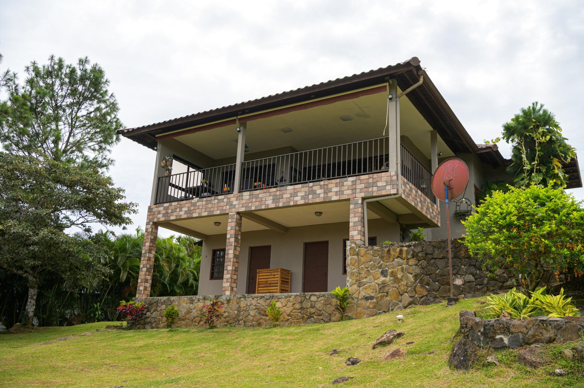 Propiedad en Altos de Campana – Chame, Panamá Oeste Características Generales Ubicación: Altos de Campana, Chame, Panamá Oeste Tipo de construcción: Concreto, estilo de montaña Camino de acceso: Pavimentado en concreto Estacionamientos: Abiertos Amoblado y decorado: Sí, incluye línea blanca Áreas Exteriores Jardín Gazebo Terraza Área de BBQ y bar Jacuzzi Cámaras de vigilancia Depósito Paneles solares negociables Planta eléctrica parcial Tanque de reserva de agua Servicios Agua de pozo Electricidad Cable Se permiten animales Cercanía a áreas de recreación Distribución Interna Closets empotrados Cocina con desayunador Sala de estar Dormitorios cómodos Pisos de porcelanato Conjunto Habitacional 2 casas familiares grandes totalmente equipadas 3 cabañas para huéspedes o renta, completamente equipadas 1 cabaña pequeña ideal para cuidador del terreno Esta propiedad es ideal como residencia familiar, inversión para alquiler turístico o proyecto de retiro, ya que combina naturaleza, comodidad y facilidades modernas.Características