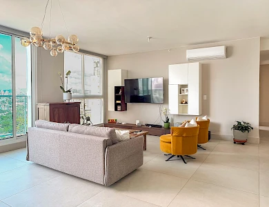 Hermoso apartamento en Coco del Mar – Alquiler o Venta Este moderno apartamento, casi nuevo y en excelente estado, ofrece una combinación perfecta de comodidad, ubicación y estilo. Puede alquilarse con o sin muebles, según la necesidad del cliente, o venderse si surge una oportunidad rápida. Cuenta con 3 recámaras, cada una con su baño, 1/2 baño de visita y cuarto y baño de servicio. Incluye 2 estacionamientos. Cuenta con una vista espectacular hacia la urbanización Loma Alegre y a Altos del Golf, lo que brinda una sensación de tranquilidad y amplitud. Su cocina abierta aporta luminosidad y un ambiente moderno ideal para disfrutar y compartir. Ubicado en Coco del Mar, sobre la Vía Cincuentenario, una de las zonas más céntricas y convenientes de la ciudad. A pocos minutos encontrarás colegios, supermercados, hospitales, centros comerciales, farmacias y una amplia oferta de restaurantes. Es una excelente opción para quienes buscan vivir o invertir en un área privilegiada, segura y altamente accesible.Características